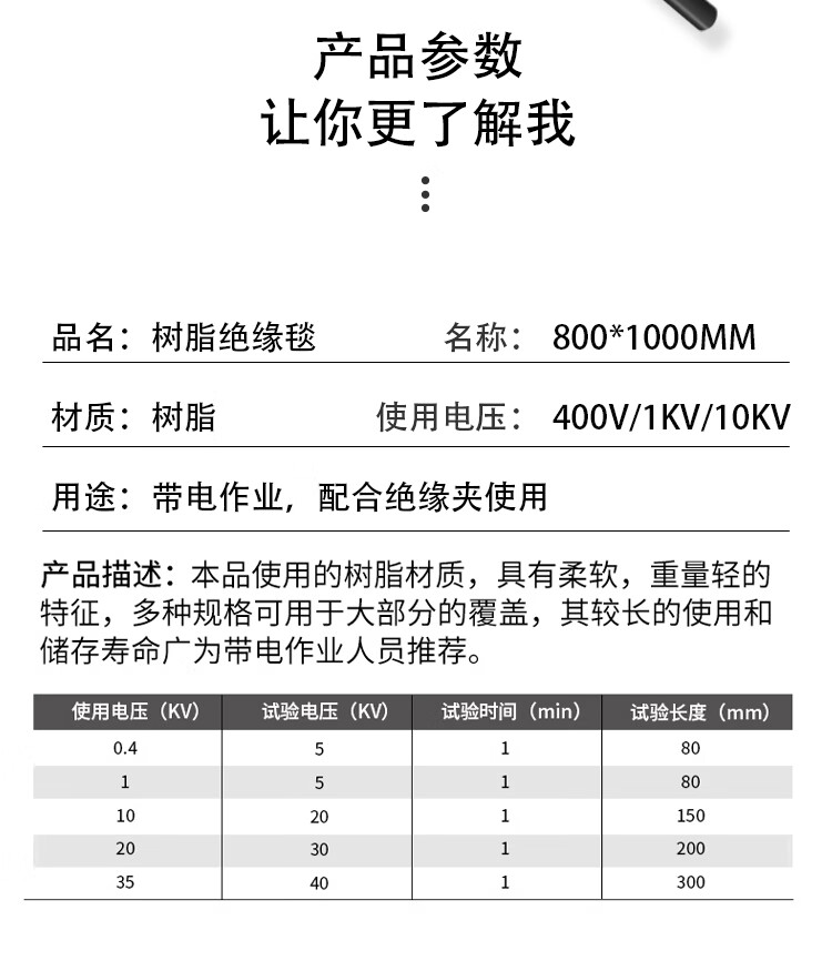 Power insulation blanket power distribution room 10kv high voltage insulation carpet floor mat anti-slip anti-electricity resin insulation blanket size 8001000/35kv single insulation blanket