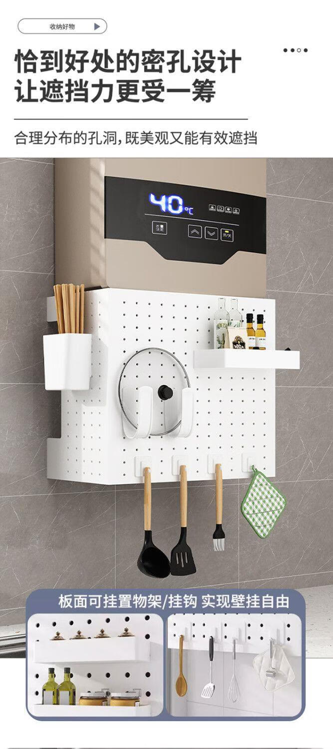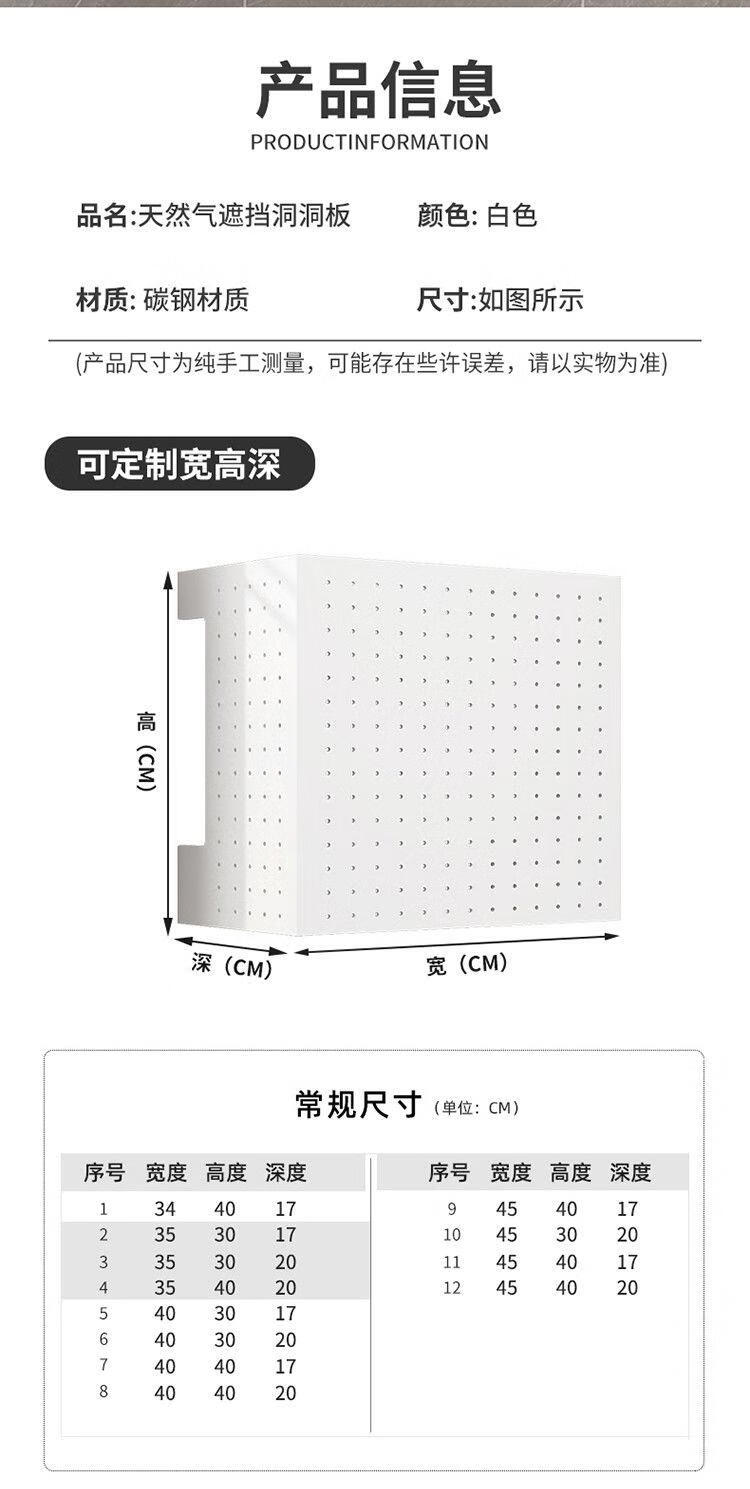 Harvest kitchen pipe shielding cover without drilling hole plate wall-mounted natural gas pipeline baffle gas water heater to hide the ugly hook style 35*30*15 round hole splicing style hole cover 4 hooks included