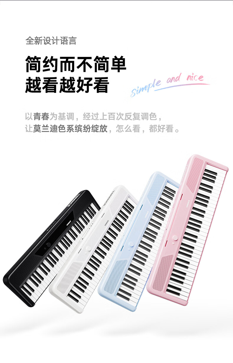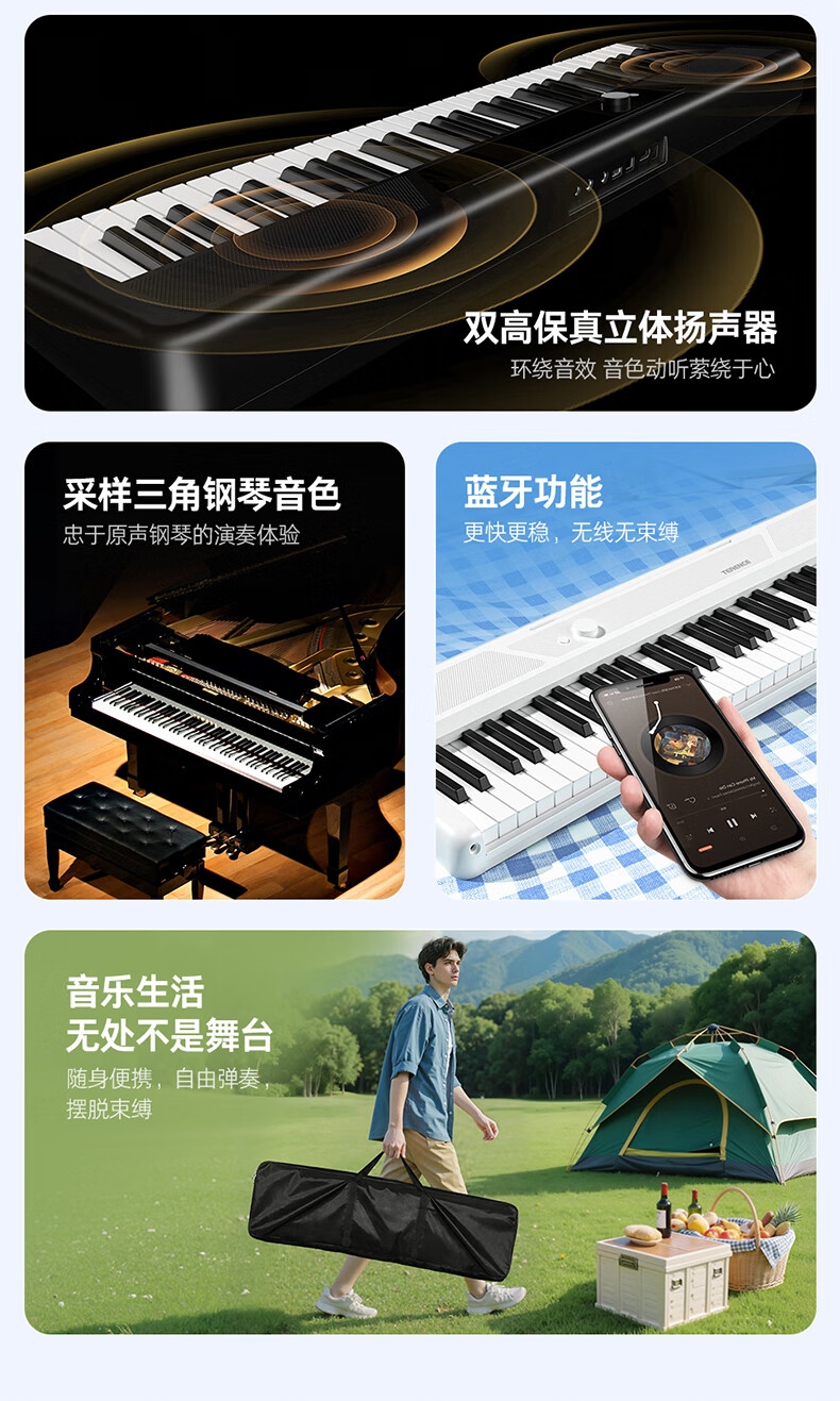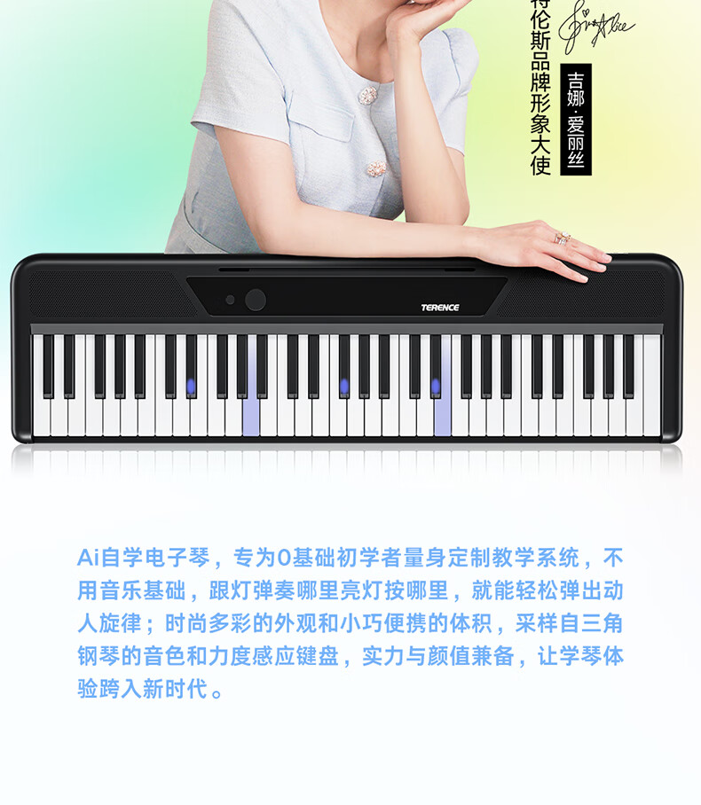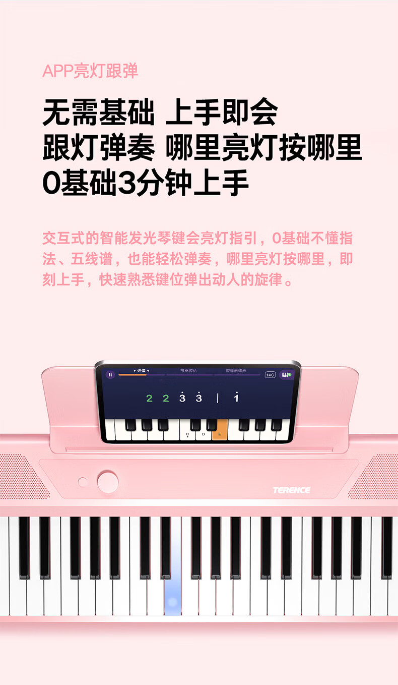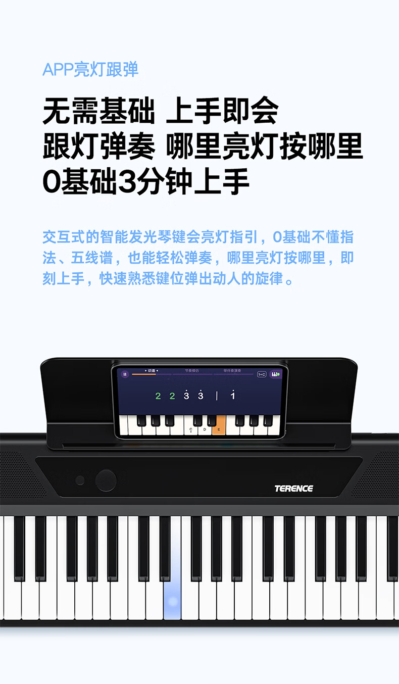 Terrence TS04 smart electronic keyboard lights up and plays the piano for beginners, adults and children, 61-key portable keyboard instrument, cool black + lifelong piano learning APP + piano bag + piano stand