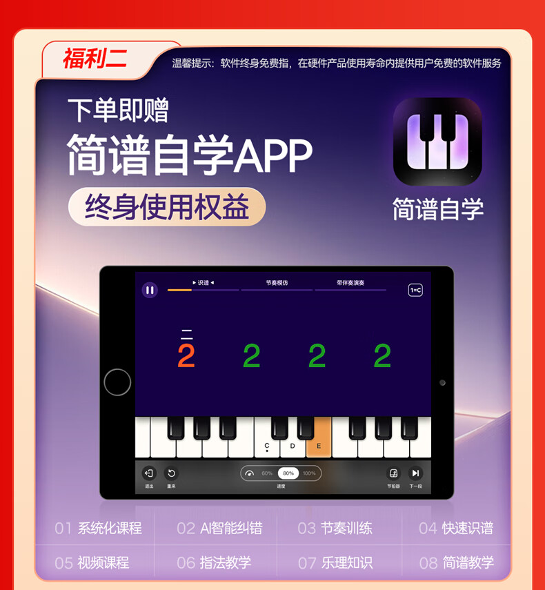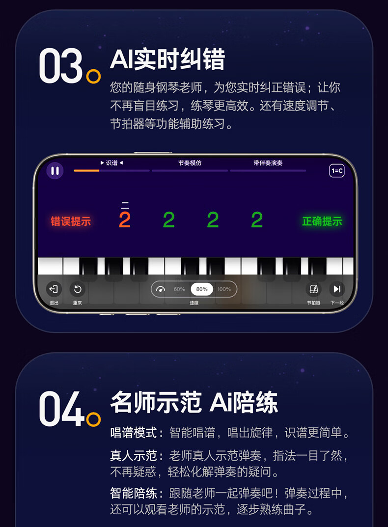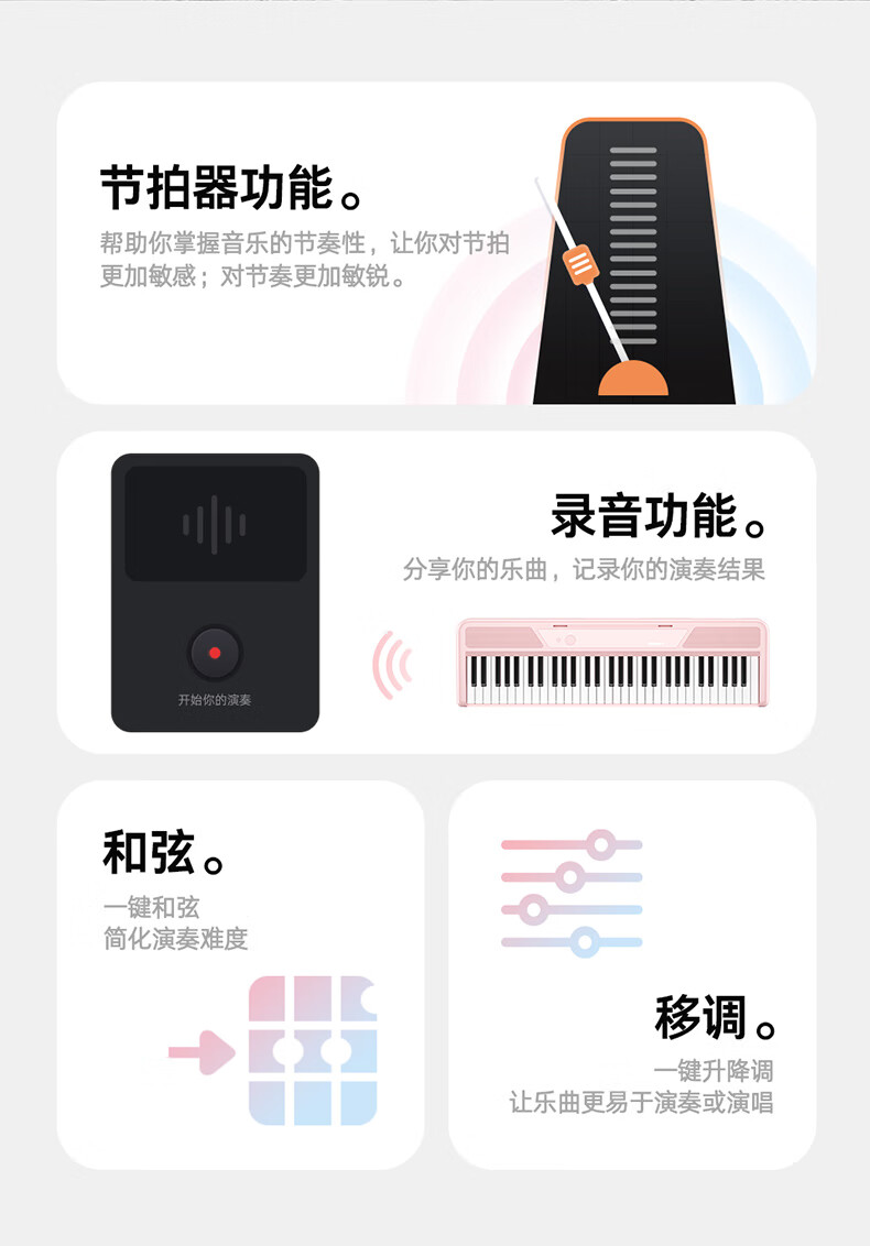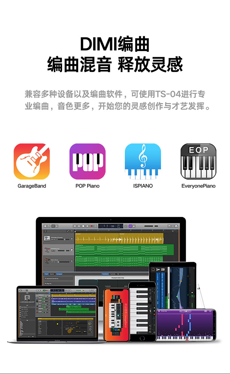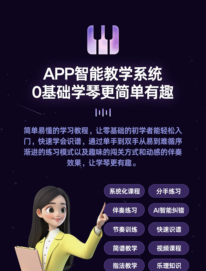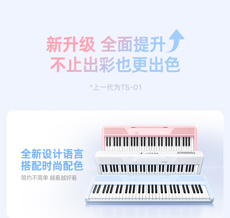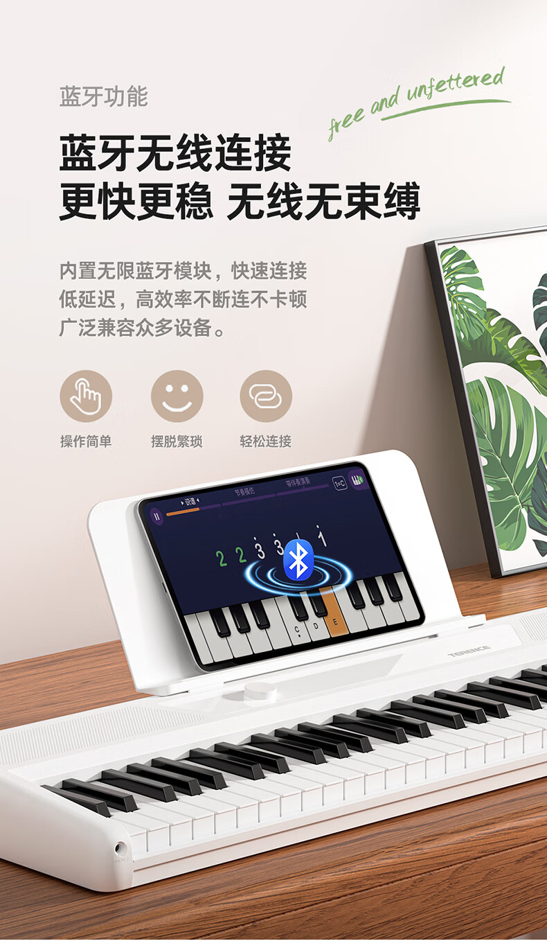 Terrence TS04 smart electronic keyboard lights up and plays the piano for beginners, adults and children, 61-key portable keyboard instrument, cool black + lifelong piano learning APP + piano bag + piano stand