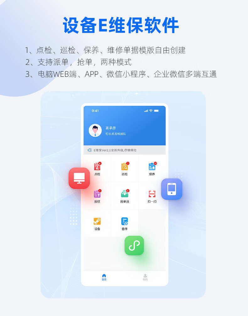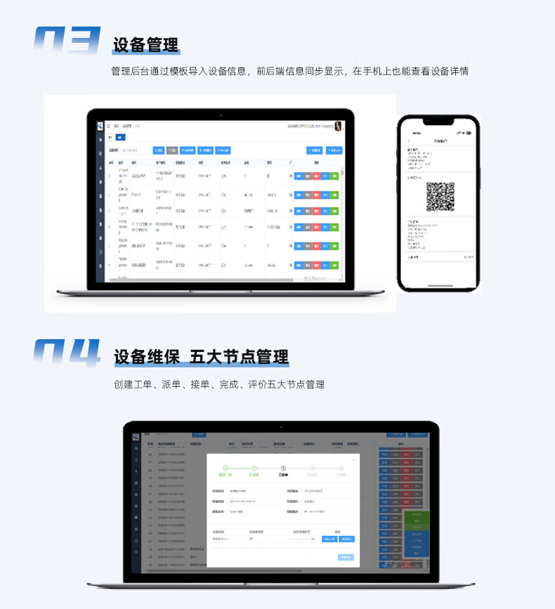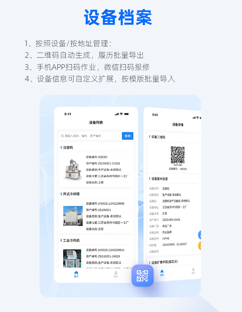 Equipment maintenance management system inspection QR code scan code repair small program spot inspection work order dispatch app software