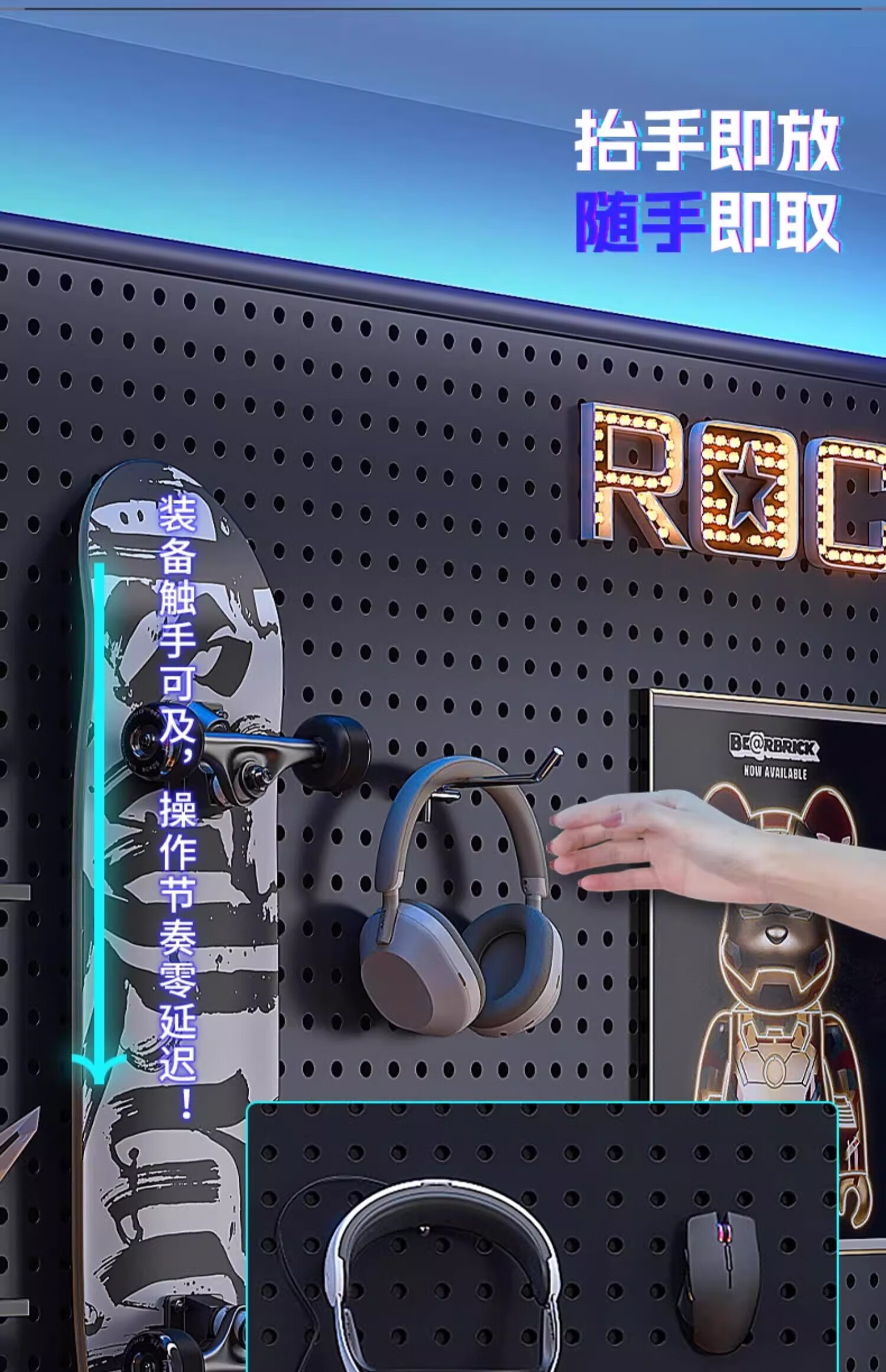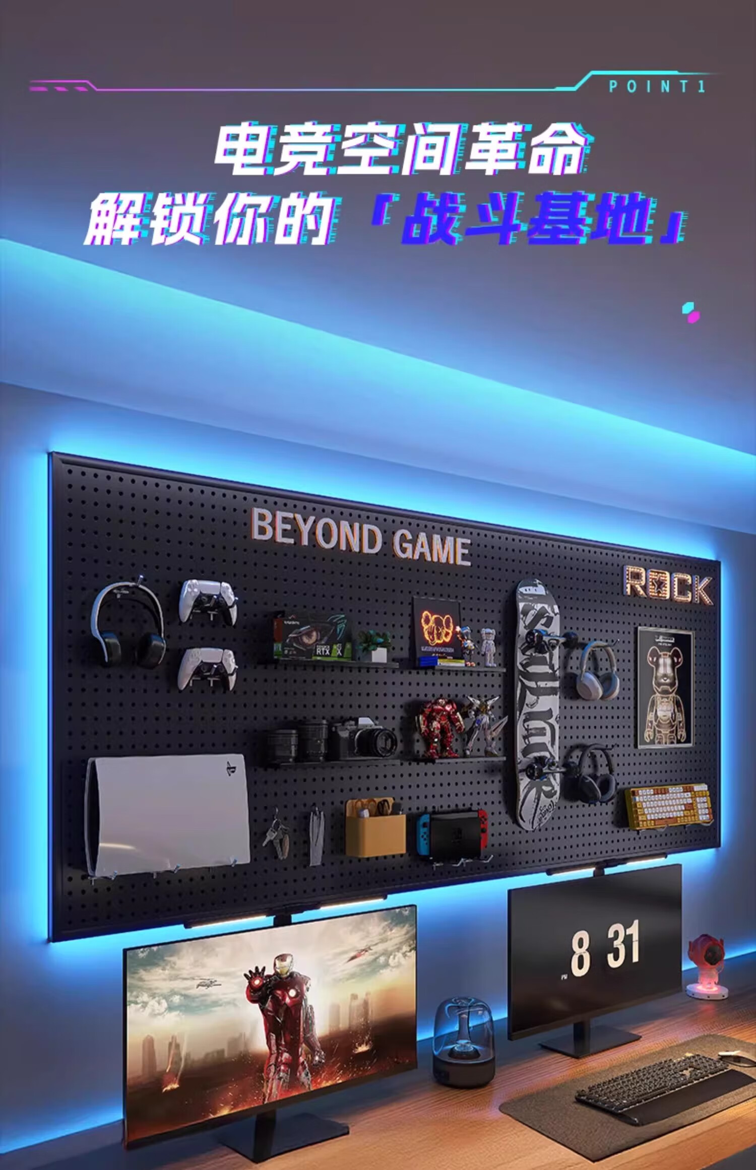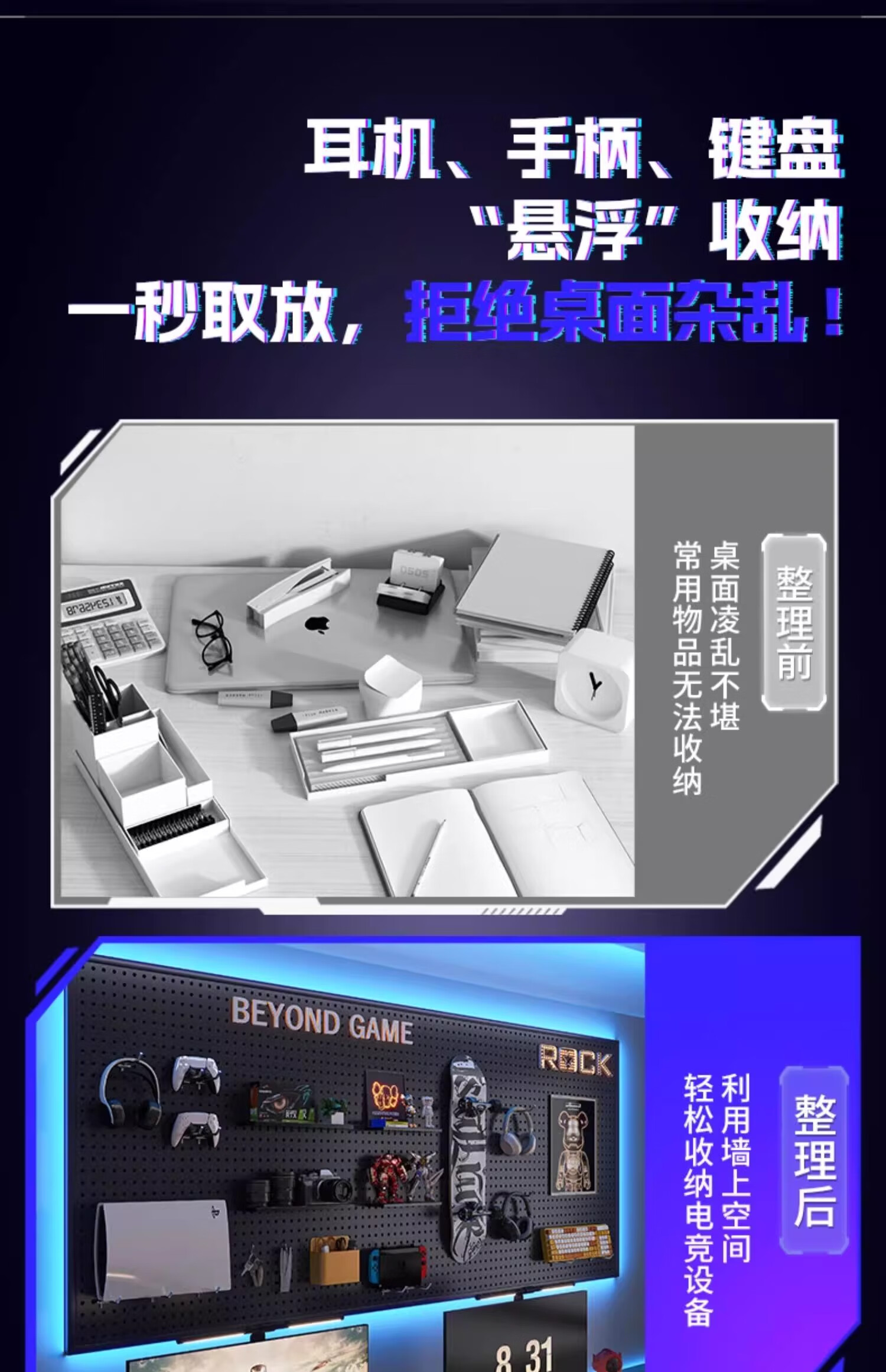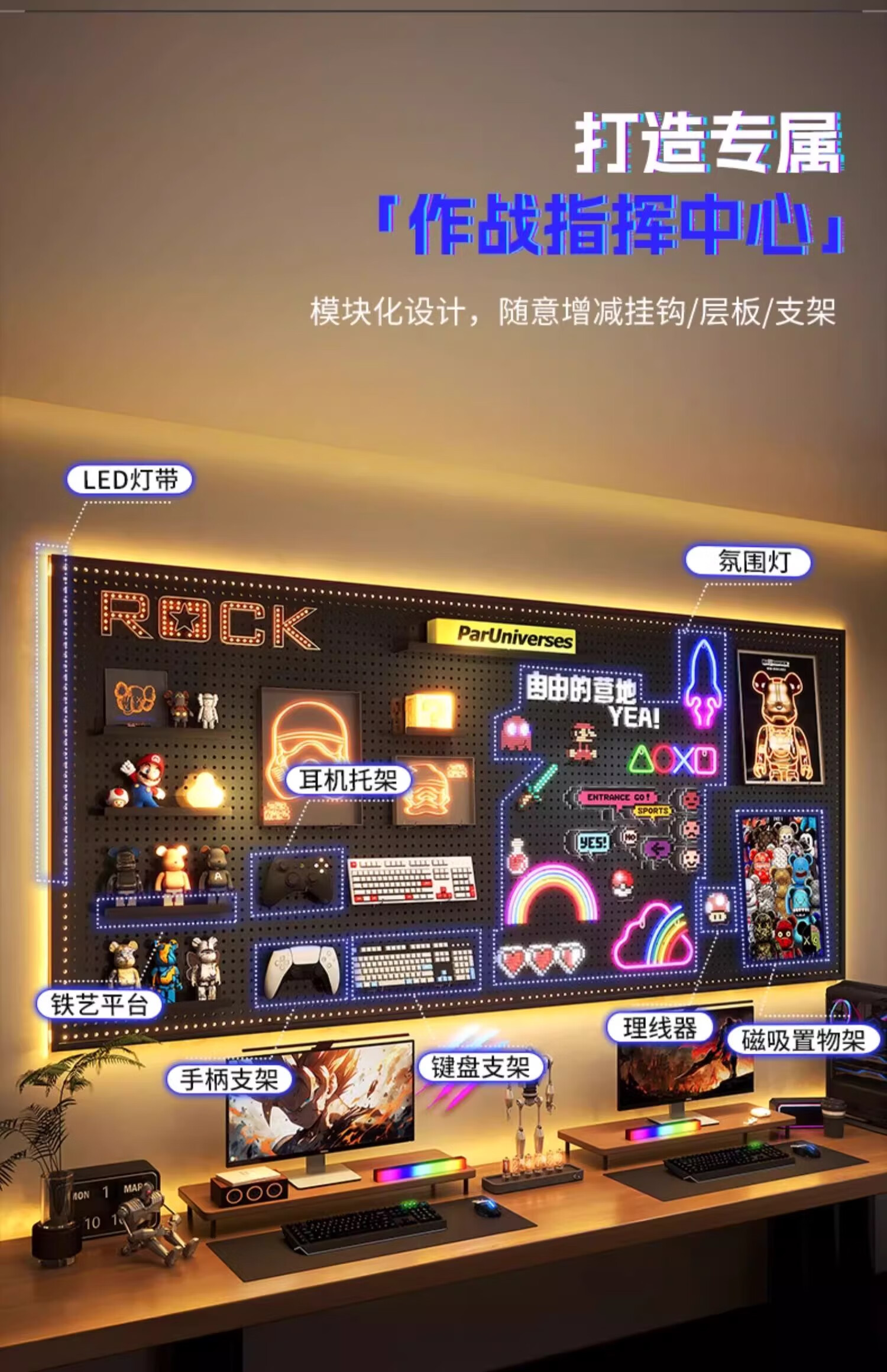 Ouma e-sports hole plate metal storage rack wall partition display rack study room decoration computer desktop storage hanging board with frame 120 80cm white free 20 hooks