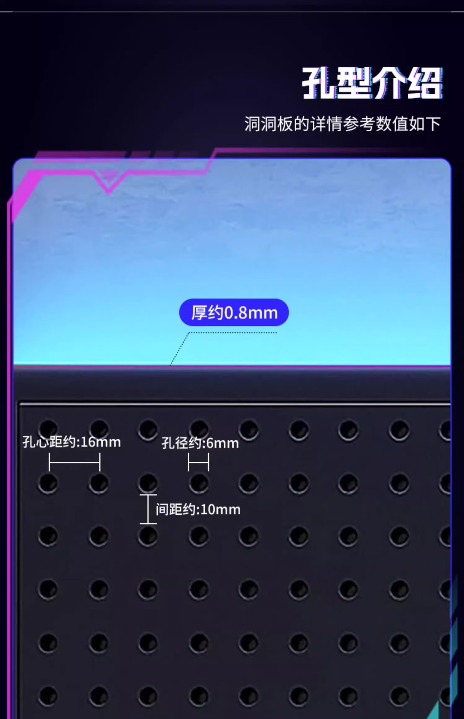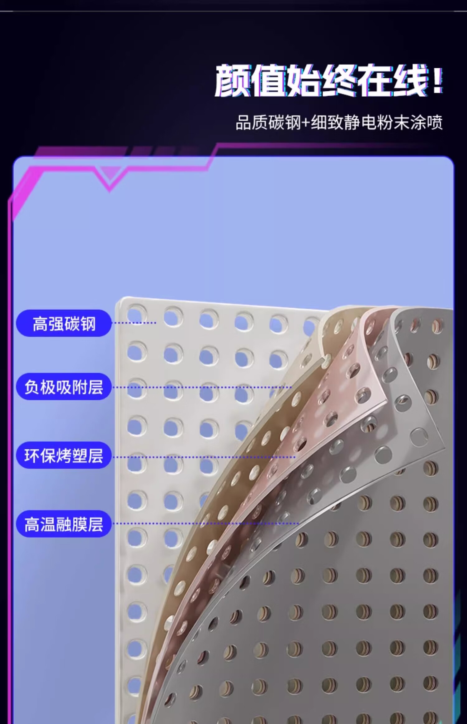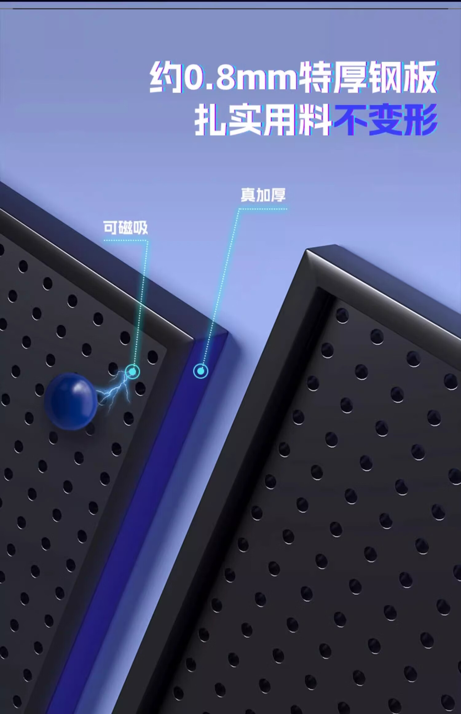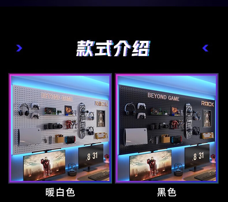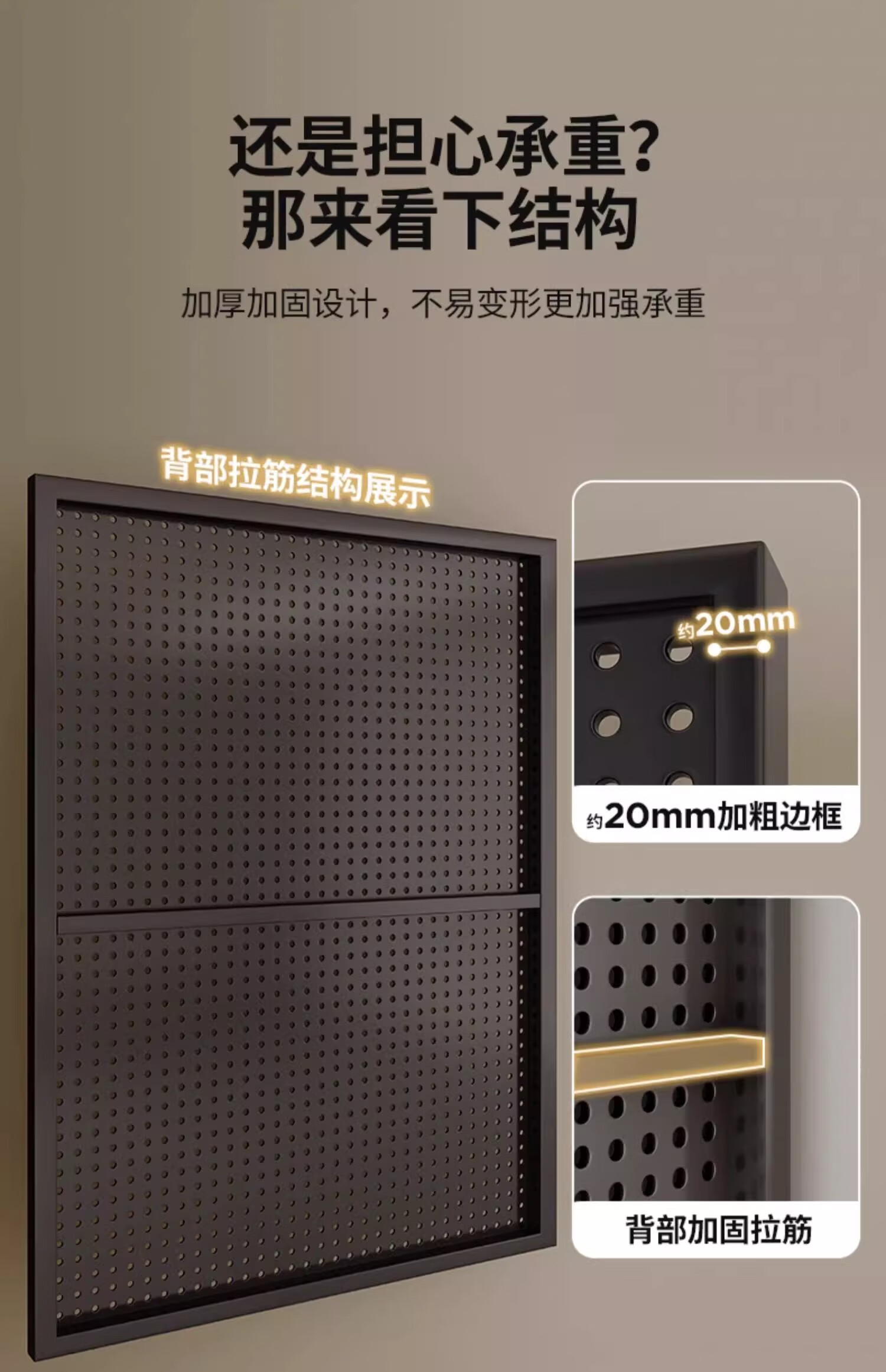 Ouma e-sports hole plate metal storage rack wall partition display rack study room decoration computer desktop storage hanging board with frame 120 80cm white free 20 hooks