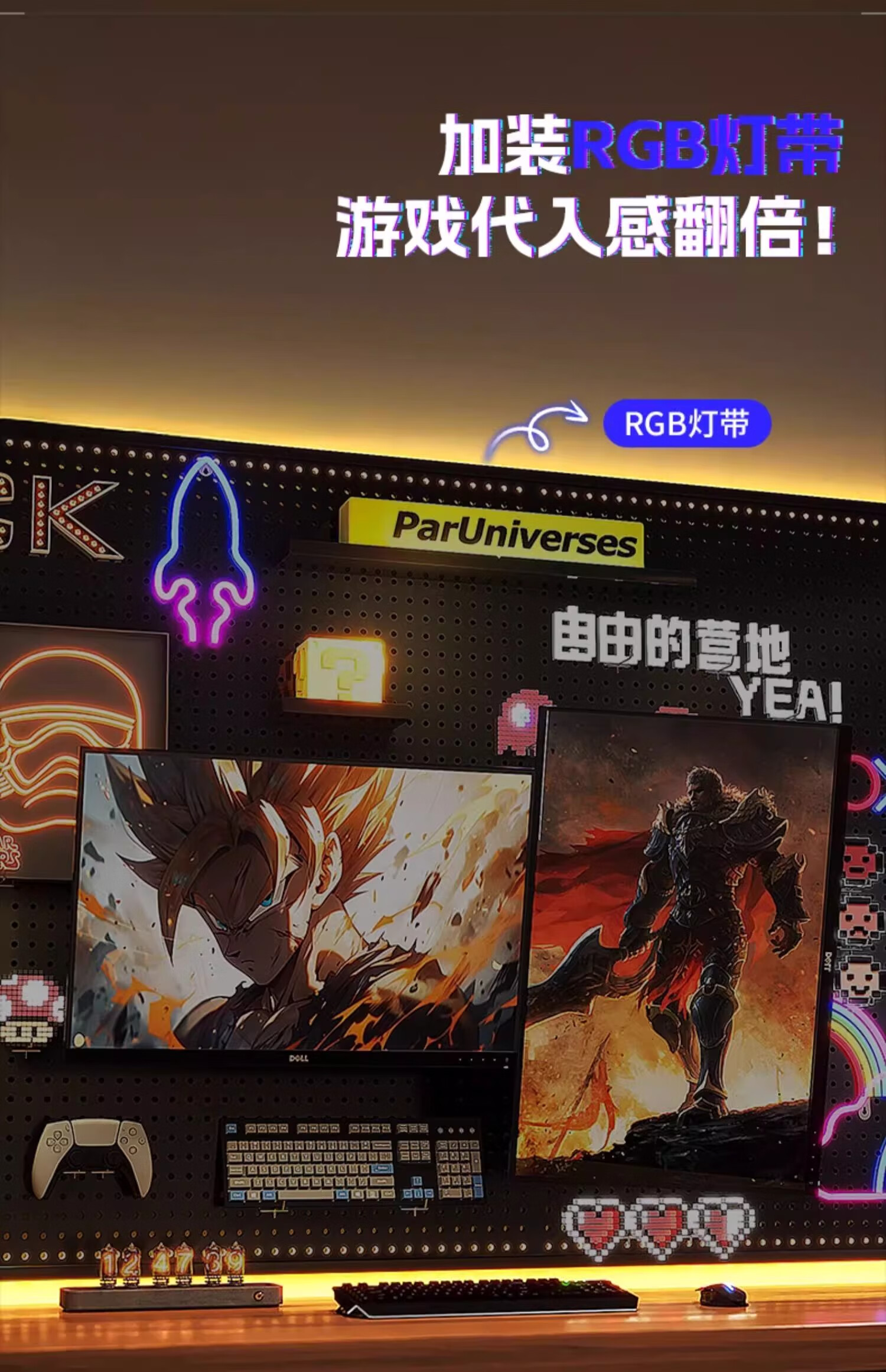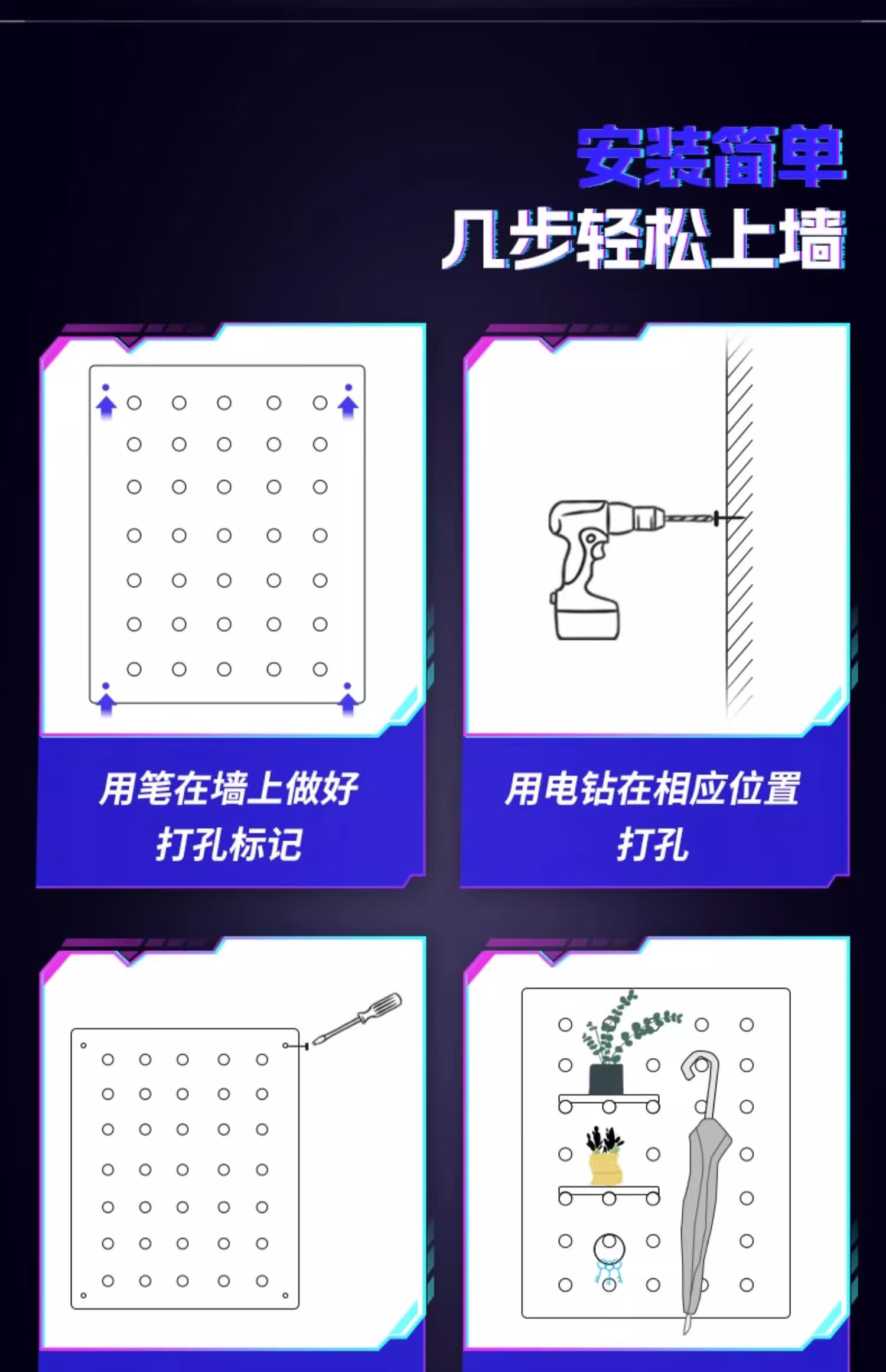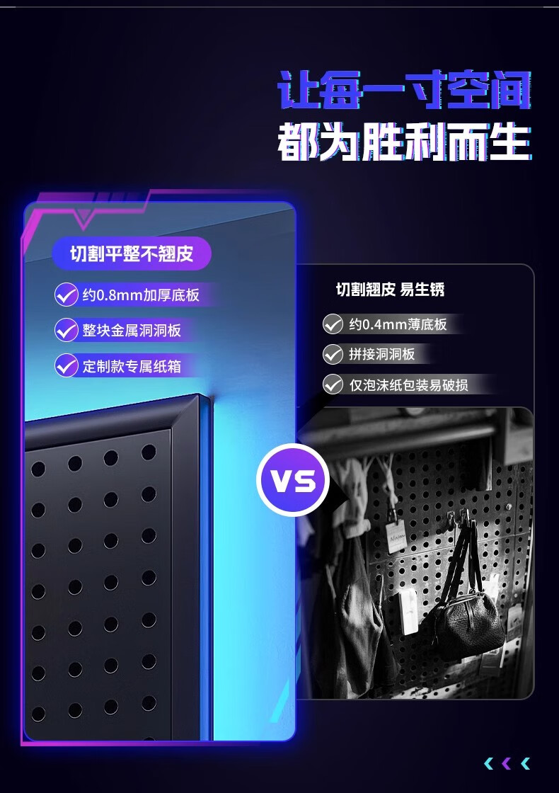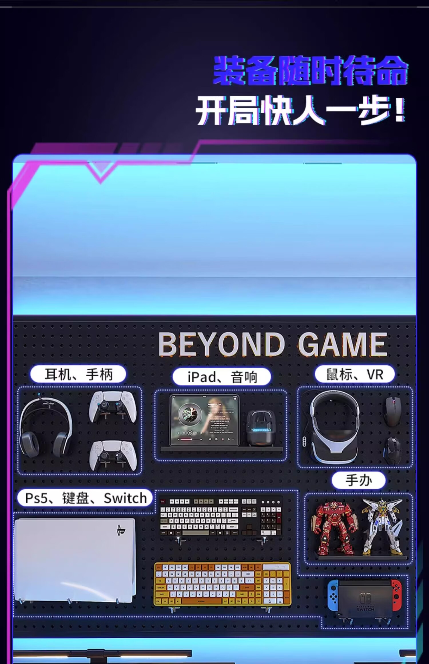 Ouma e-sports hole plate metal storage rack wall partition display rack study room decoration computer desktop storage hanging board with frame 120 80cm white free 20 hooks