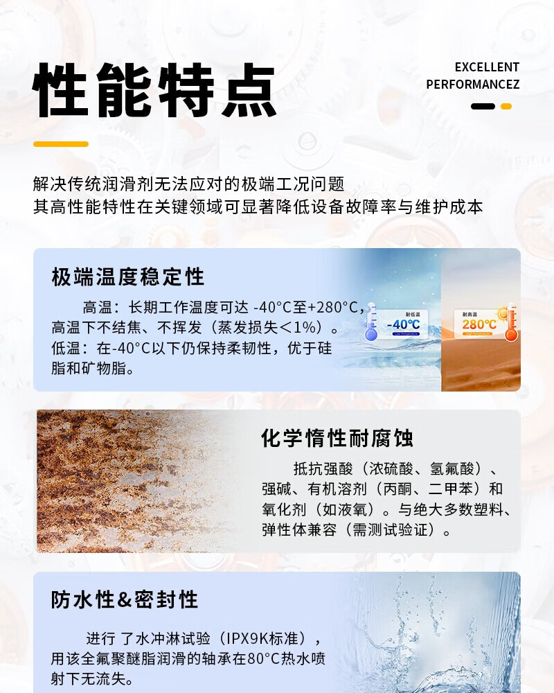 Andana perfluoropolyether high temperature resistant grease high speed bearing food grade fluorine grease PTFE low volatility no dropping point medical clean room semiconductor mold ejector grease perfluoropolyether grease GL386 200g