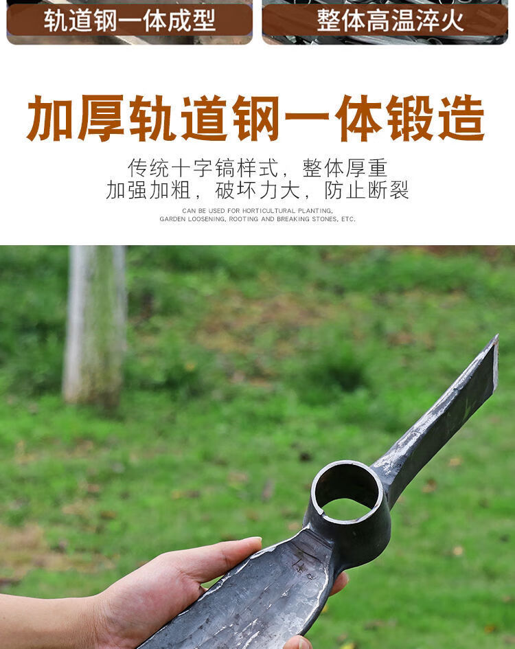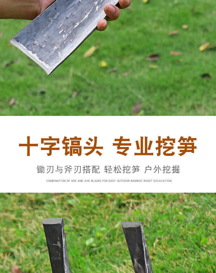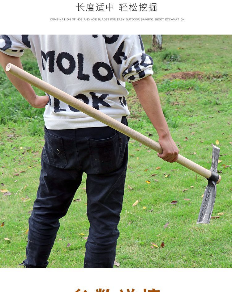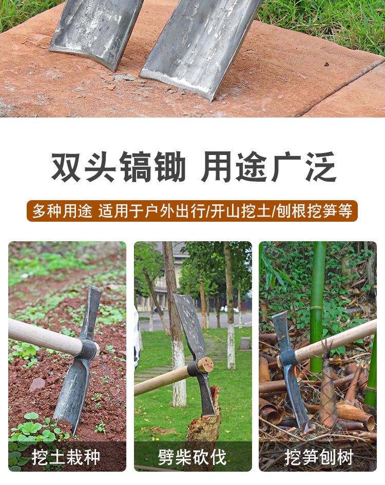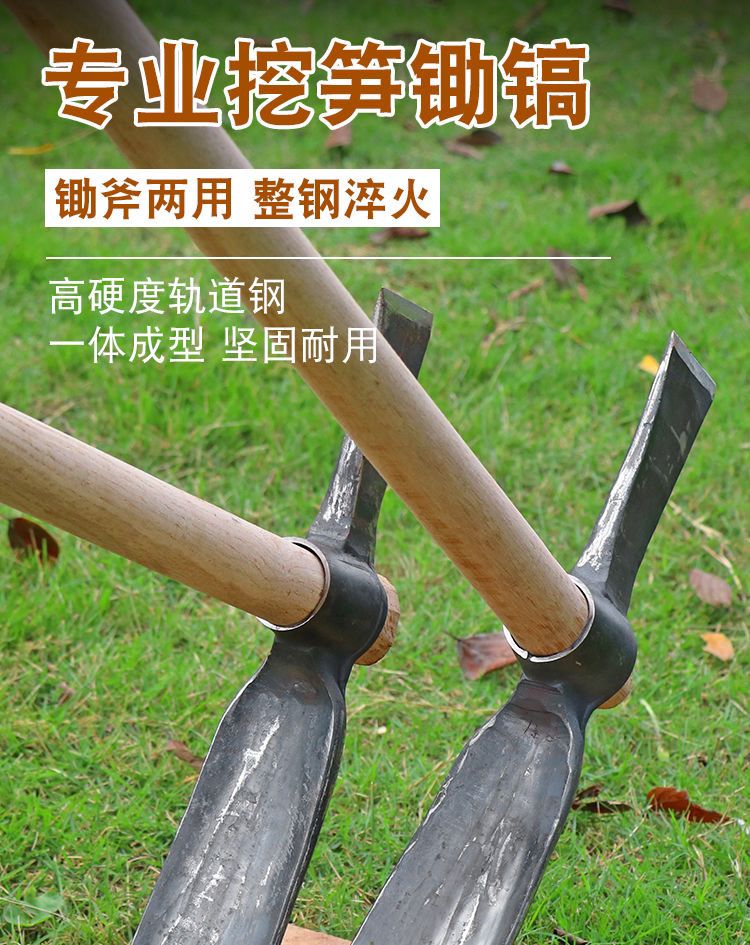 Mo Peng pickaxe integrated with manganese steel, professional bamboo shoot digging hoe, pickaxe, hoe, hand-forged foreign pickaxe, agricultural dual-purpose double-headed hoe A, one-piece forged without welding, large hoe ax + green wood long handle, self-produced, year-end impulse salary payment