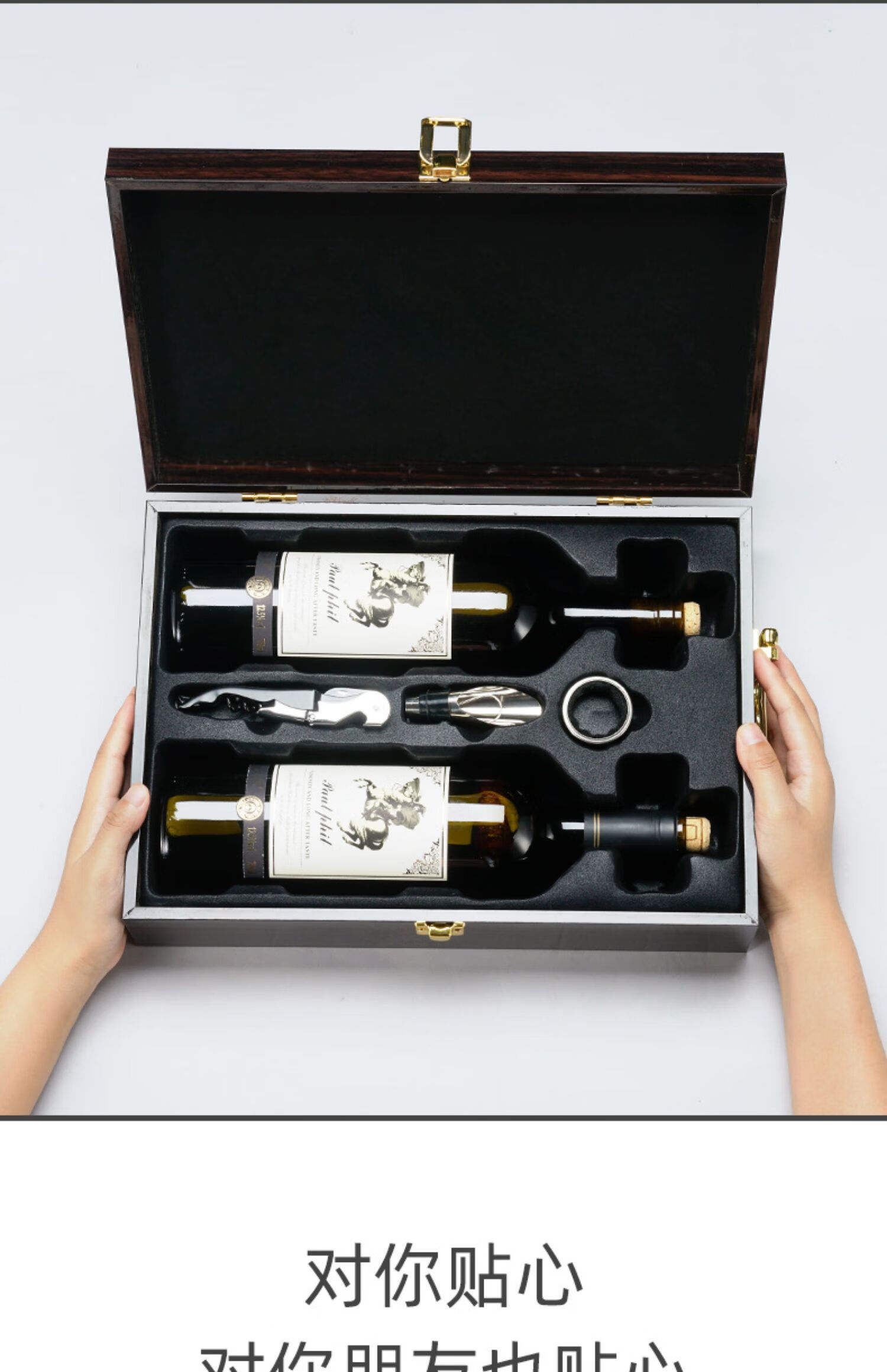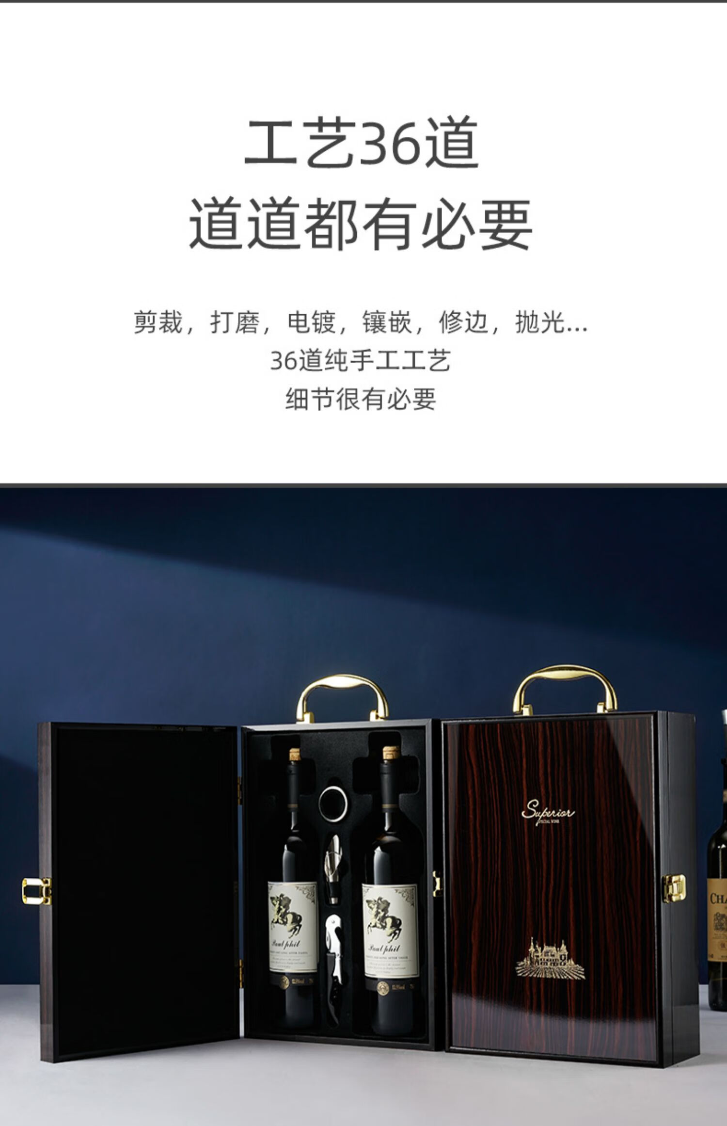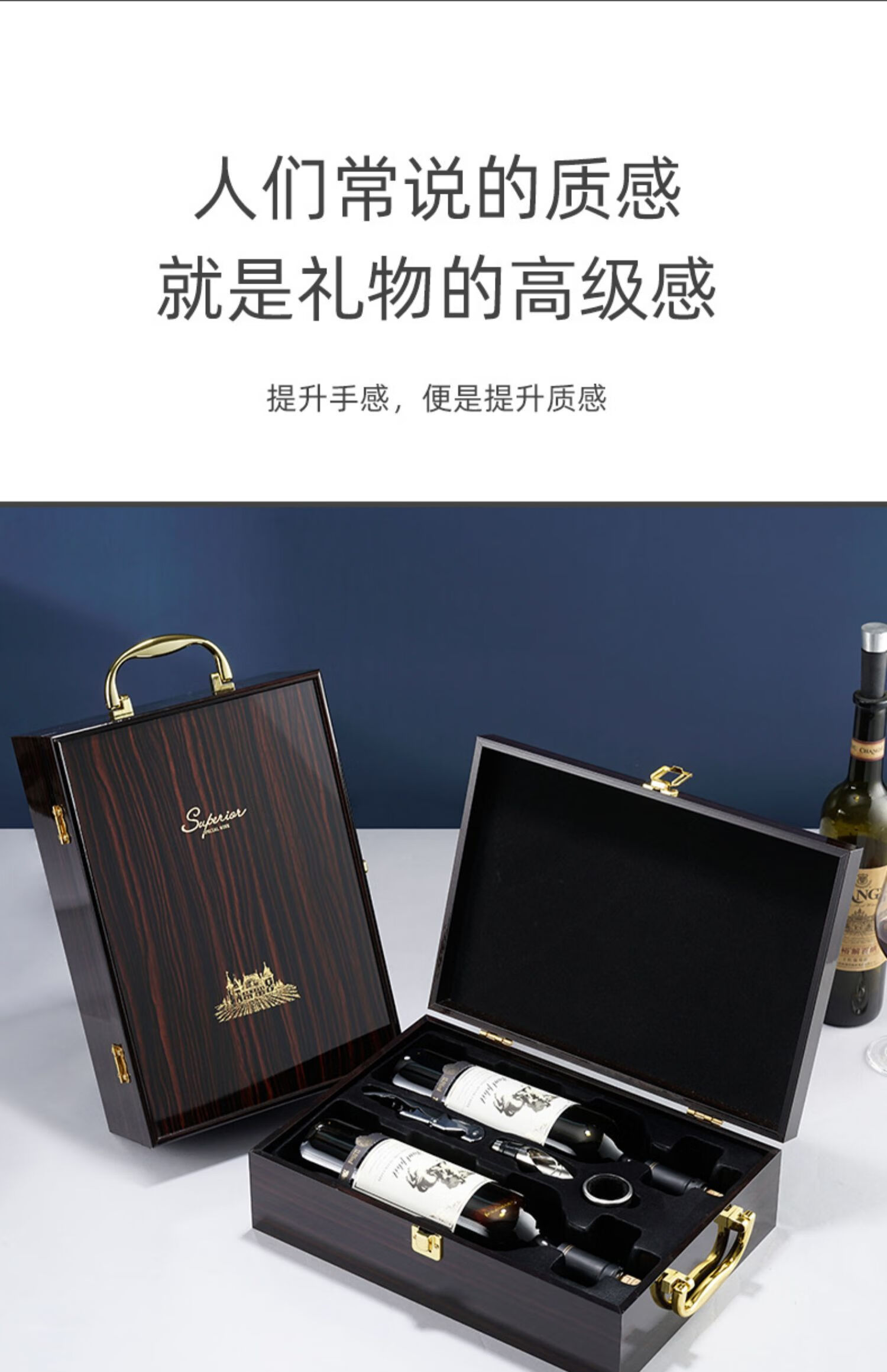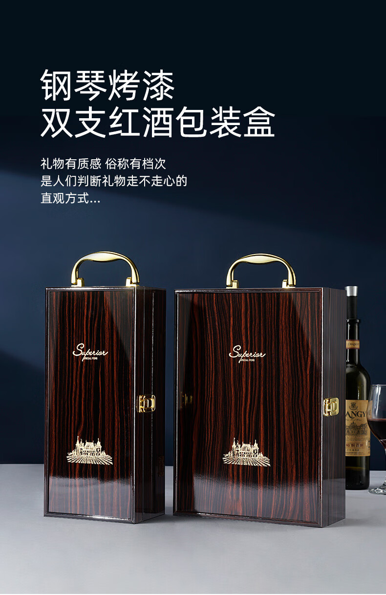 Chuanbao piano paint red wine gift box double packaging box high-end single and double bottles of red wine wooden box 2-pack wine box khaki double box with wine utensils