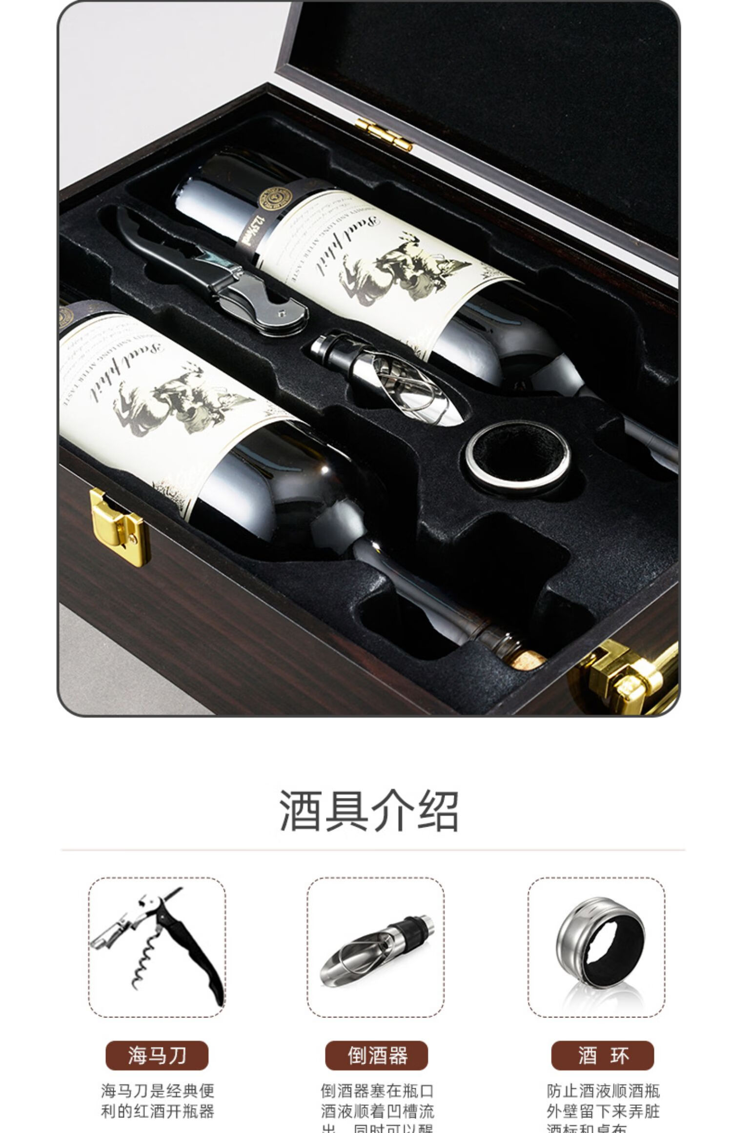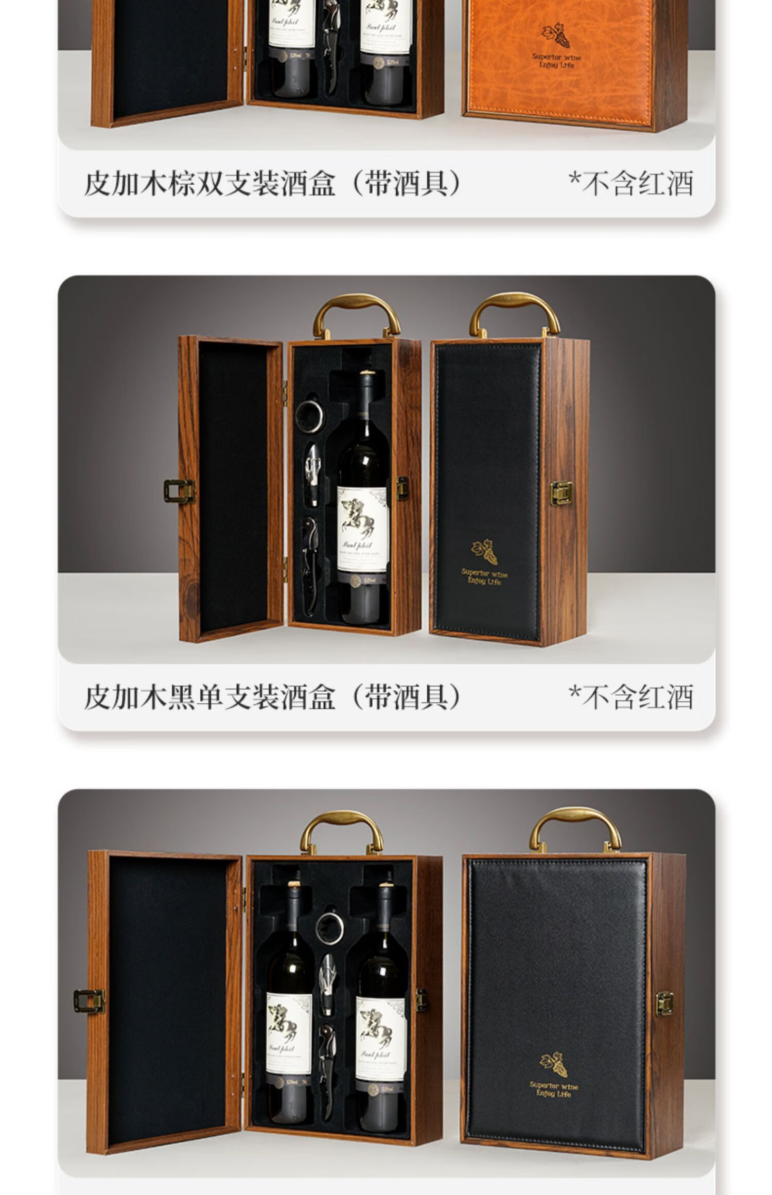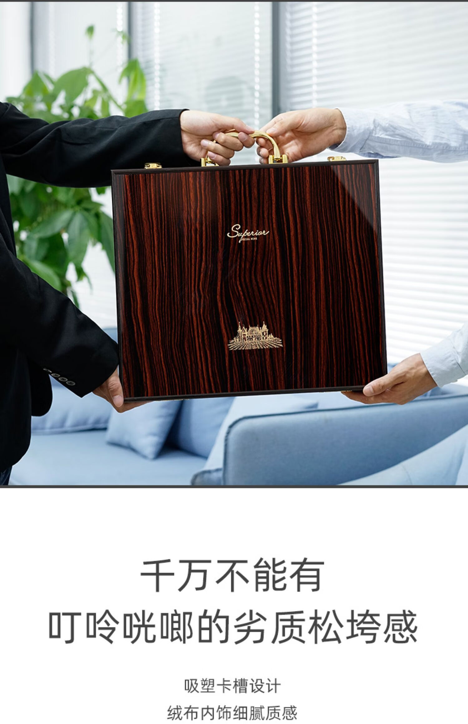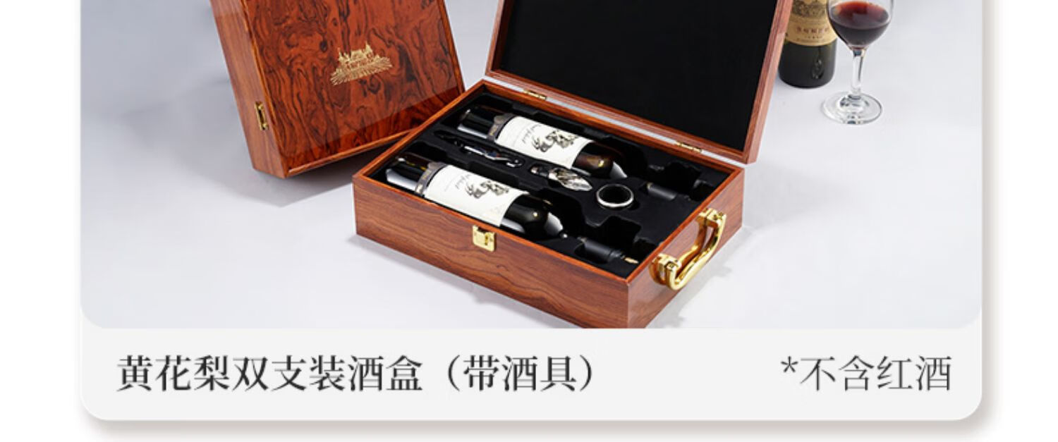 Chuanbao piano paint red wine gift box double packaging box high-end single and double bottles of red wine wooden box 2-pack wine box khaki double box with wine utensils