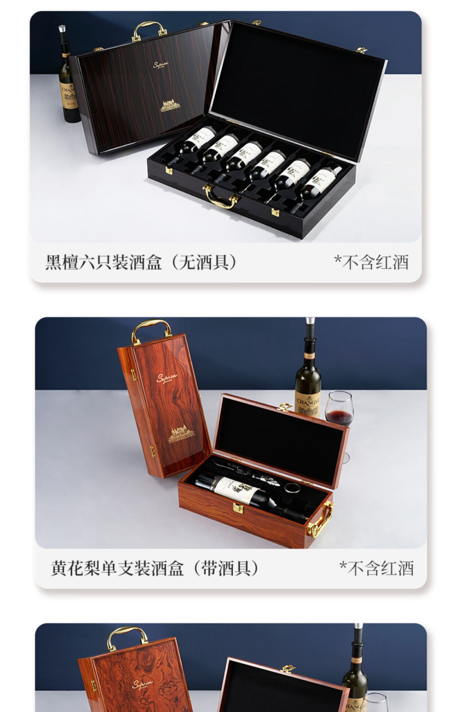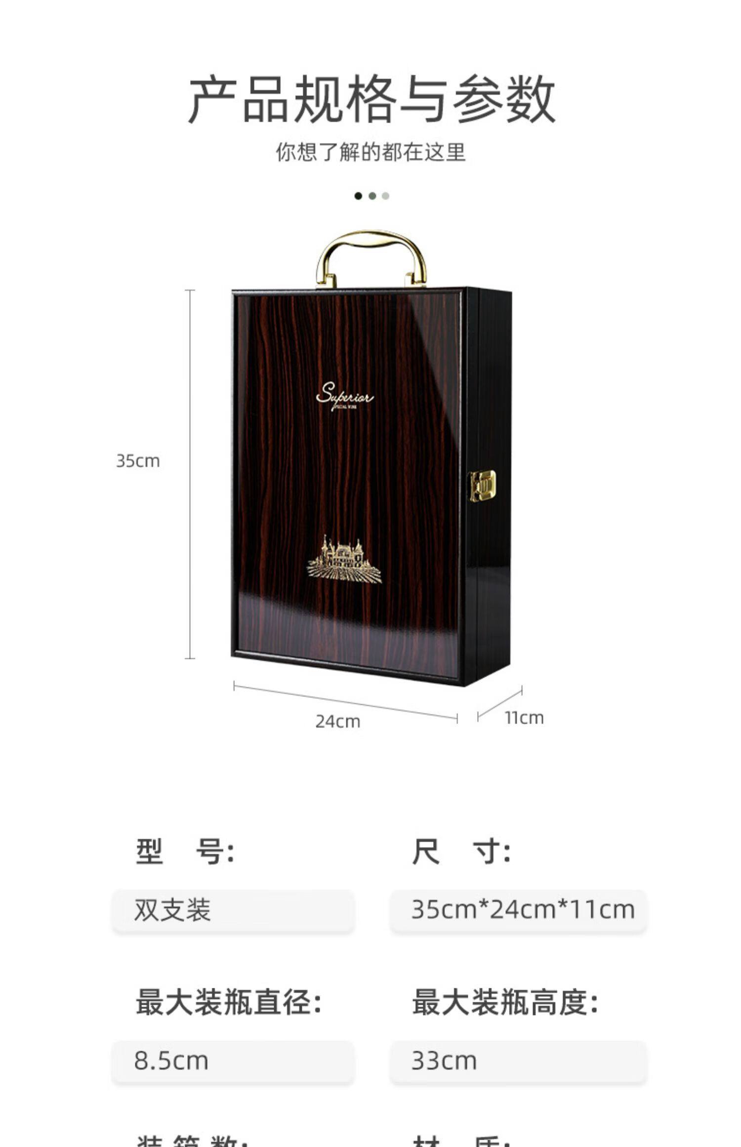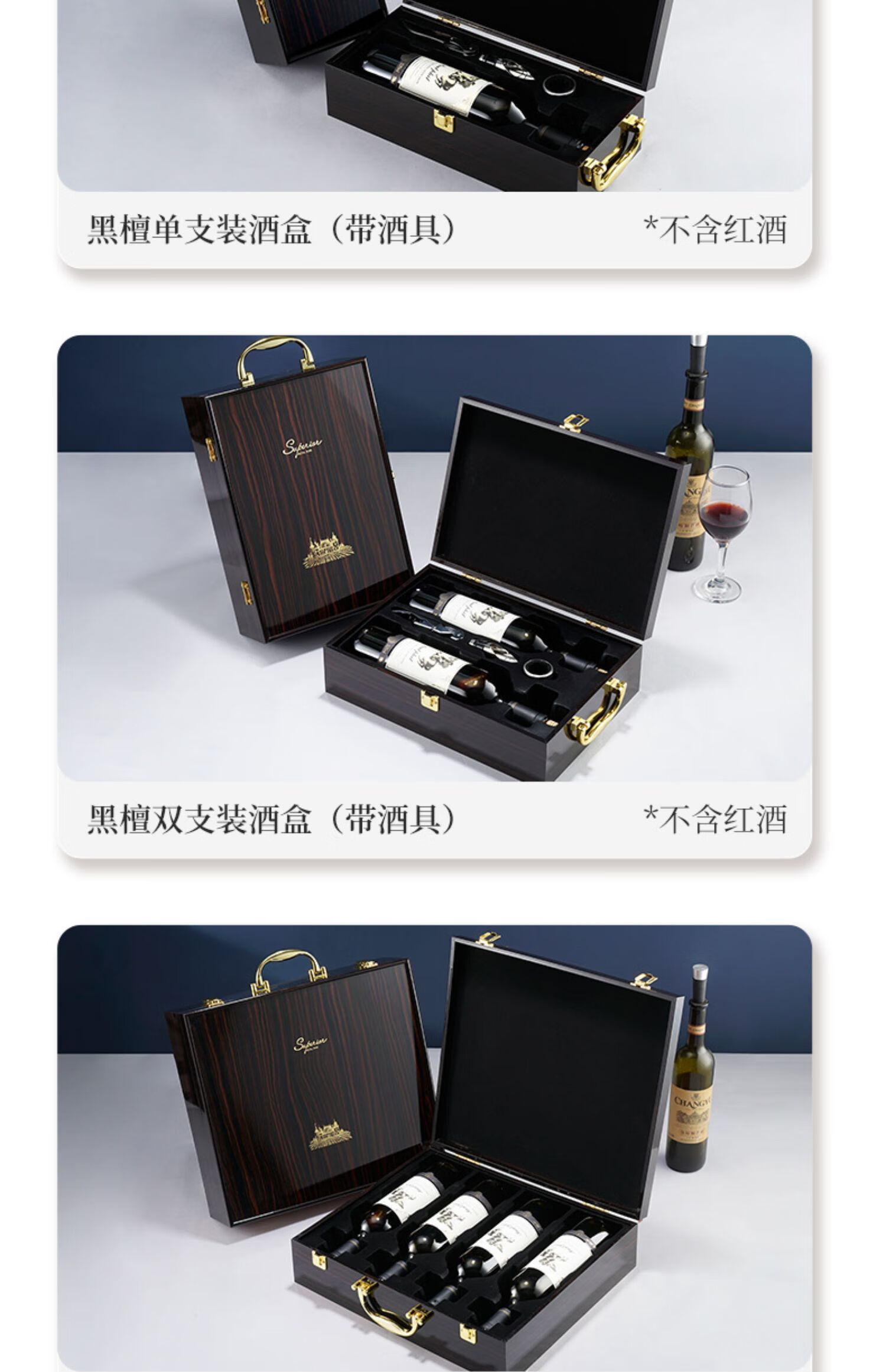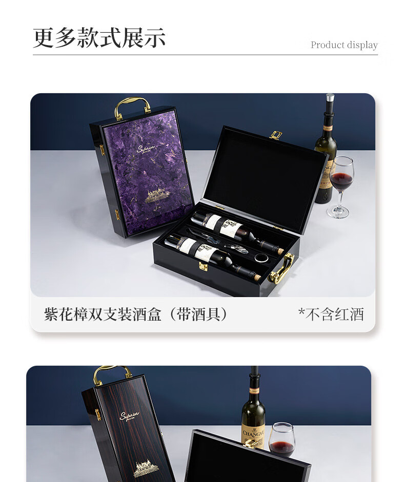 Chuanbao piano paint red wine gift box double packaging box high-end single and double bottles of red wine wooden box 2-pack wine box khaki double box with wine utensils