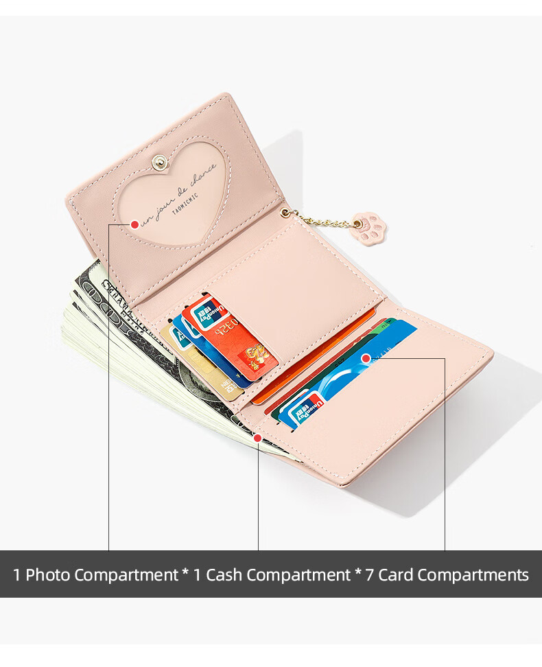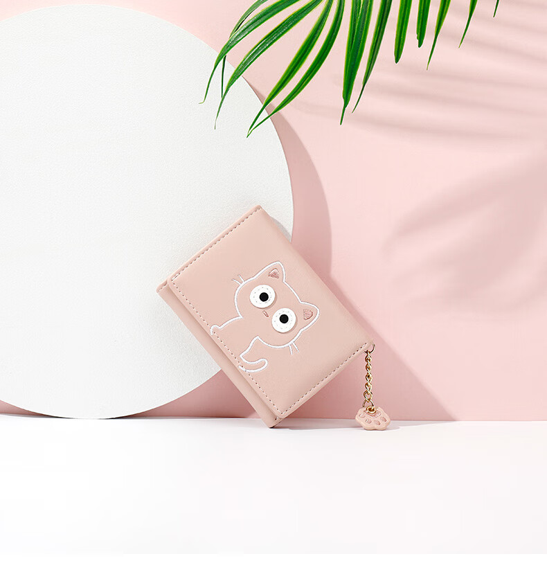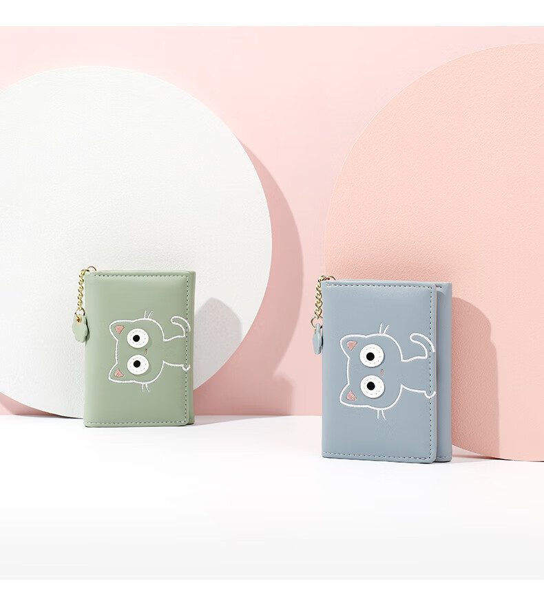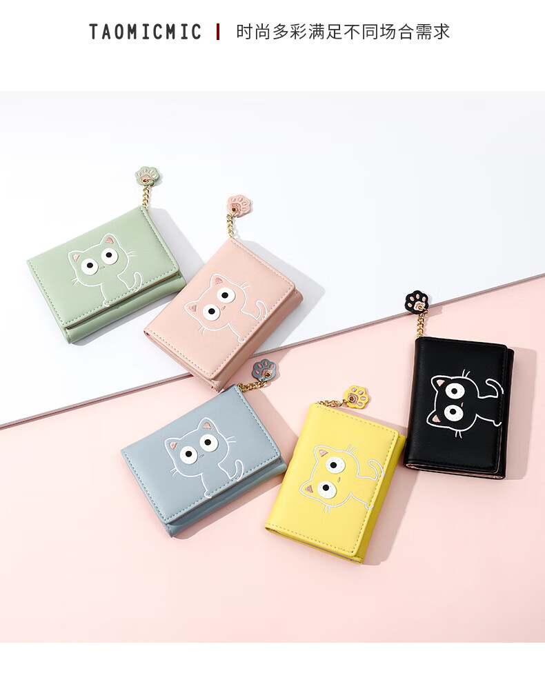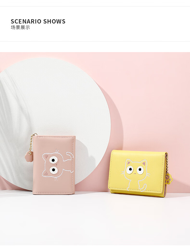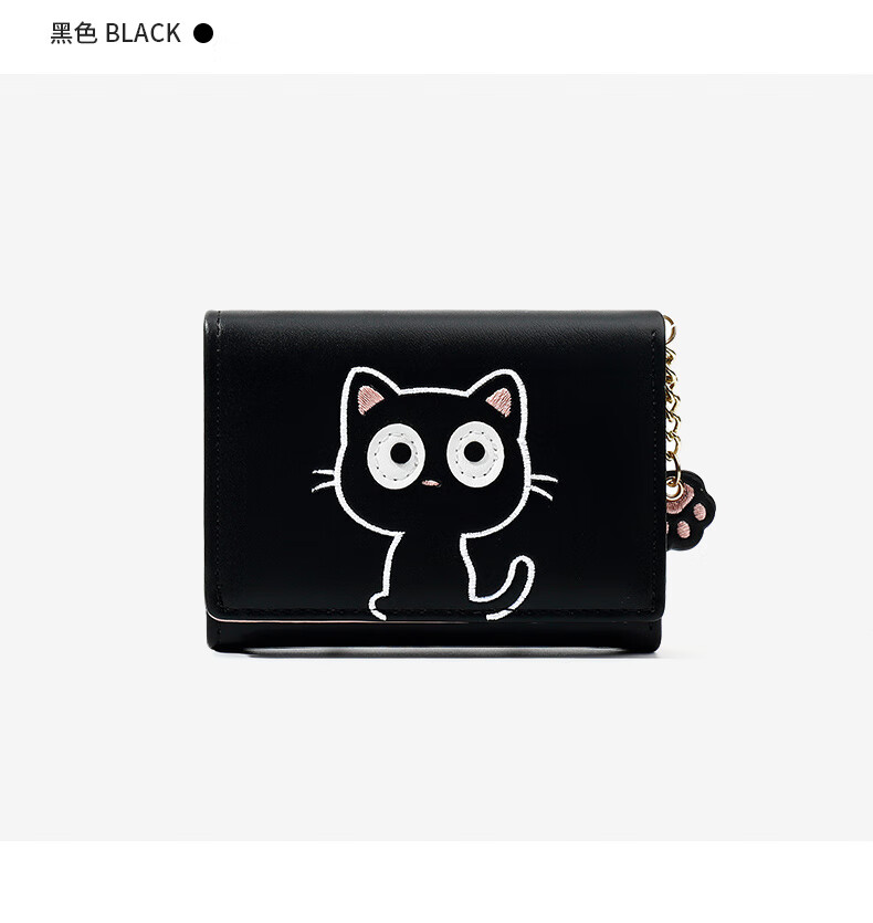 Casa-kupsCK coin purse women's short 2025 Chinese Valentine's Day small fresh and cute cat car stitching small card holder multi-functional black