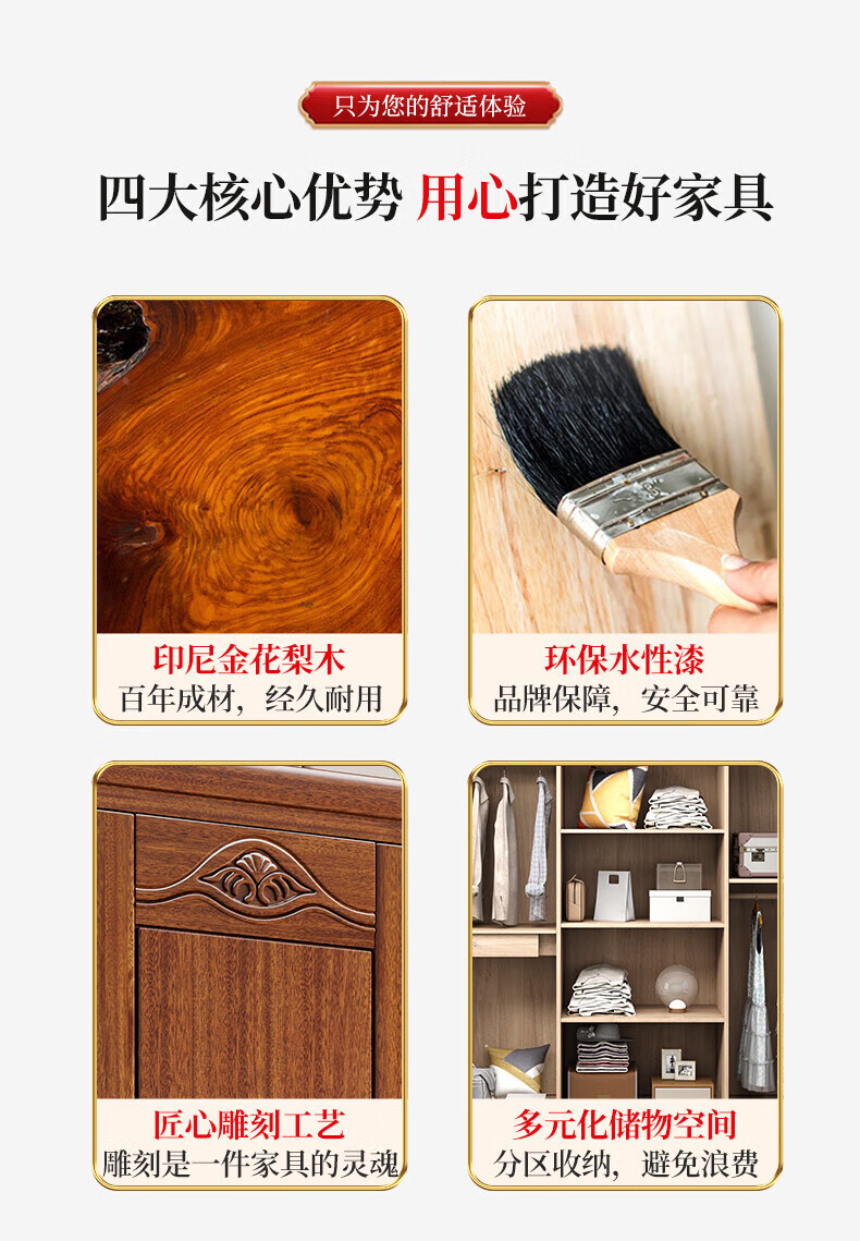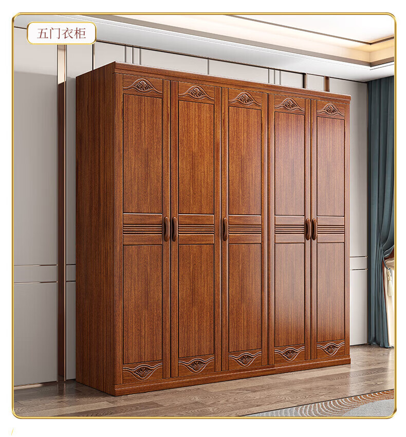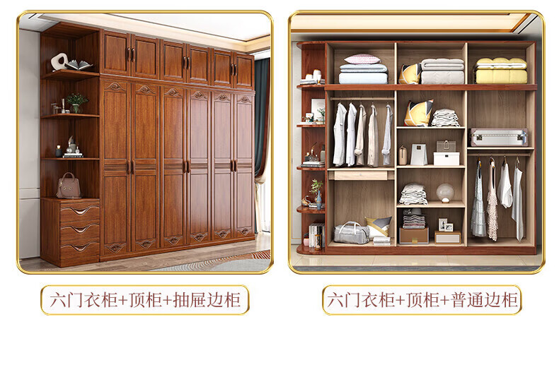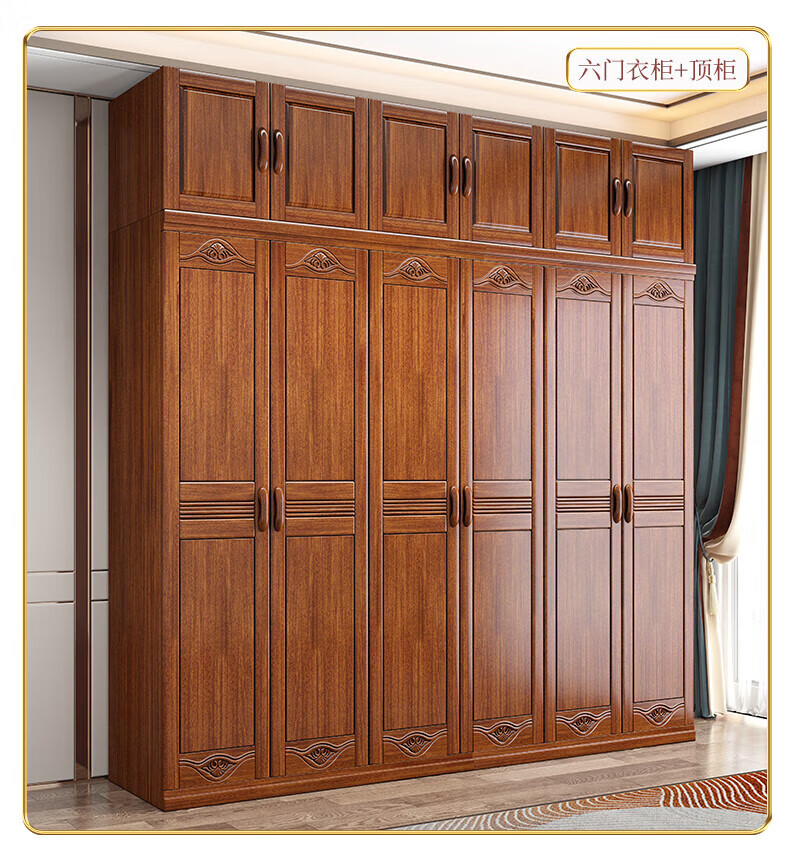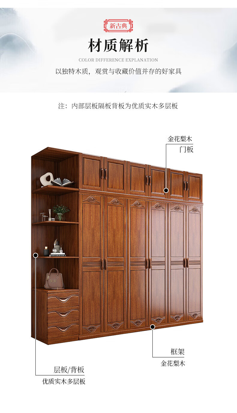Nanyi Wardrobe Chinese Golden Rosewood Home Bedroom Wardrobe Storage Cabinet Side Cabinet with Top Cabinet Solid Wood Wardrobe Z8611 Six-Door Wardrobe Golden Rosewood