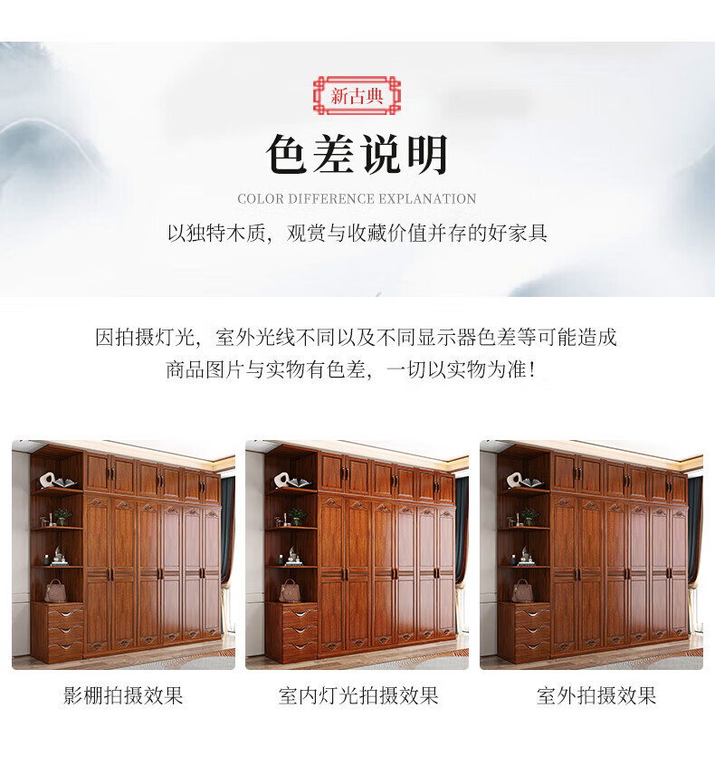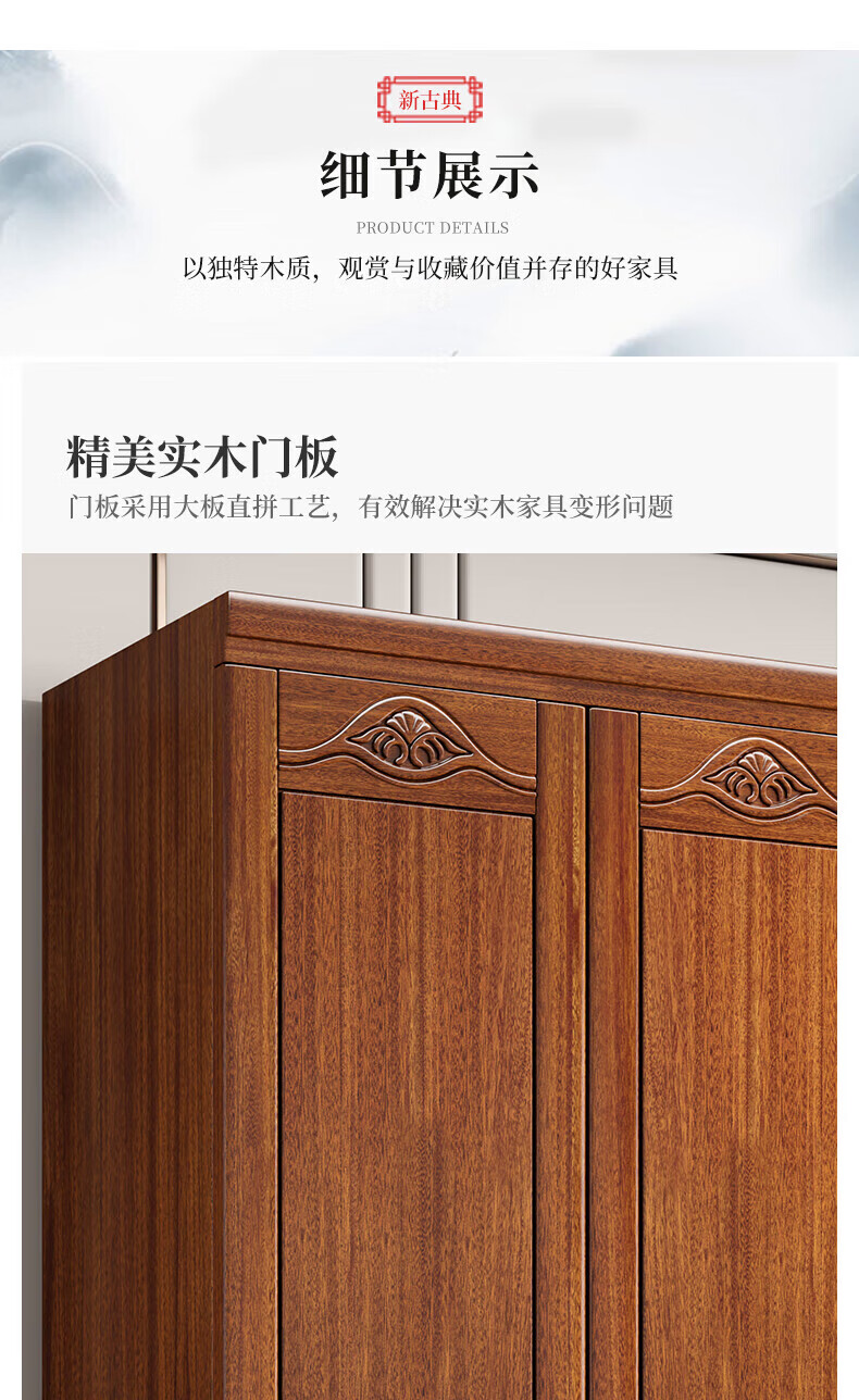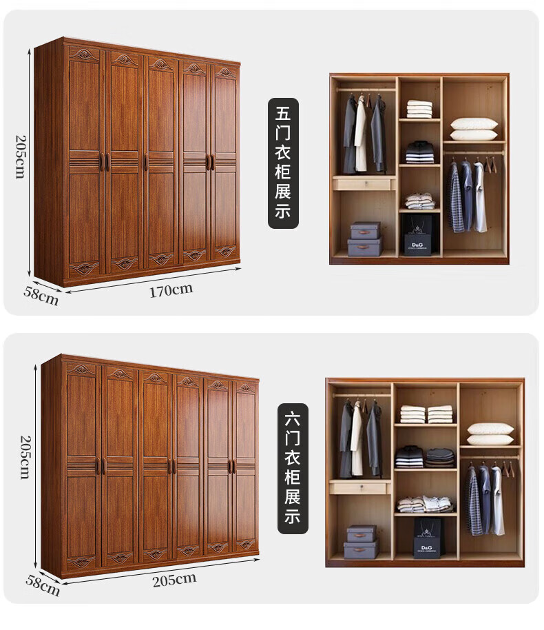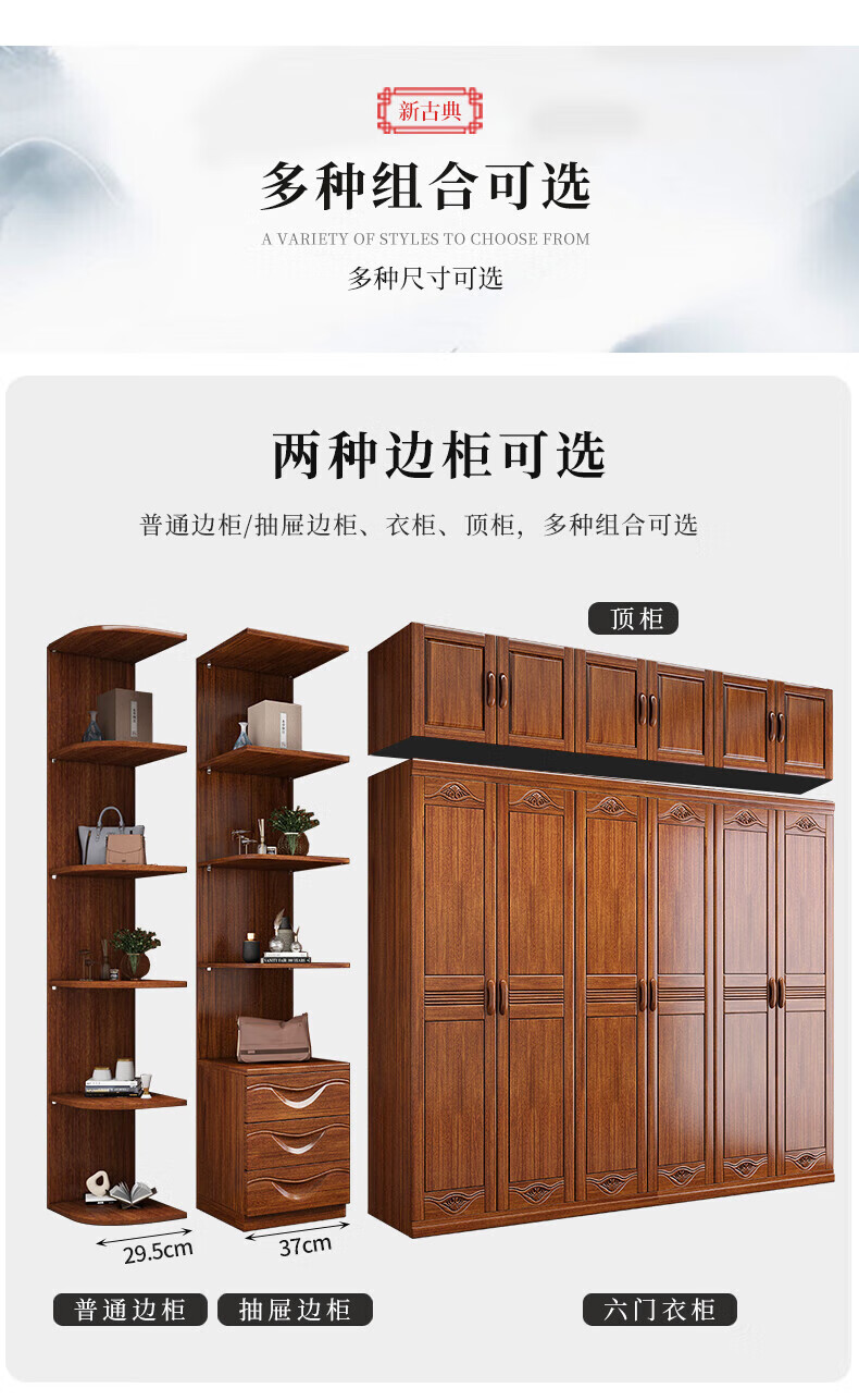 Nanyi Wardrobe Chinese Golden Rosewood Home Bedroom Wardrobe Storage Cabinet Side Cabinet with Top Cabinet Solid Wood Wardrobe Z8611 Six-Door Wardrobe Golden Rosewood