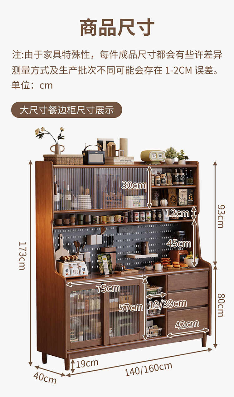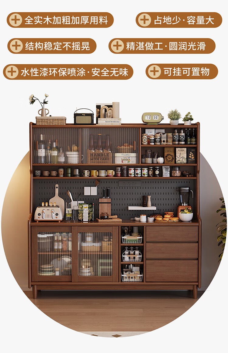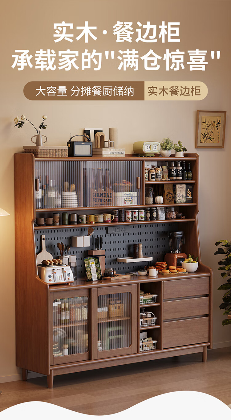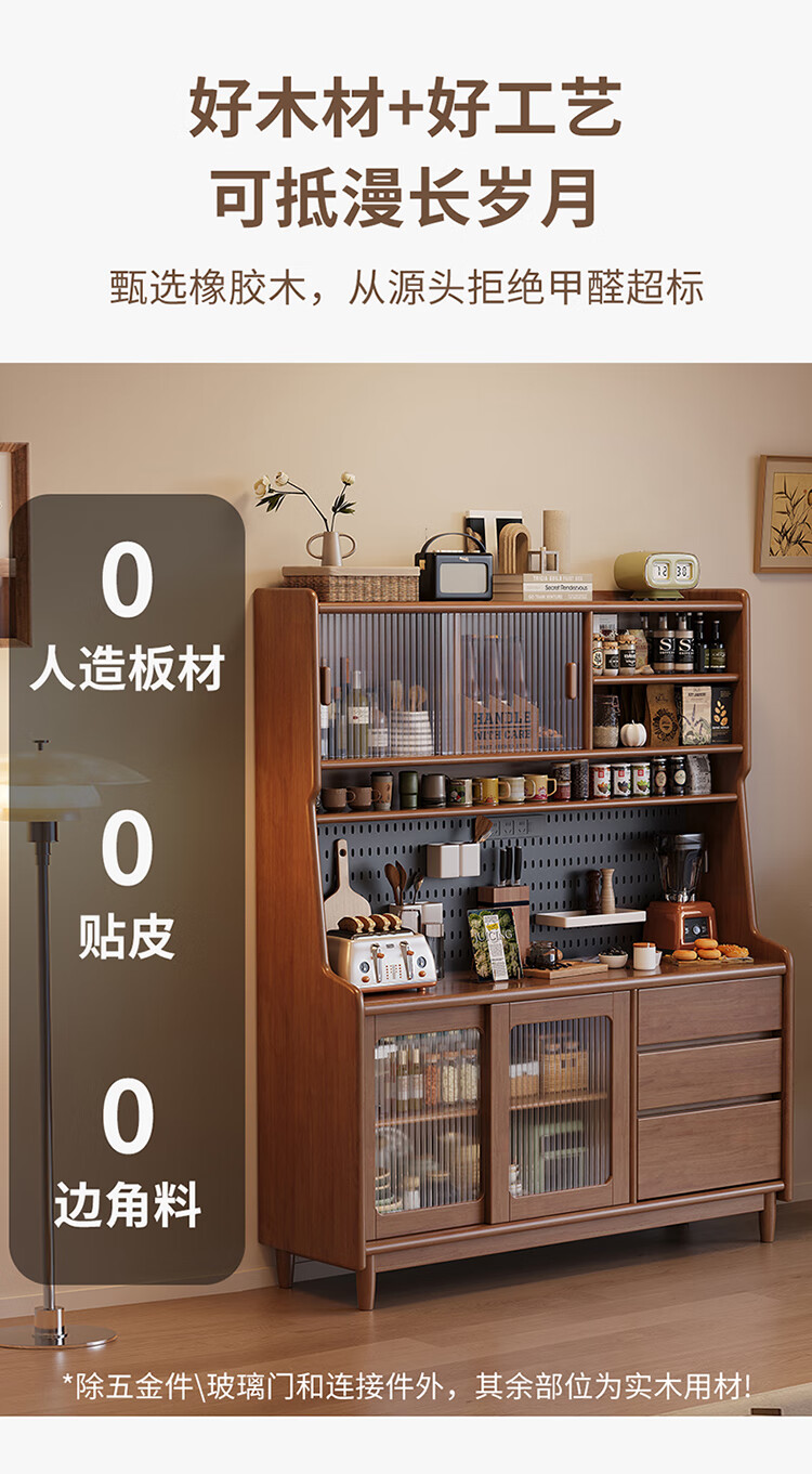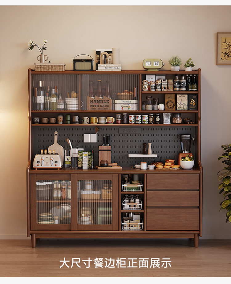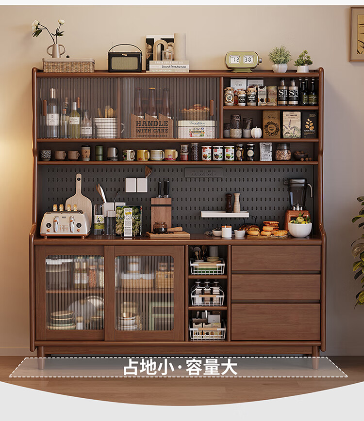 Huixun Nordic sideboard solid wood tea cabinet home restaurant integrated wall high cabinet living room simple cupboard storage wine cabinet FAS grade rubber wood without veneer black walnut color # 160cm*40cm*173cm
