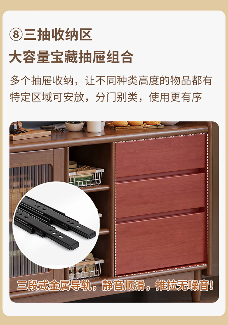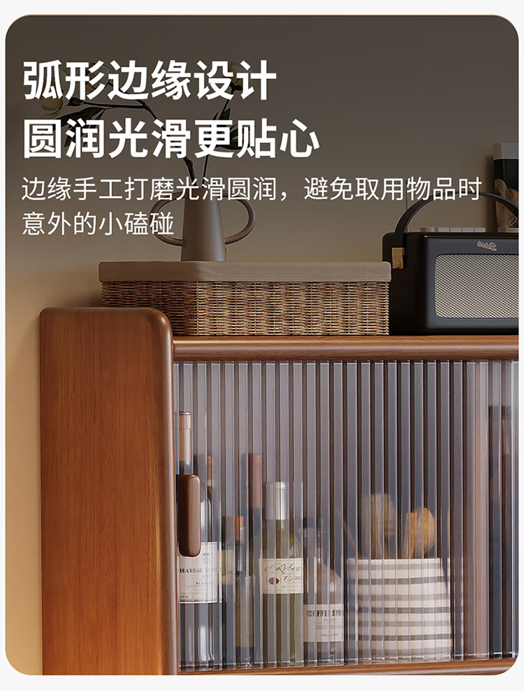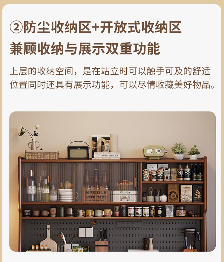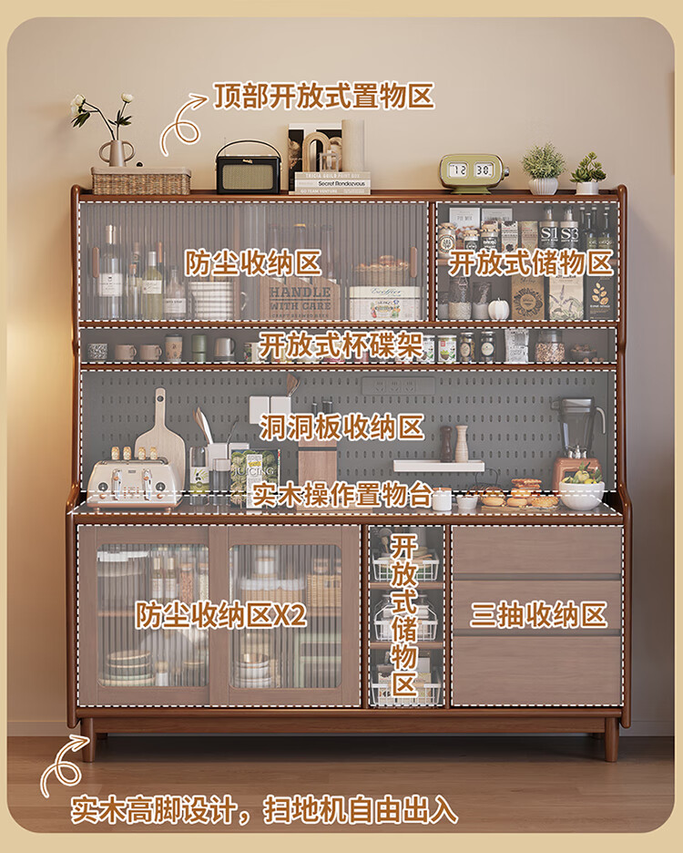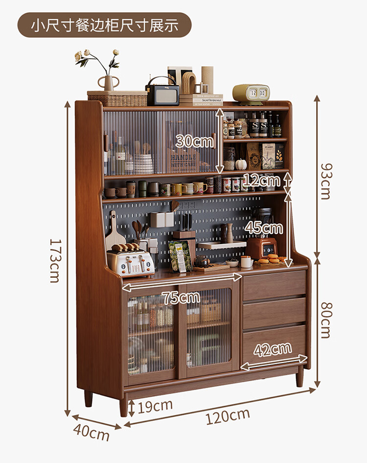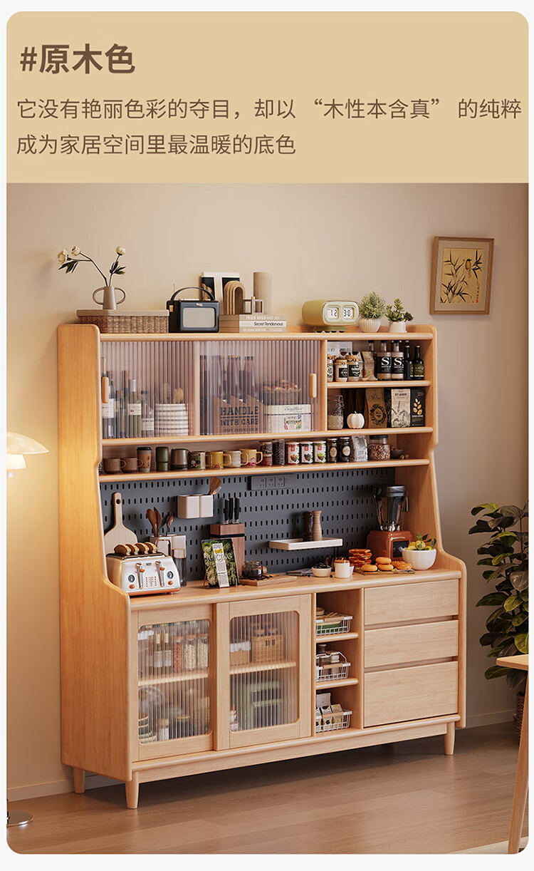 Huixun Nordic sideboard solid wood tea cabinet home restaurant integrated wall high cabinet living room simple cupboard storage wine cabinet FAS grade rubber wood without veneer black walnut color # 160cm*40cm*173cm