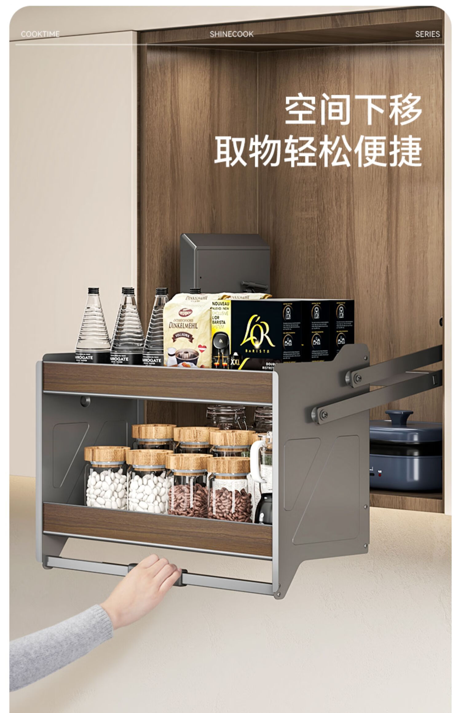 Oluoxun wall cabinet pull basket kitchen cabinet lift pull basket kitchen pull-down basket wall cabinet seasoning storage drop-down basket 450 cabinet