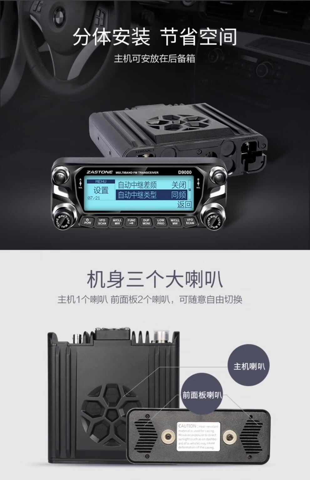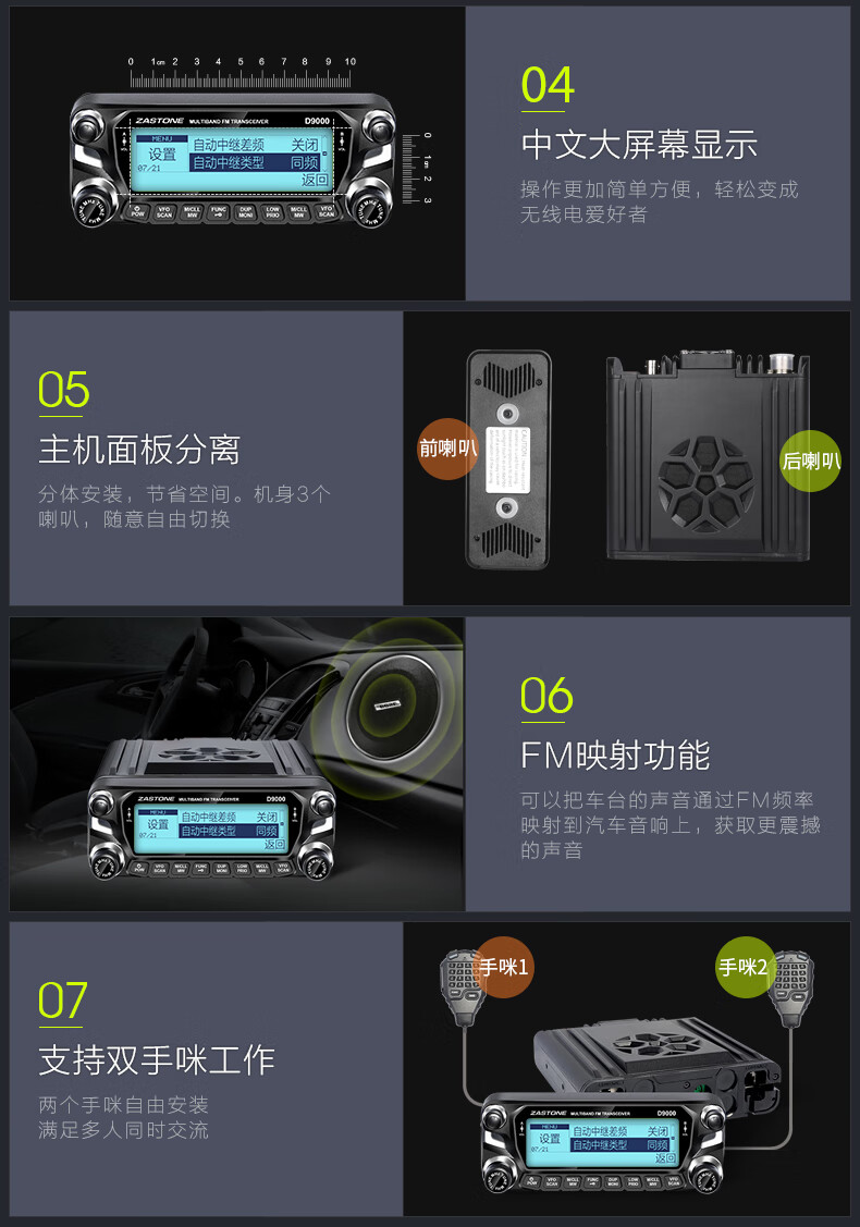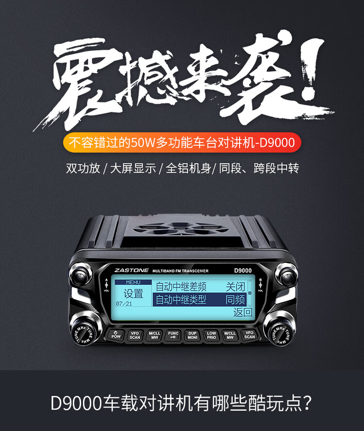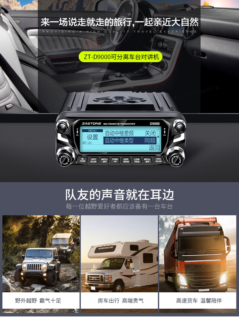 ZASTONE car walkie-talkie D9000 outdoor civilian high-power self-driving car radio station black