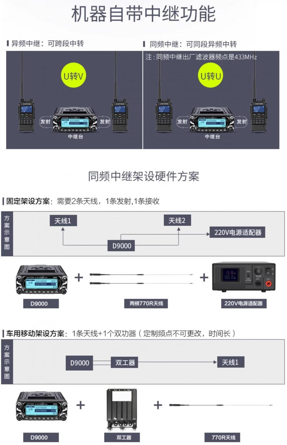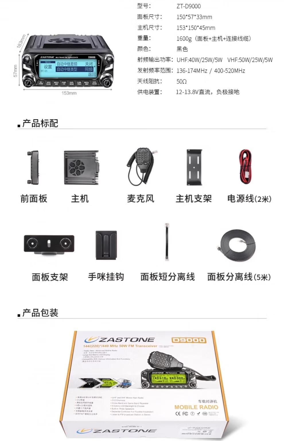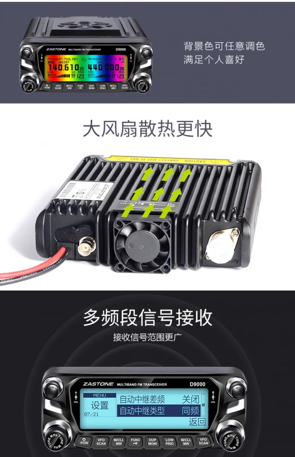 ZASTONE car walkie-talkie D9000 outdoor civilian high-power self-driving car radio station black