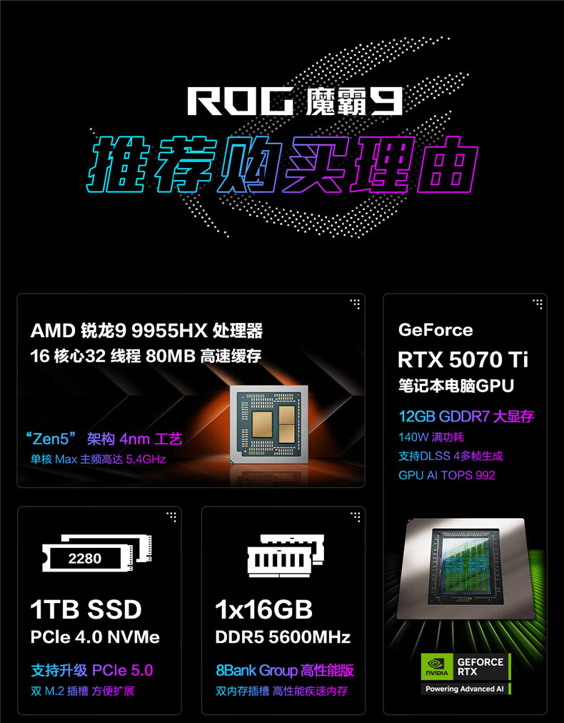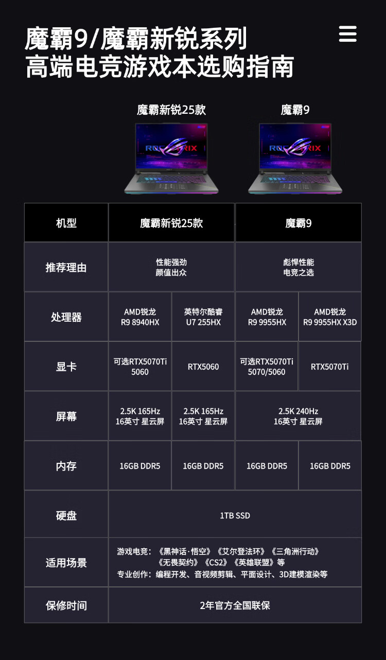ROG official refurbished machine 99 new MoBa 9 MoBa Xinrui 2025 9955x3d 5070ti 5060 MoBa 8 sports MoBa 5r second-hand laptop gaming laptop ASUS MoBa 9/R9/16G/1T/5070Ti-2 years