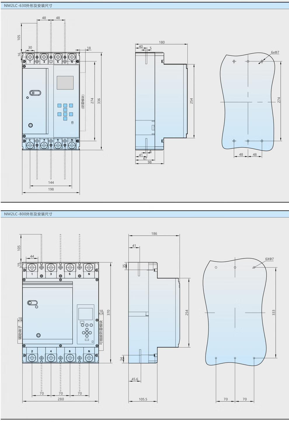 NM2LC automatic reclosing photovoltaic grid-connected cost-controlled leakage adjustable remote 485 communication circuit breaker NM2LC-630/M photovoltaic dedicated