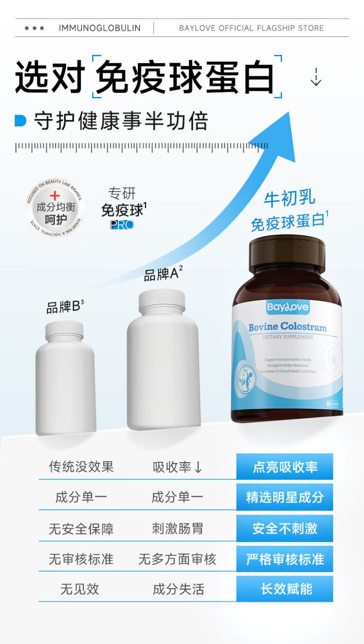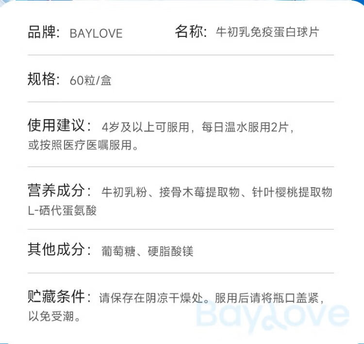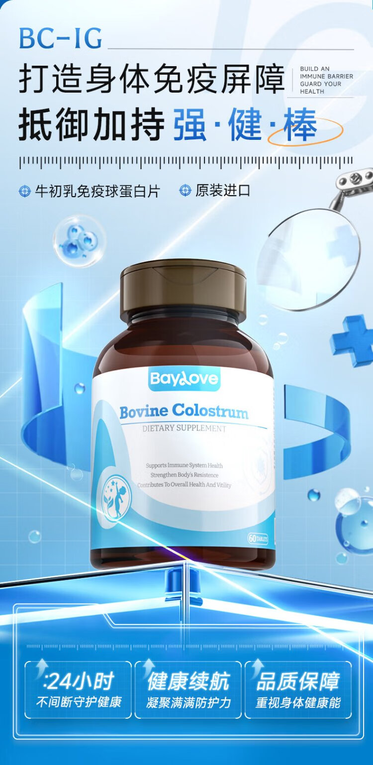 BAYLOVE imported bovine colostrum immune globulin 60 tablets for children to enhance body immunity and resistance nutrients basic pack 1 box
