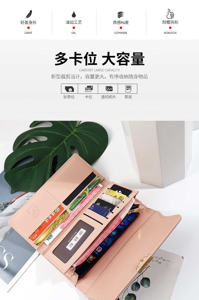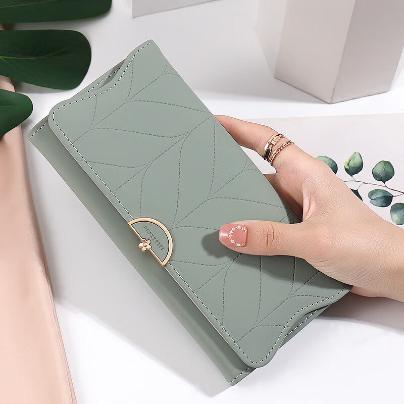 Casa-kupsCK wallet women's long small fresh flower handbag multifunctional large capacity card holder wallet all-in-one bag for women sea foam green