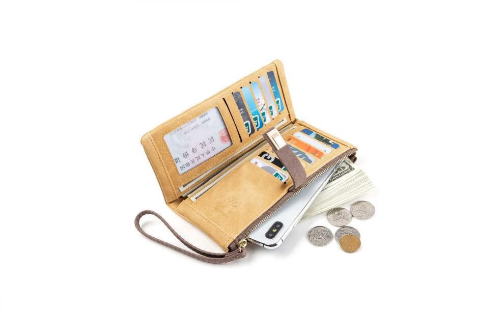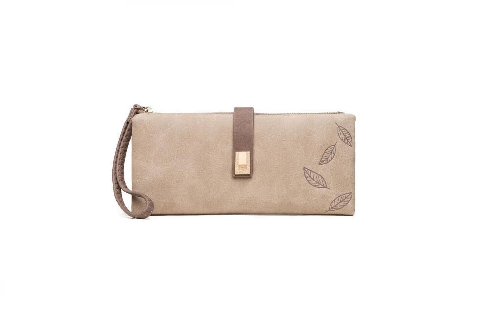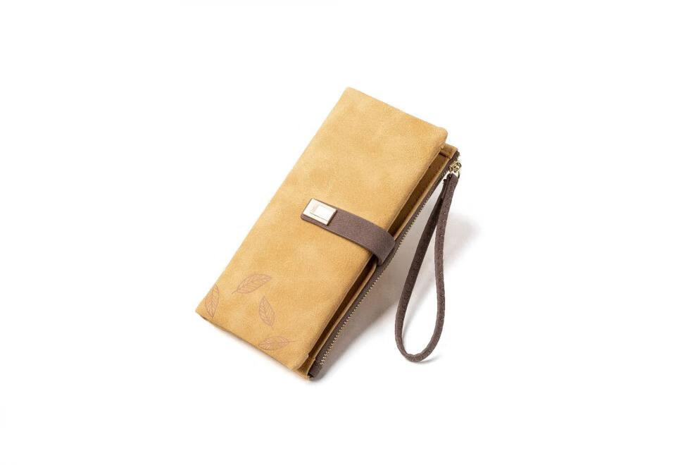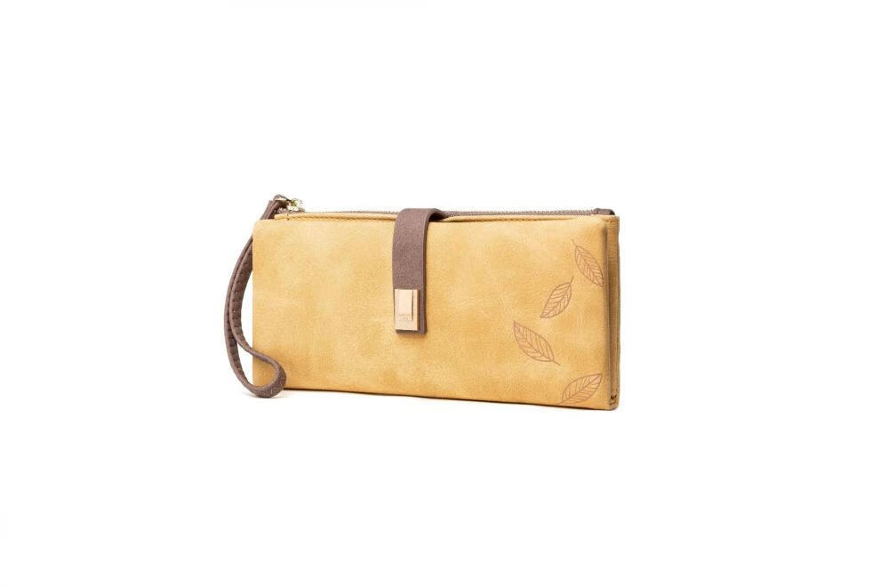 Casa-kupsCK women's long wallet 2025 Chinese Valentine's Day Korean version frosted leaf buckle zipper women's handbag yellow