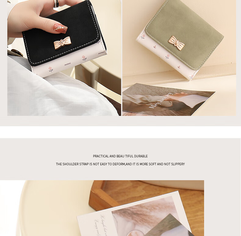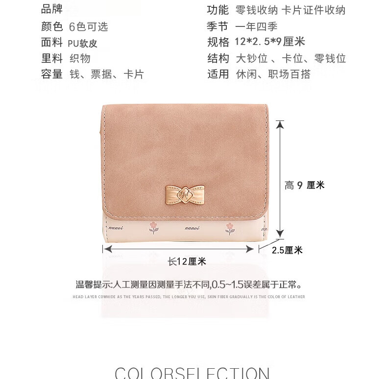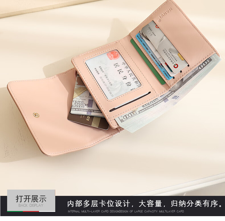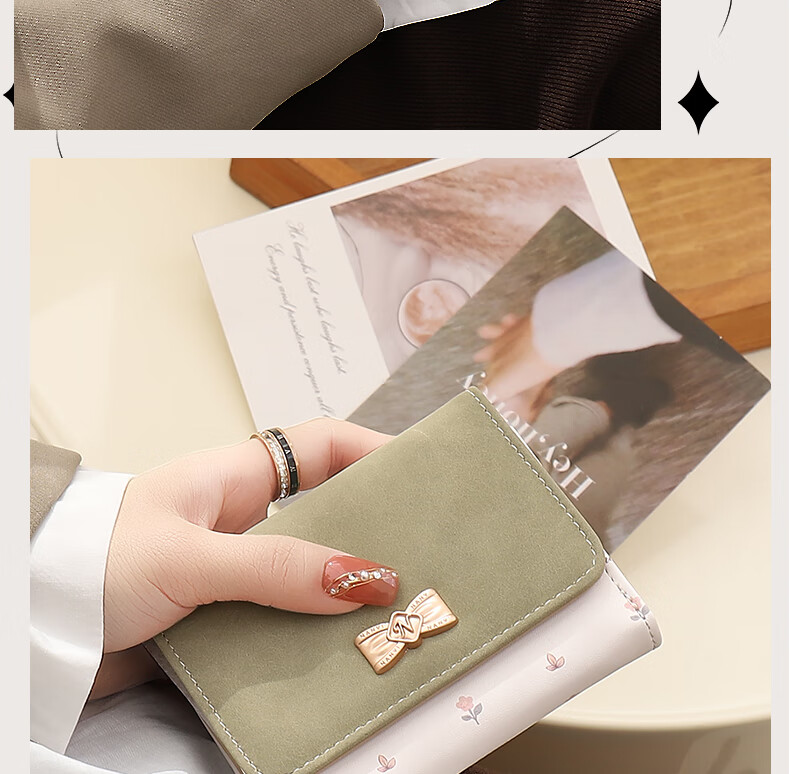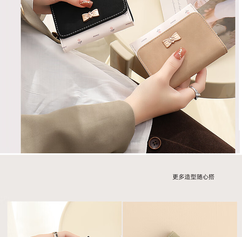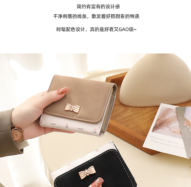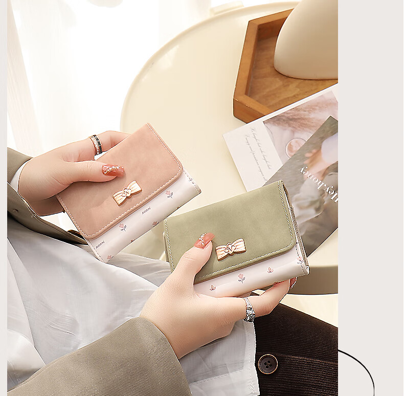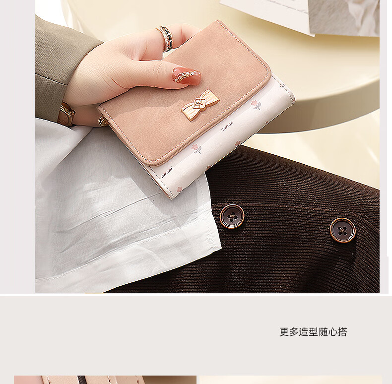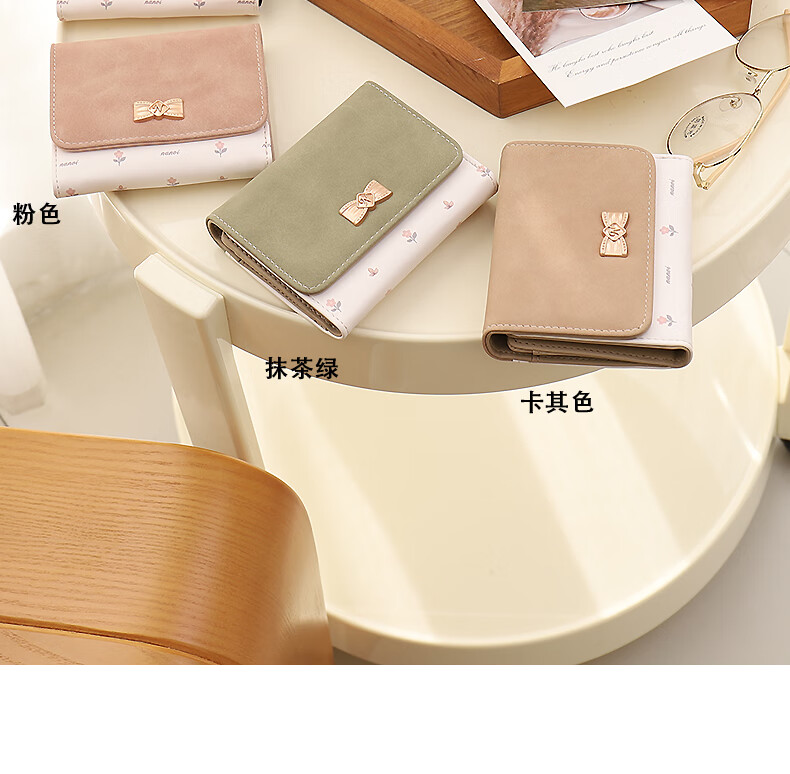 Casa-kupsCK wallet female 2025 Chinese Valentine's Day student small wallet folding Korean style bow short card holder coin purse light pink