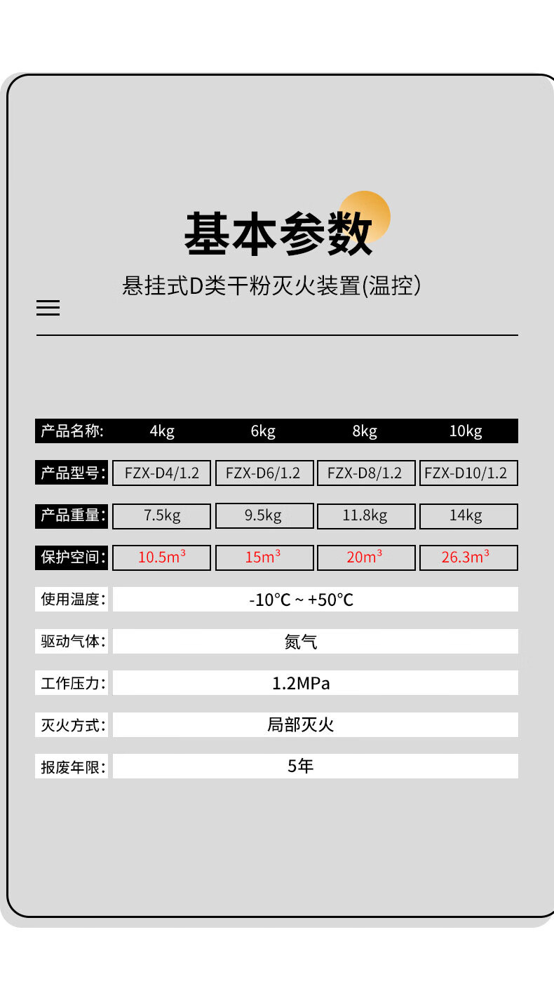 New energy vehicle charging pile Class D suspended dry powder fire extinguisher 4KG suspended fire extinguisher sodium magnesium lithium light metal iron chain 1 meter + hook + hanging ring