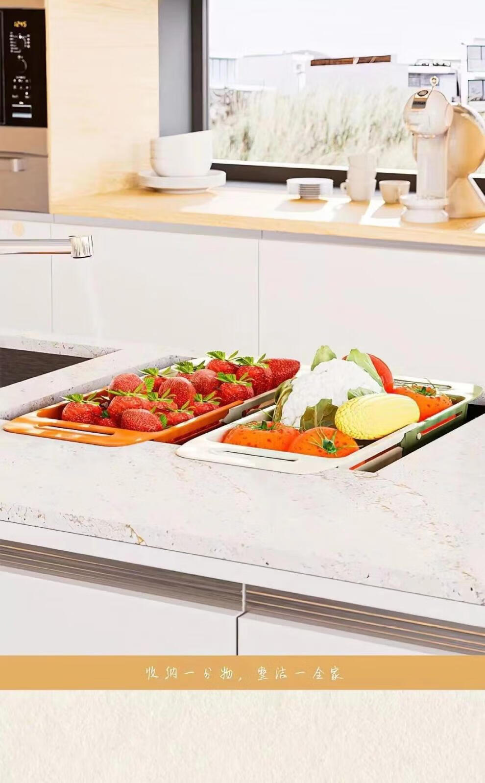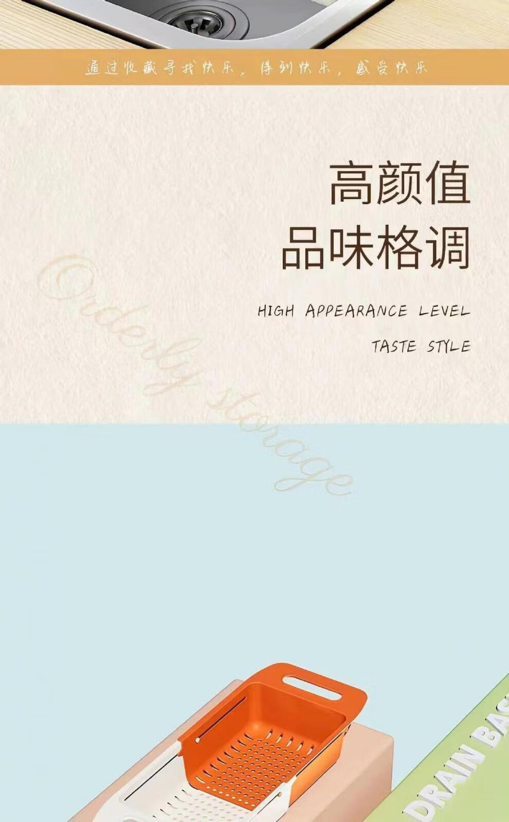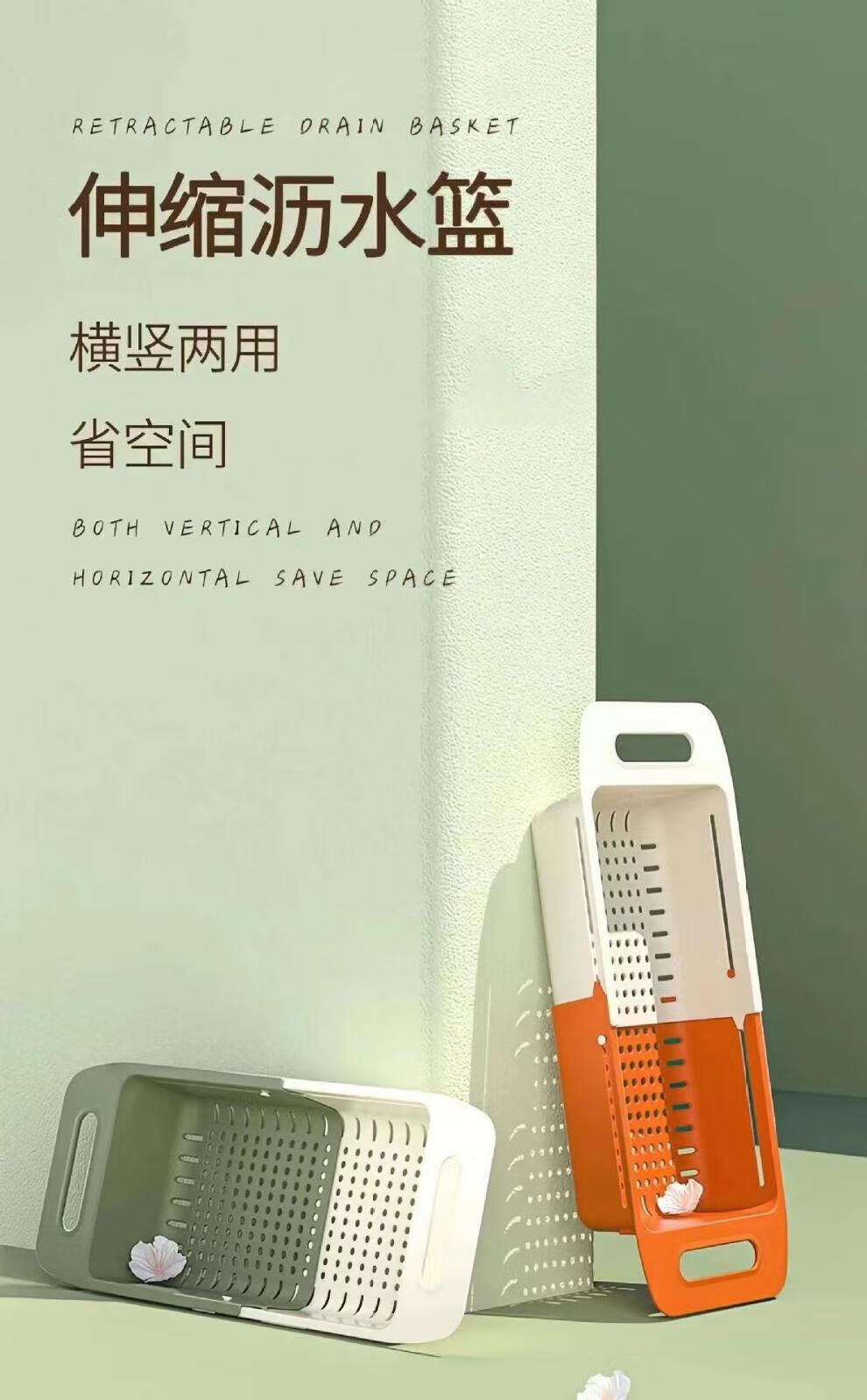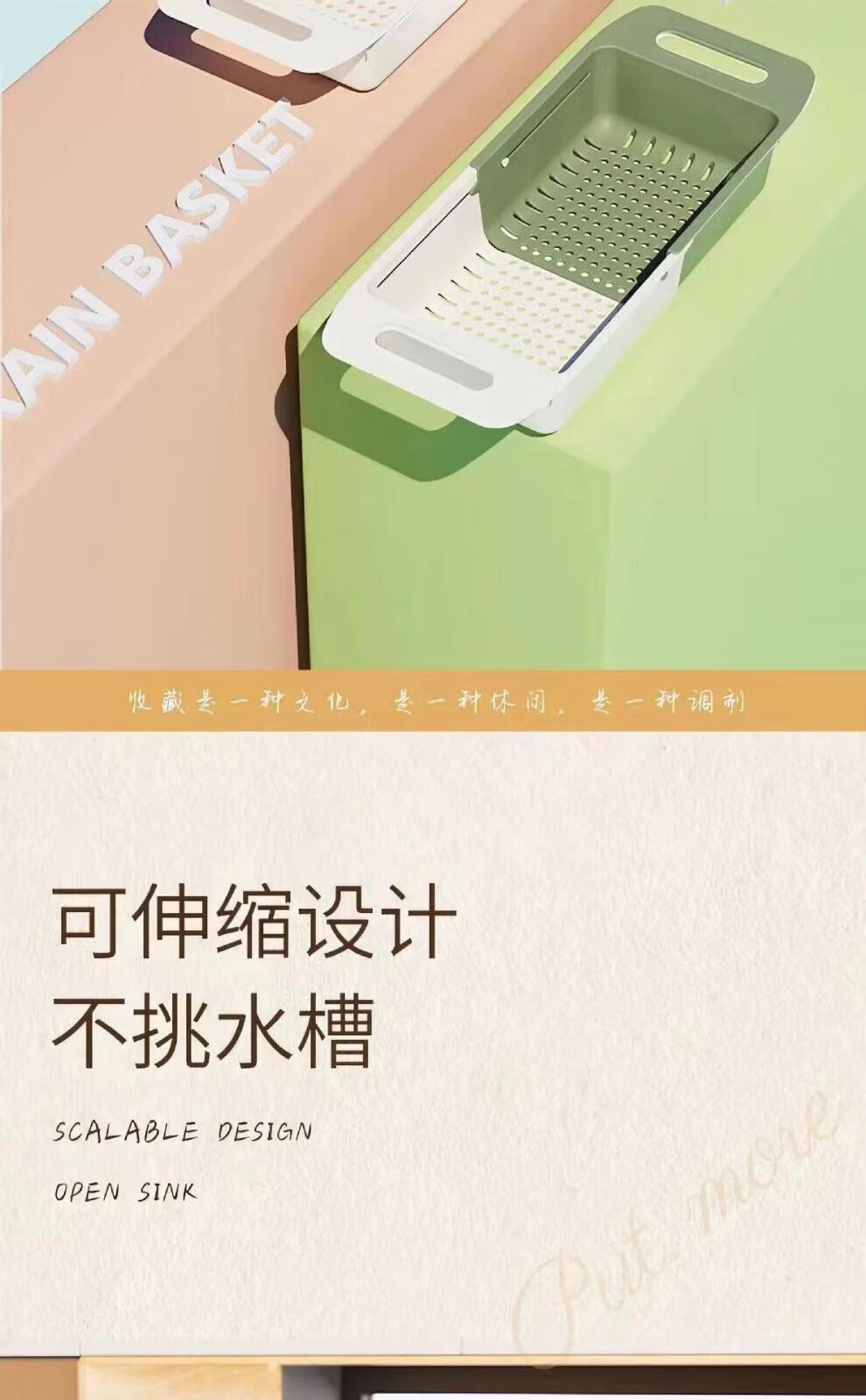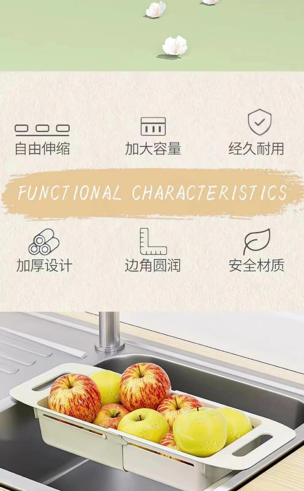 Jidaocook double-layer drain basket kitchen sink kitchen sink washing fruits and vegetables washing rice basket telescopic washing basket drain rack green and white contrasting color