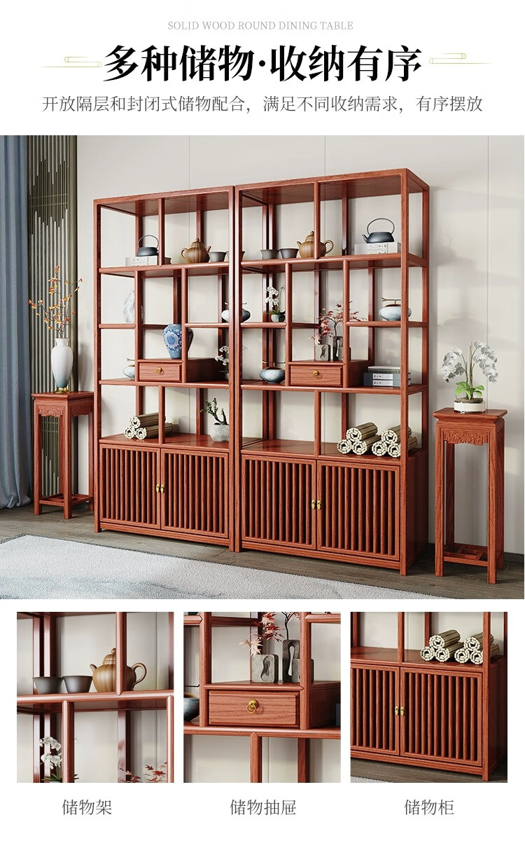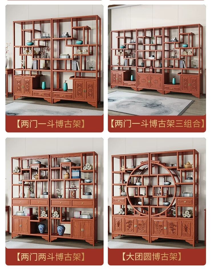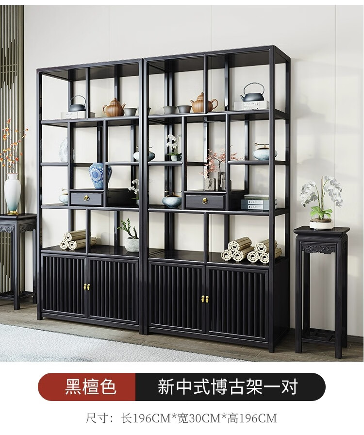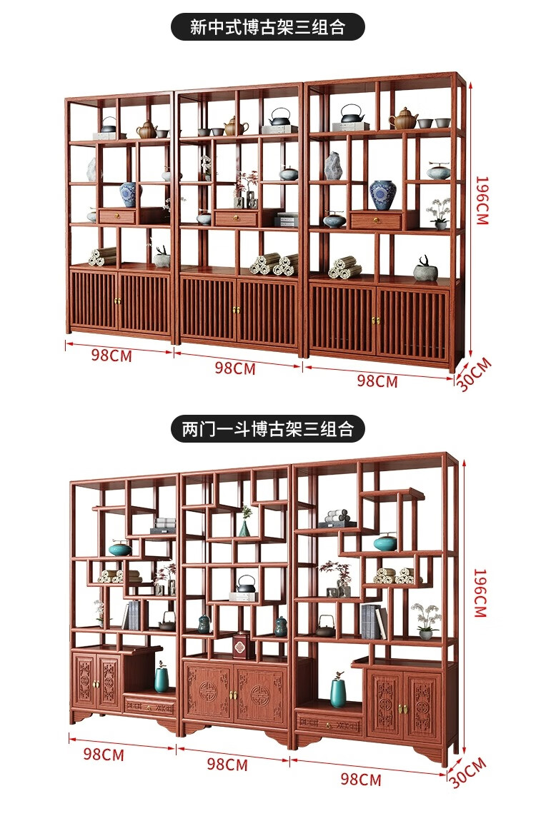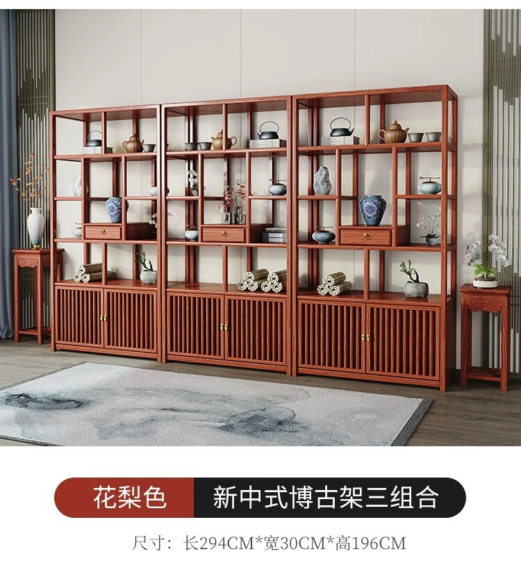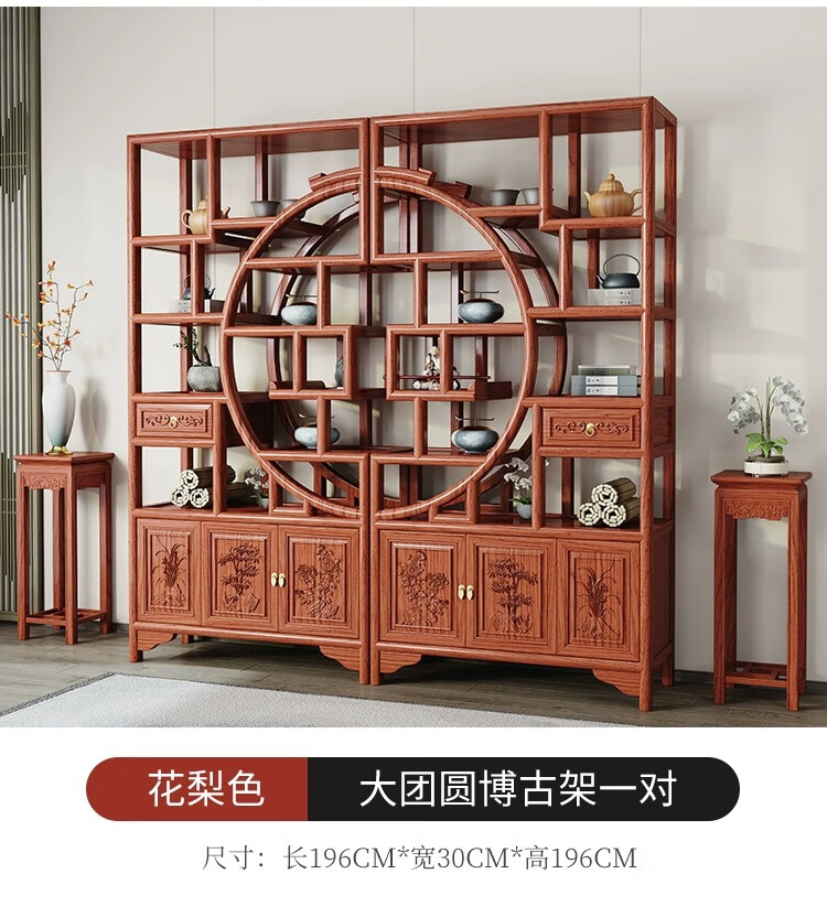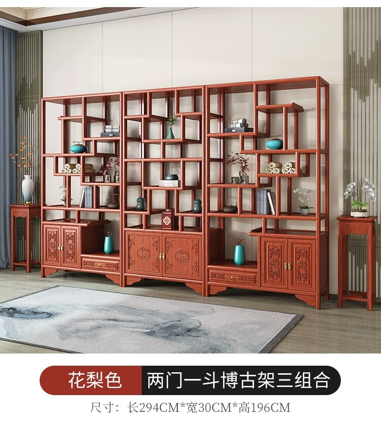 Vientiane cypress solid wood Duobao Pavilion ancient rack Chinese tea storage rack elm partition ornaments office tea room storage display cabinet two doors and one bucket ancient rack single (left) rosewood colored ancient rack solid wood