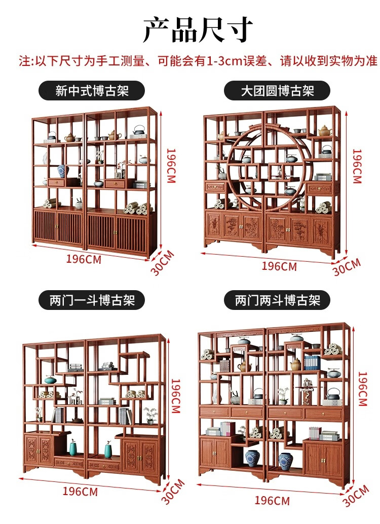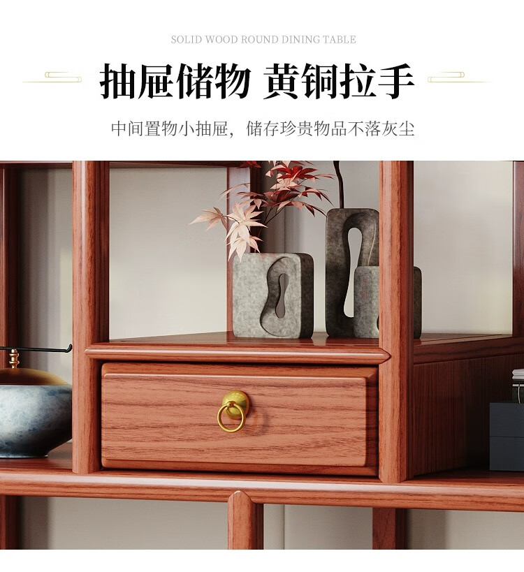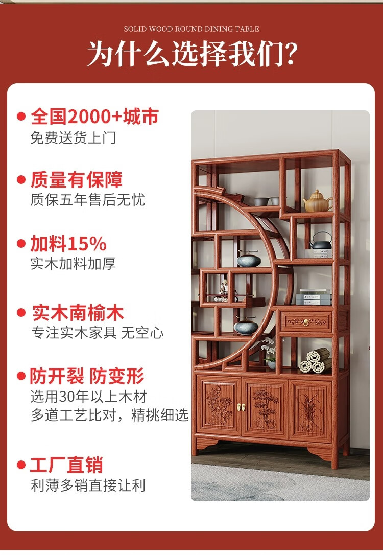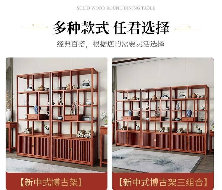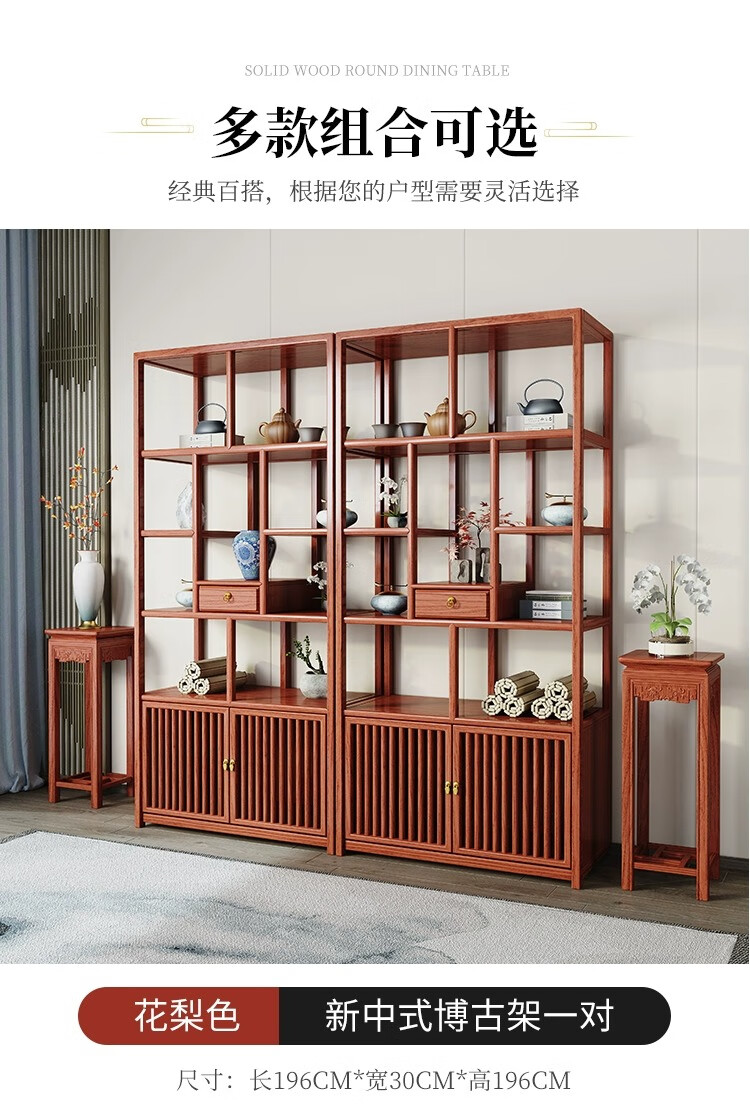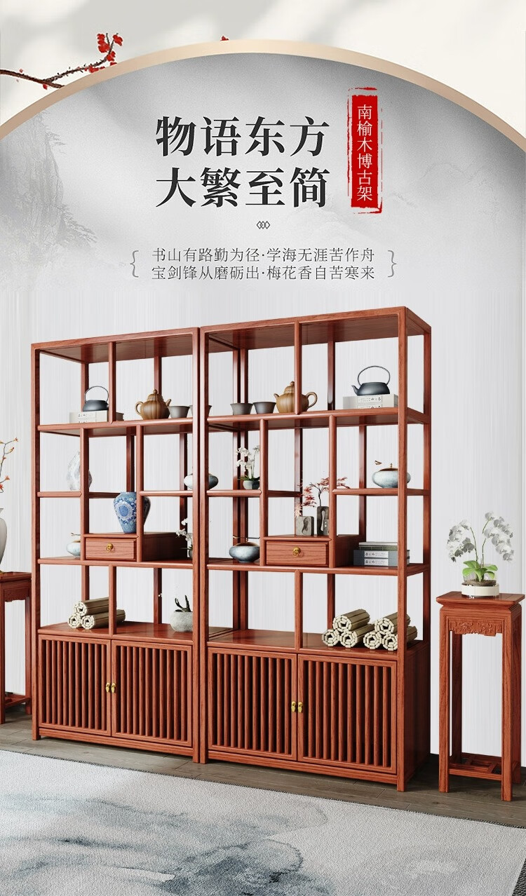 Vientiane cypress solid wood Duobao Pavilion ancient rack Chinese tea storage rack elm partition ornaments office tea room storage display cabinet two doors and one bucket ancient rack single (left) rosewood colored ancient rack solid wood