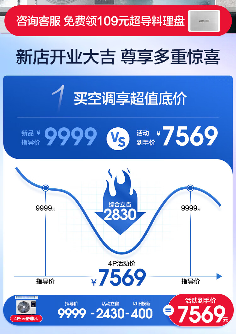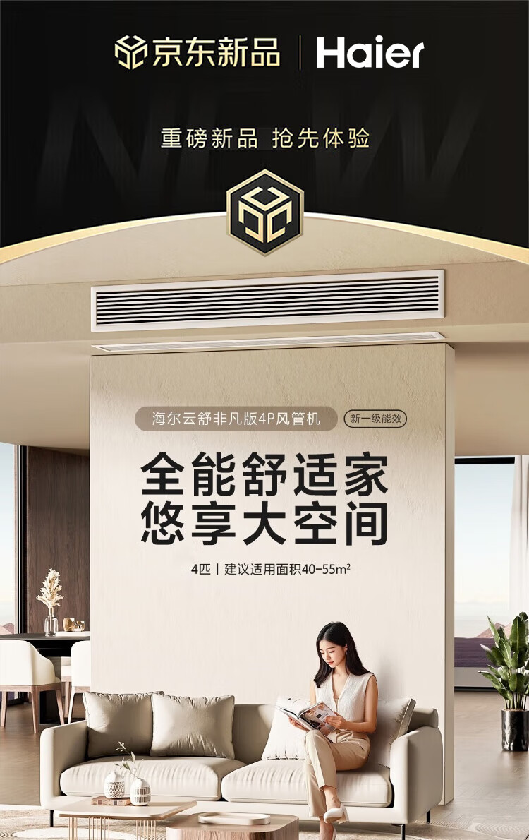 Haier central air conditioner Yunshu Extraordinary Edition duct machine one-to-one large 4 HP new first-level energy efficiency living room home embedded whole house intelligent full DC frequency conversion net power saving large space 4 HP first-level energy efficiency Yunshu Extraordinary + twin-cylinder compressor + three rows of copper pipes