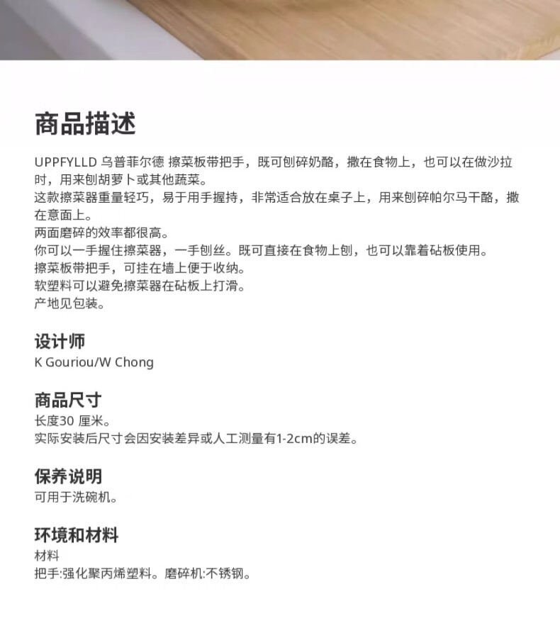 IKEA (IKEA) UPPFYLLD Upfield grater board with handle grater board with handle fish scale board bright green grater board with handle 30cm