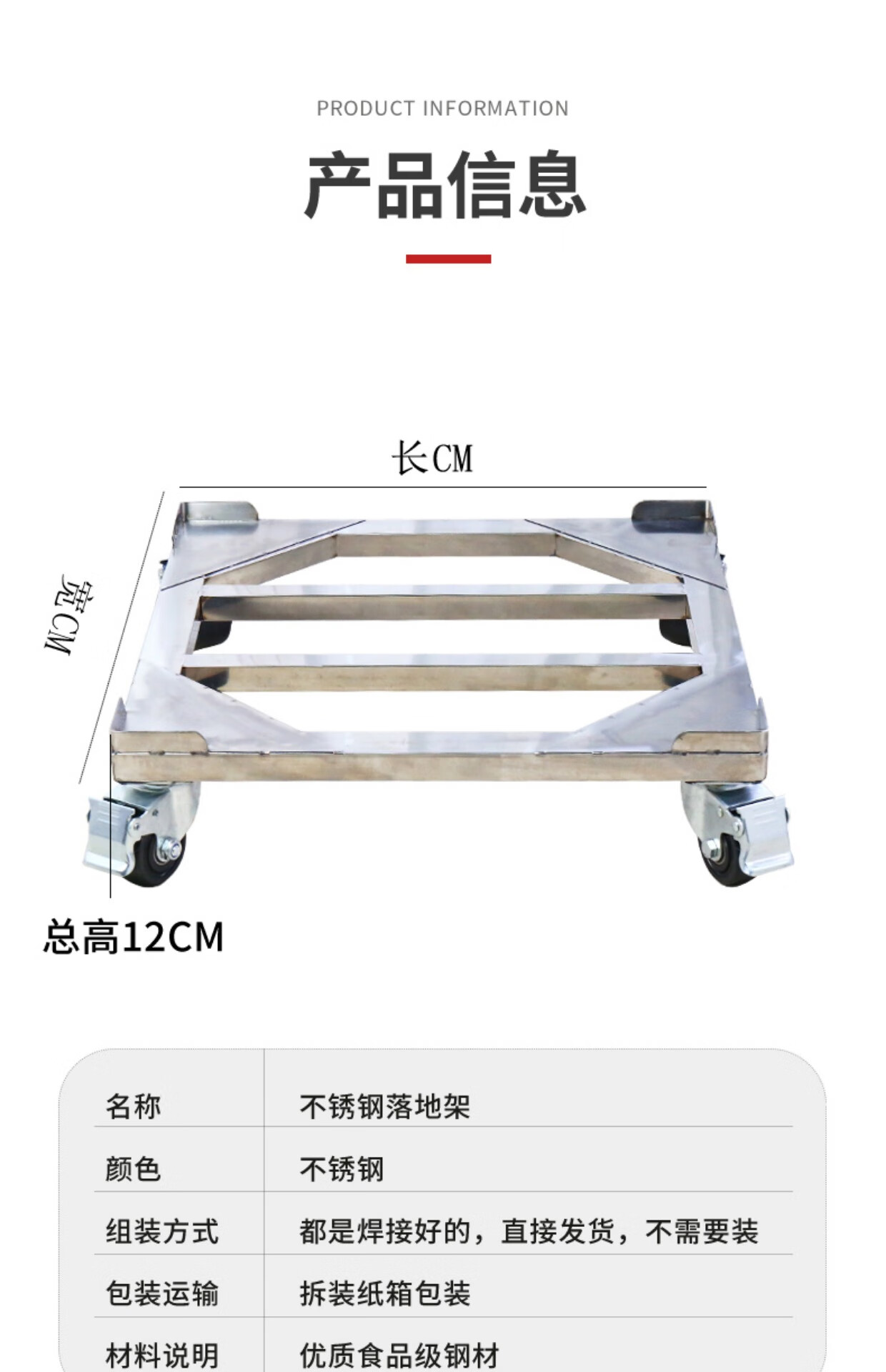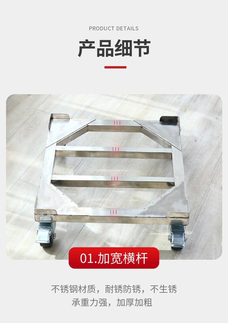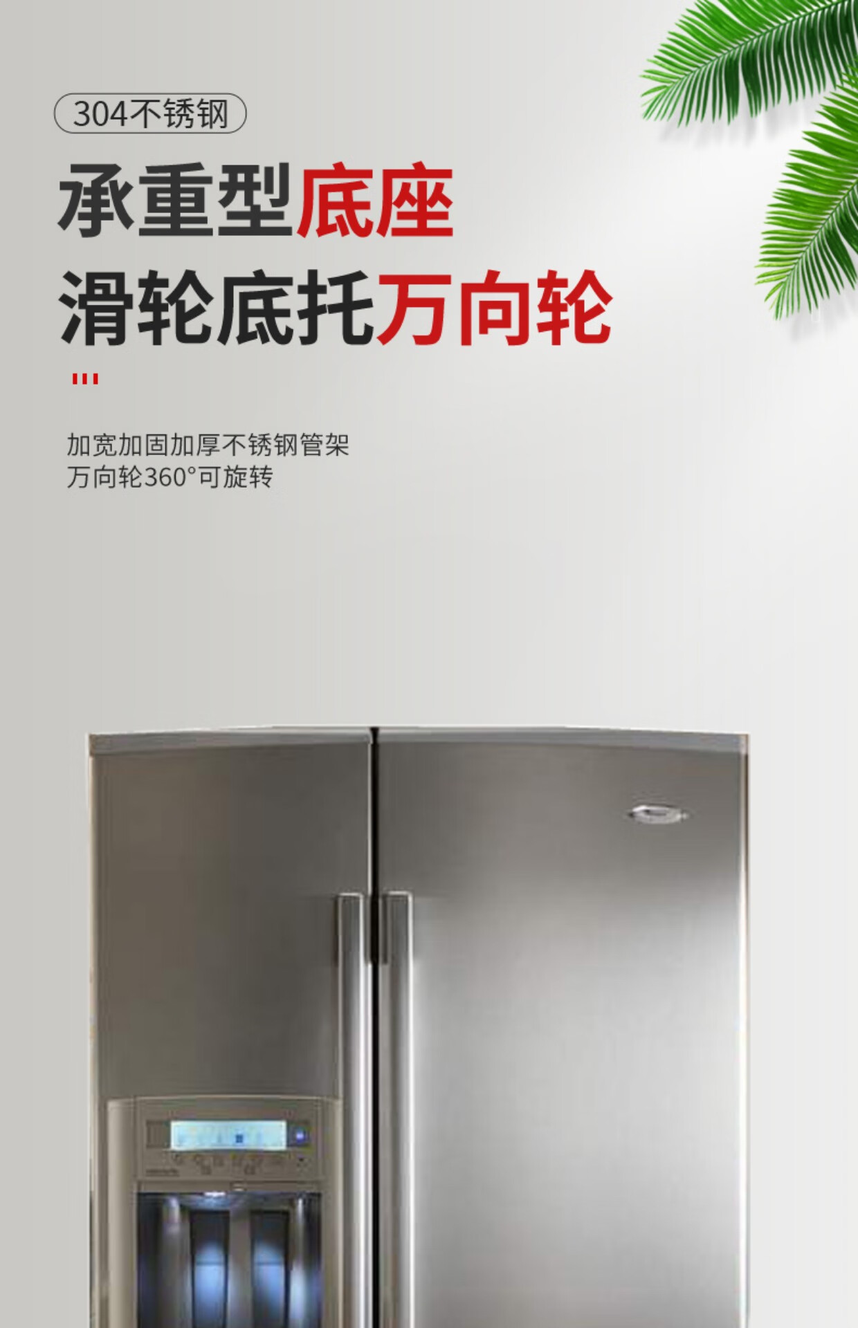 Jieyunmao stainless steel double-door refrigerator mobile base ice maker heavy-duty wheel bracket universal wheel brake load-bearing bracket 92*66304 stainless steel