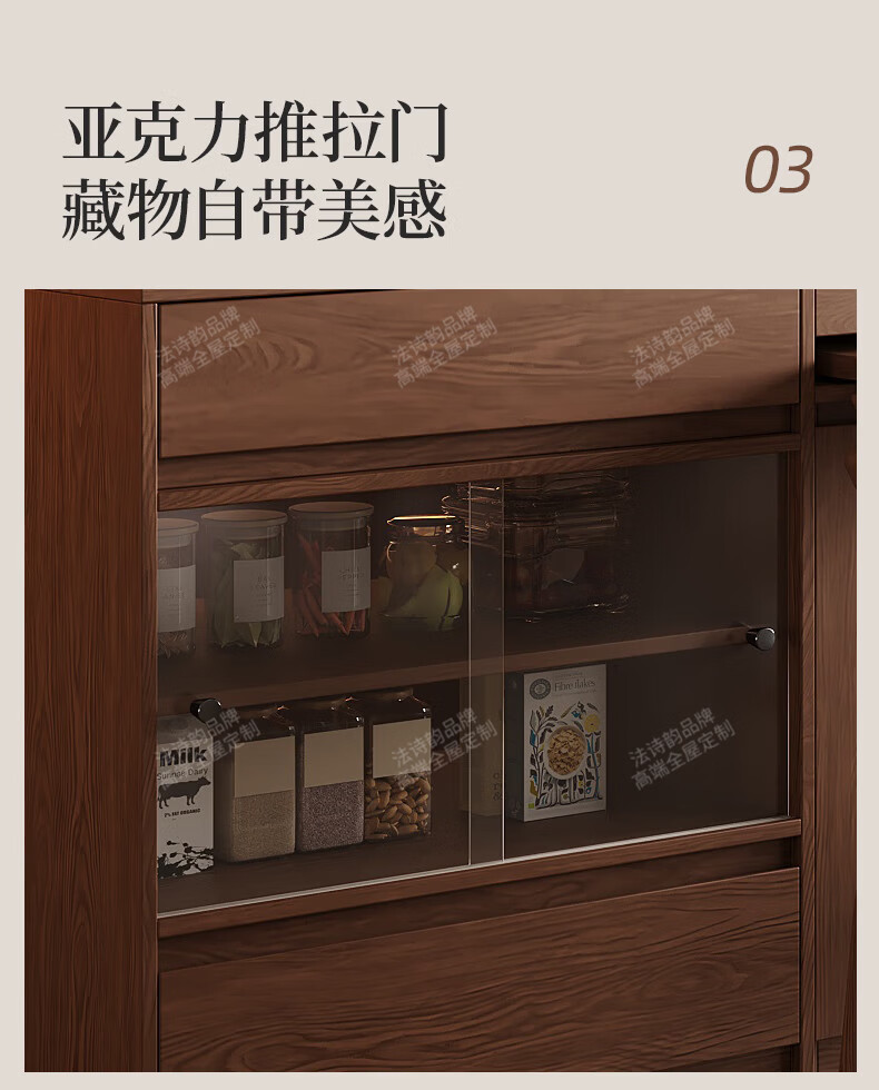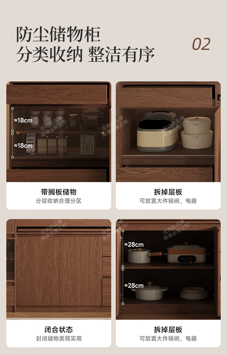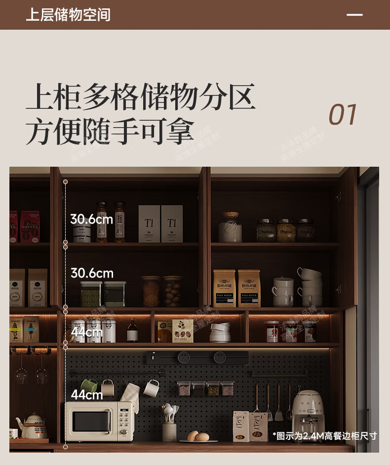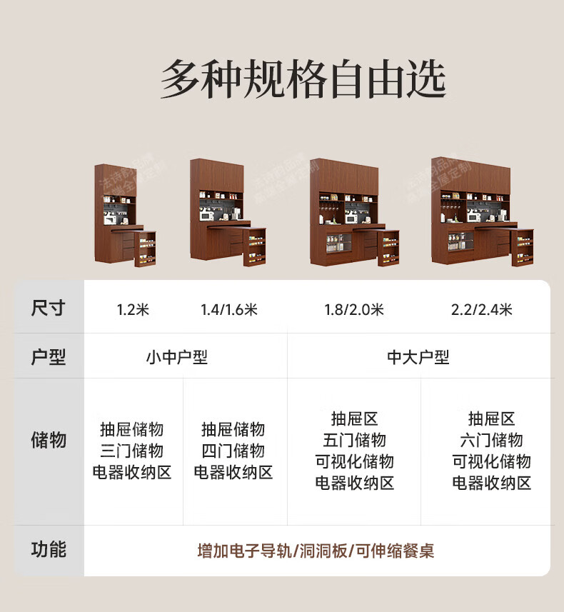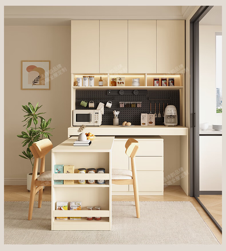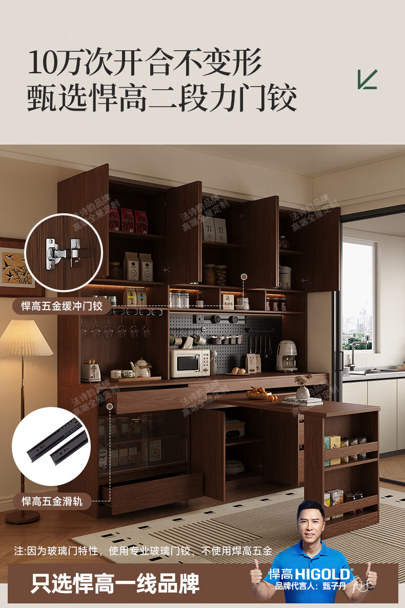 French poetry custom oak solid wood sideboard living room folding retractable dining table integrated deep walnut wall-to-top storage cabinet 1.2*2.0 (three doors) + 1.0 meter dining table. By default, a perforated board and a double-hole track socket are given.