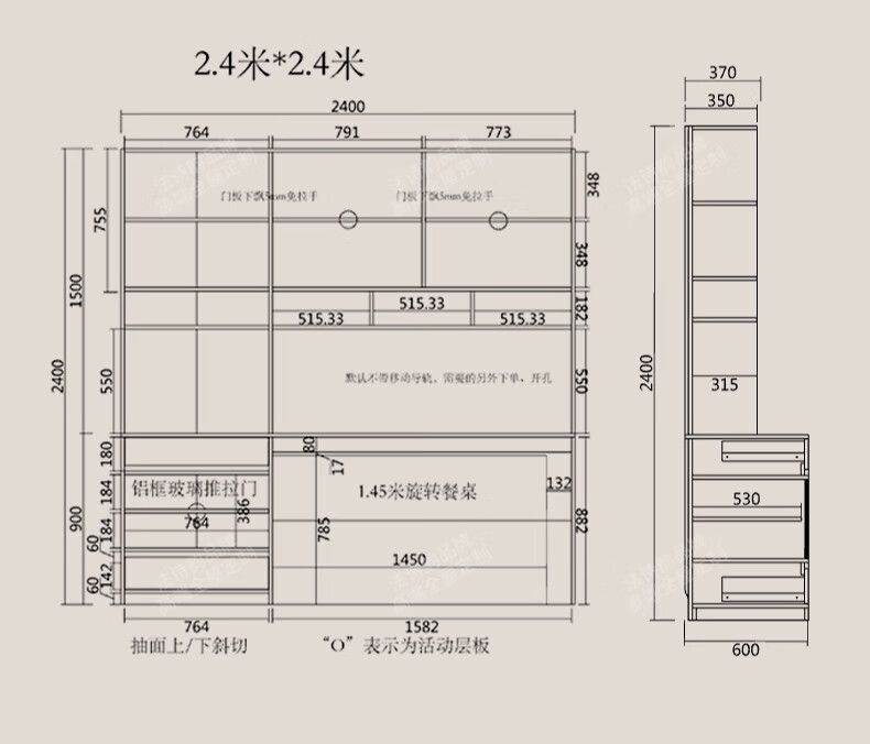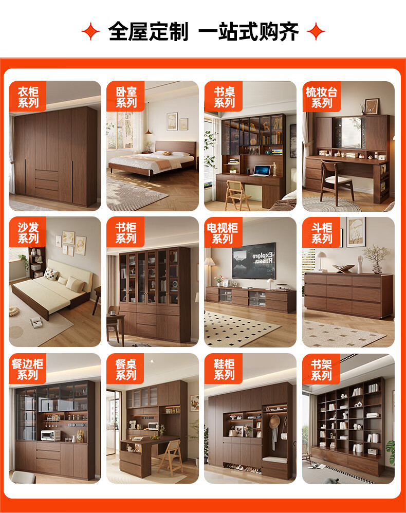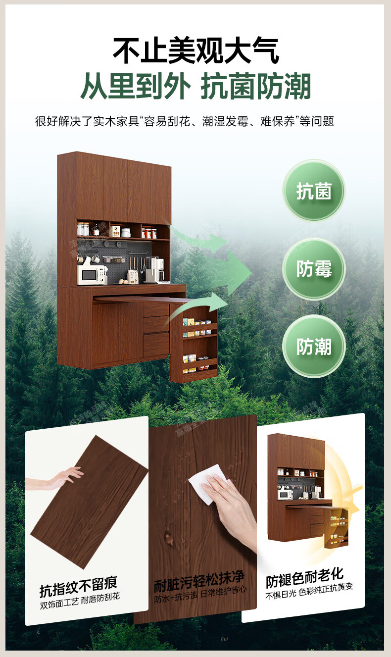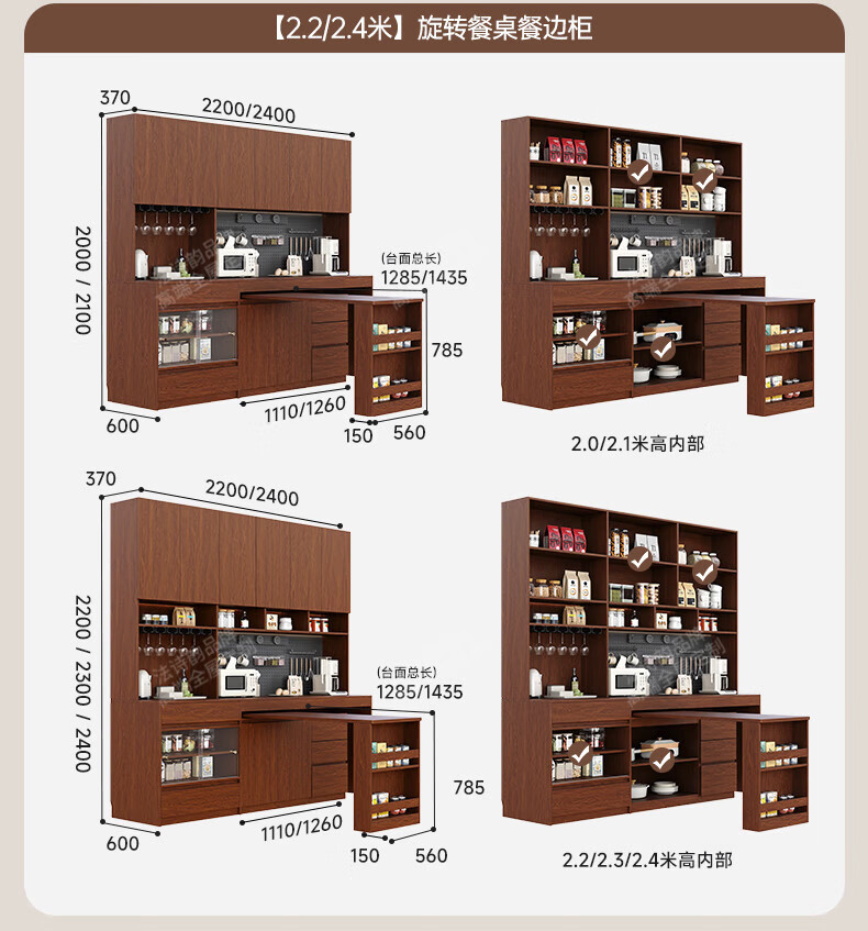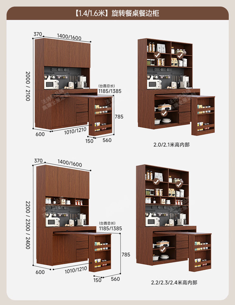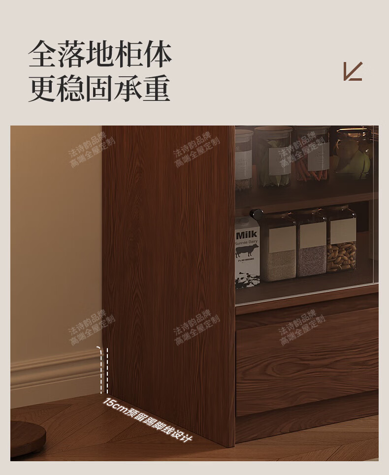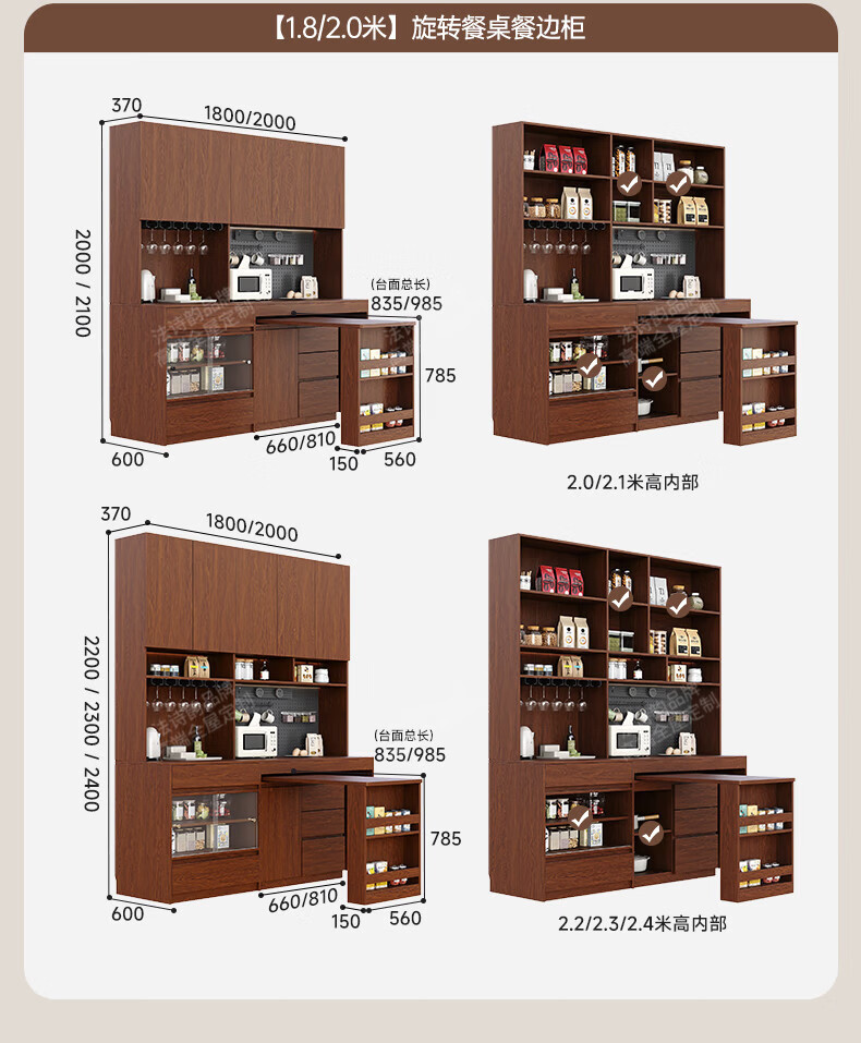 French poetry custom oak solid wood sideboard living room folding retractable dining table integrated deep walnut wall-to-top storage cabinet 1.2*2.0 (three doors) + 1.0 meter dining table. By default, a perforated board and a double-hole track socket are given.