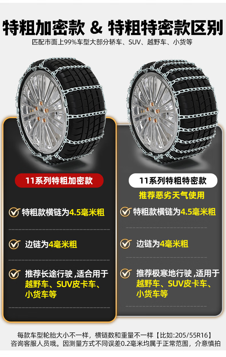 Bohu anti-skid chain extra thick car off-road vehicle SUV pickup truck sedan van universal non-damaging snow tire chain extra thick encryption shopkeeper recommended 95% road conditions 1138 two pieces measured thousands of kilometers in the snow alloy steel