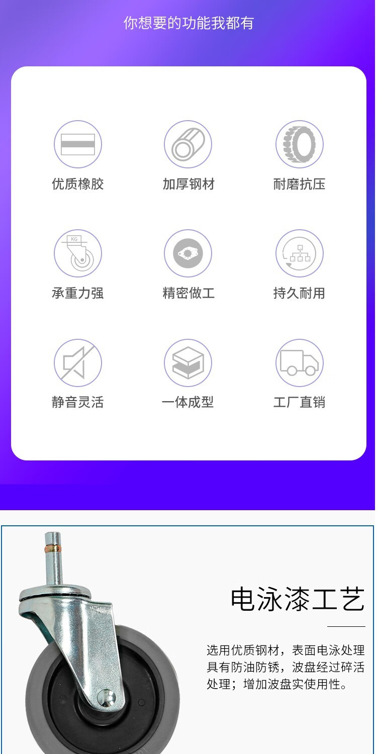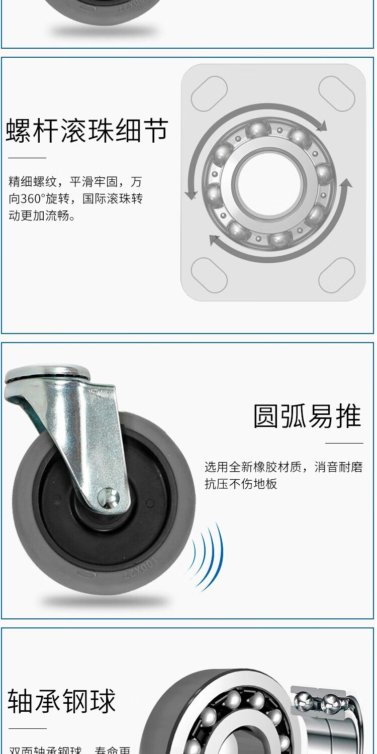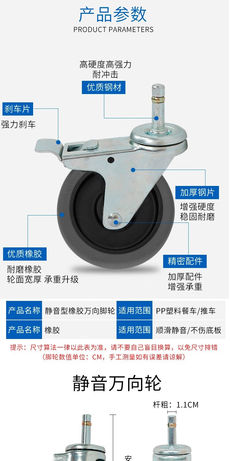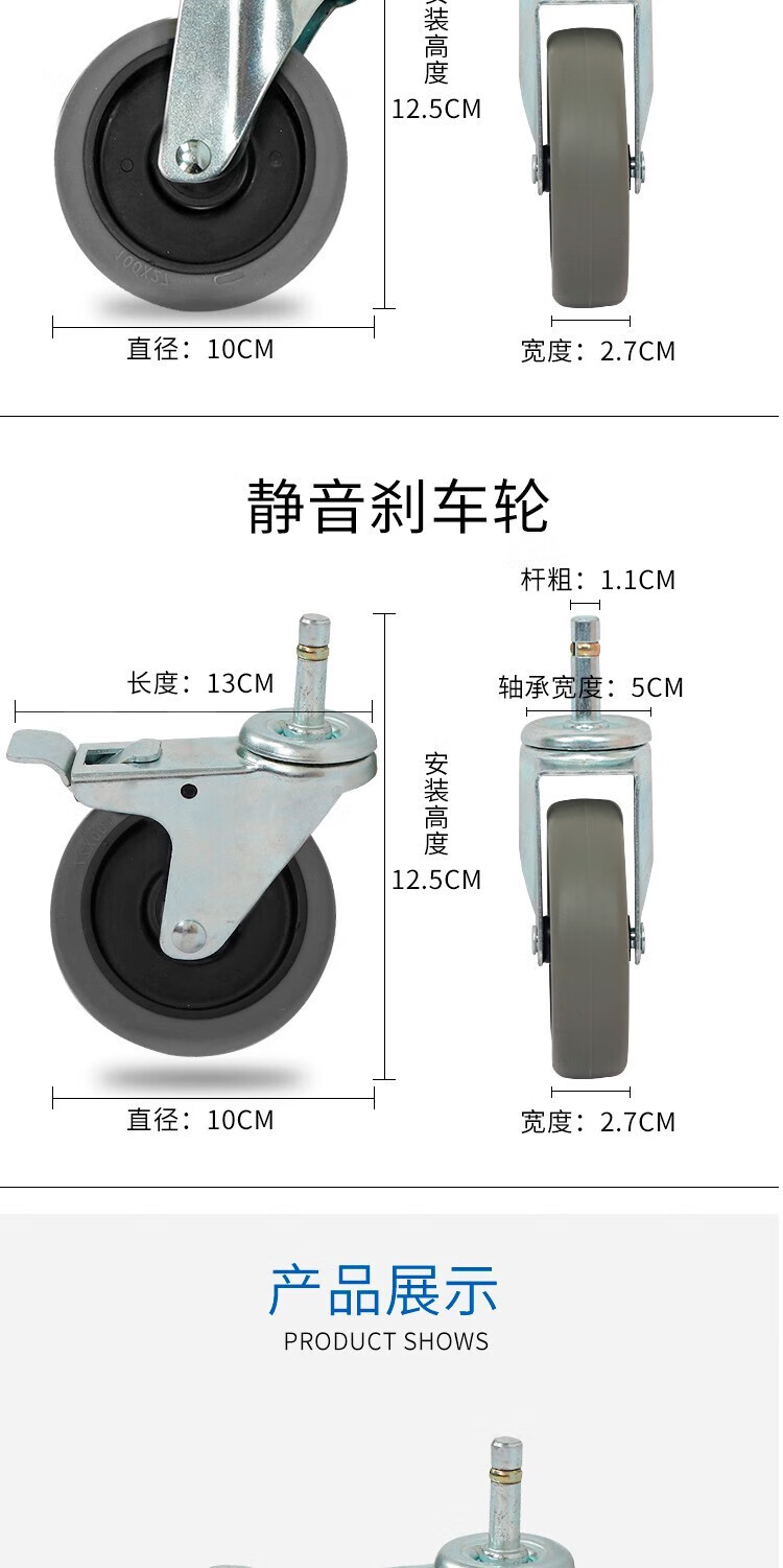 He Jiagong 4-inch universal hotel dining wheel rubber wheel cart linen cart bowl collecting wheel universal wheel static with stainless steel dining wheel wheel