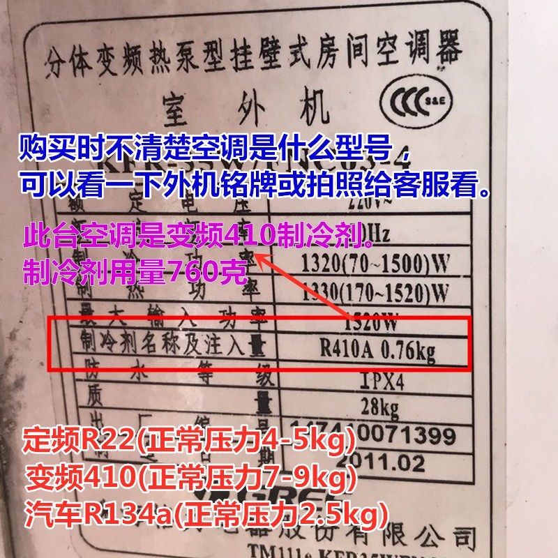 After the trip, R22 refrigerant household air conditioner fluoride tool set air conditioner plus refrigerant liquid R410 plus Freon refrigerant table R22 fixed frequency refrigerant (three brands) randomly distributed
