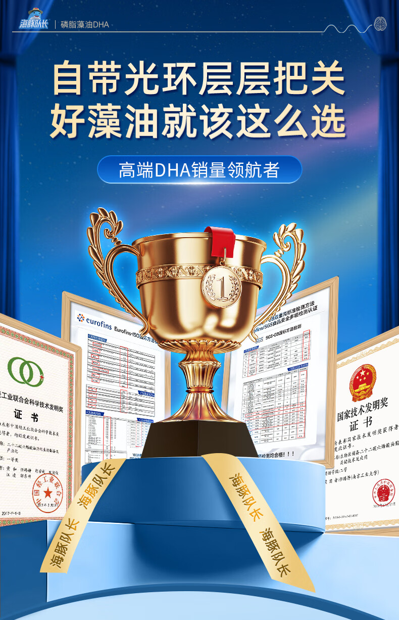 Captain Dolphin DHA for pregnant women, babies and children DHA 150mg algae oil gel candy nutrition non-cod liver oil phospholipid dha 30 capsules * 2 bottles free thermos cup + sample pack