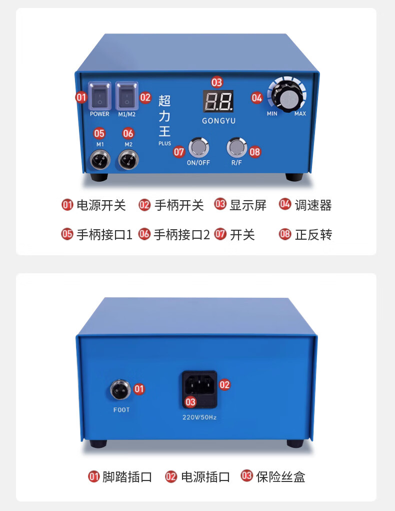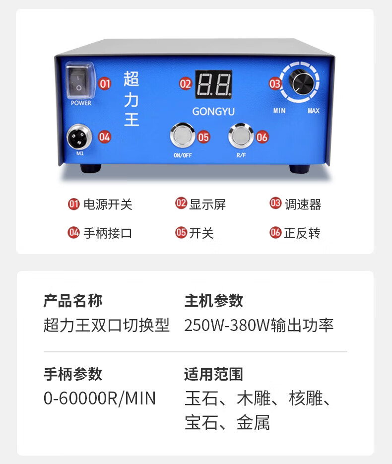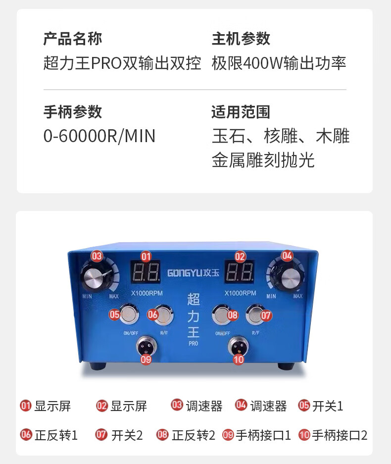 Jade Chaoli King Tooth Machine Engraving Machine Jade Gong Machine Wood Carving Core Carving Jade Window Electric Carbon Brushless Grinding Machine Dual Speed Control Host + 2 103 Dual Card Handles