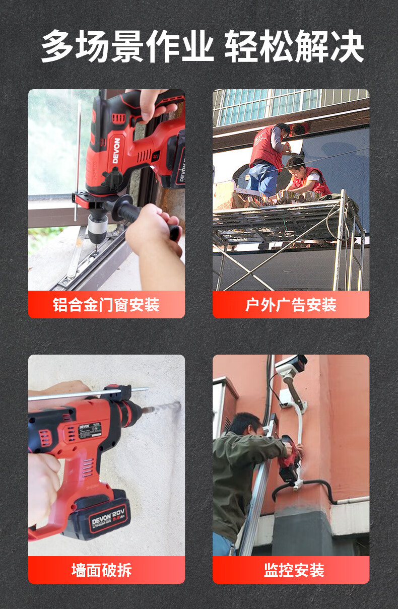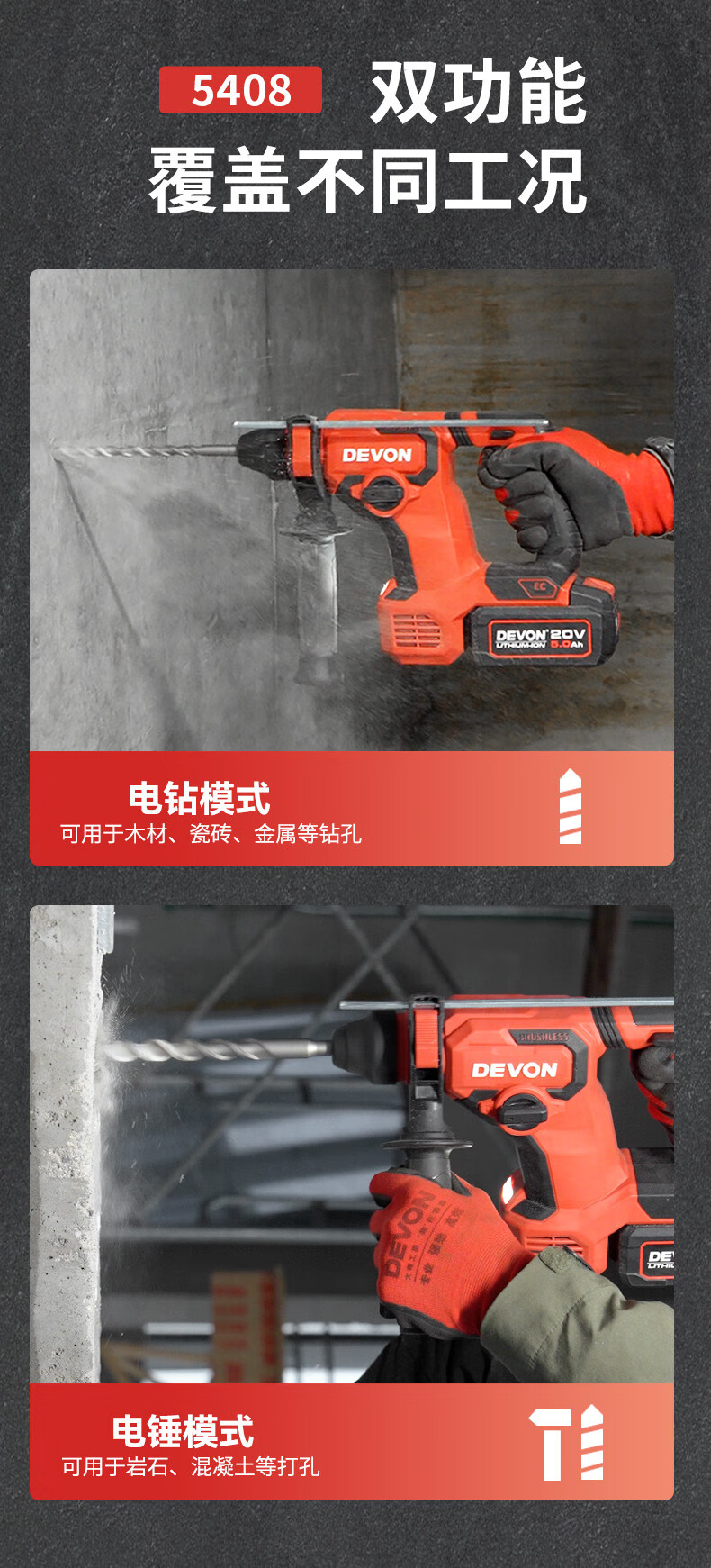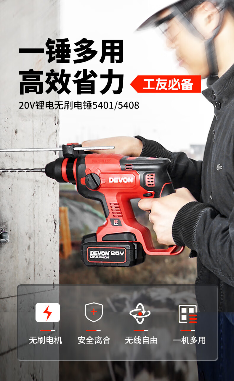 Devon lithium electric hammer multifunctional lightweight brushless impact drill variable speed hammer drill tool 5408 5408_4.0Ah one-power flash charge