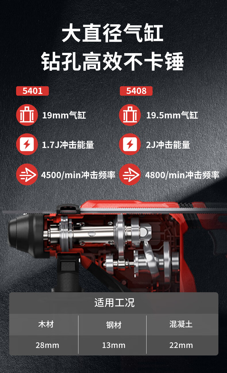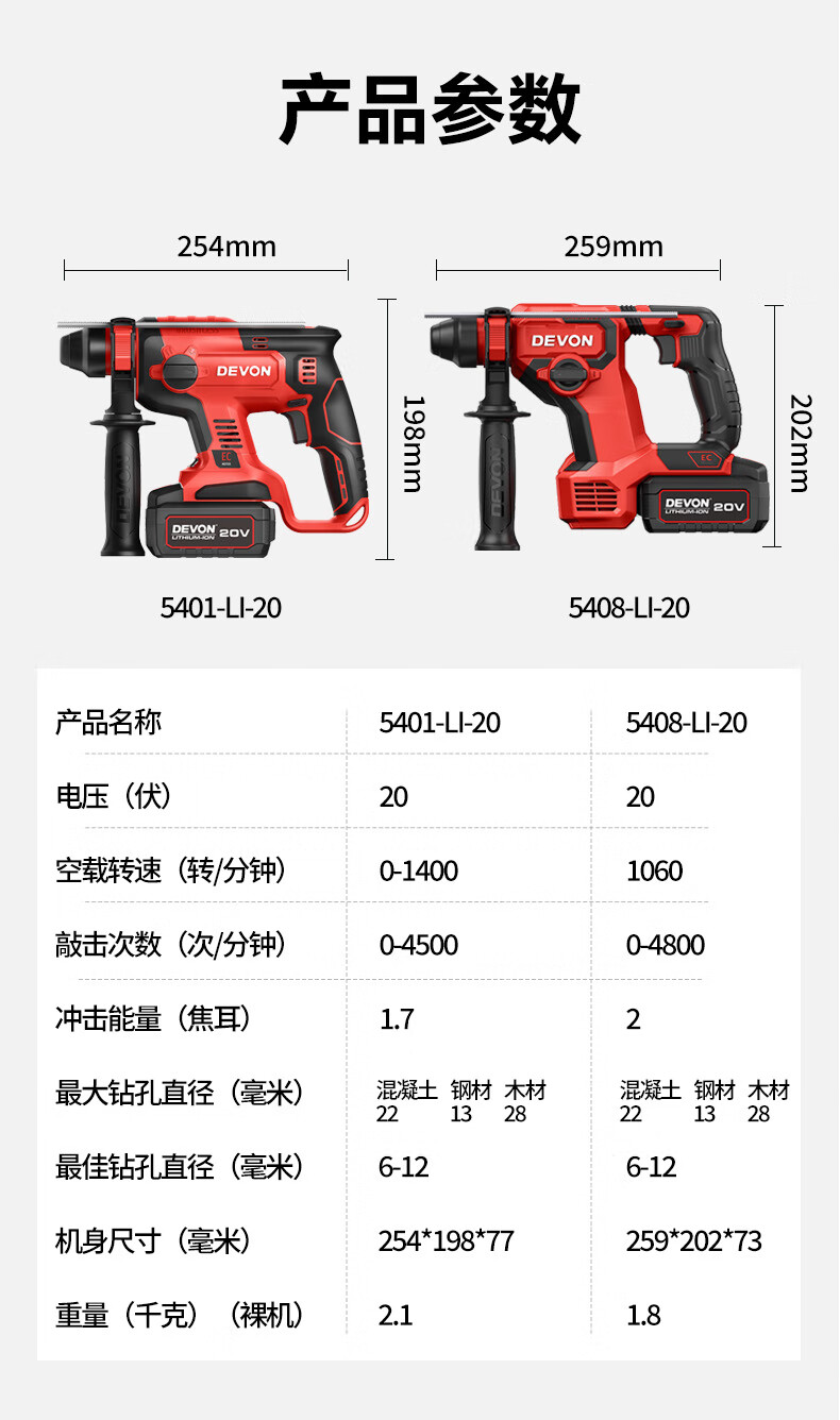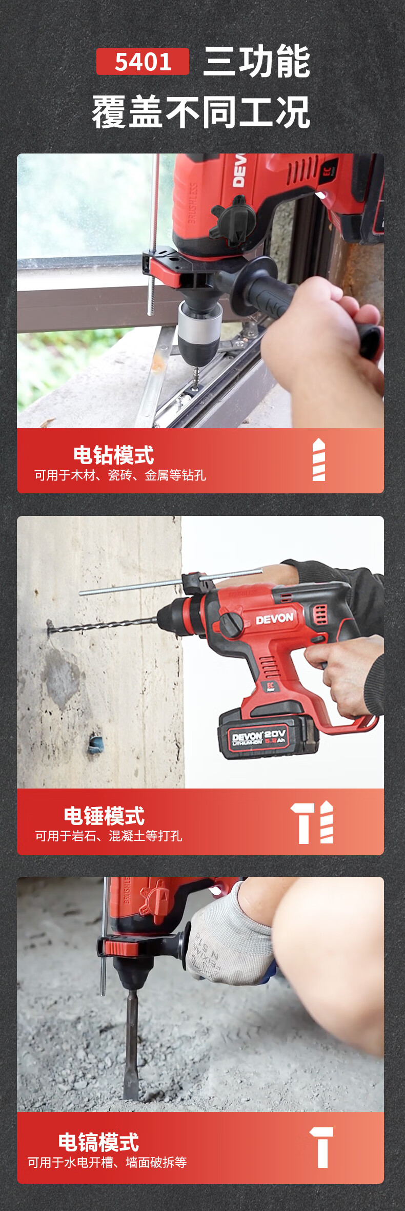 Devon lithium electric hammer multifunctional lightweight brushless impact drill variable speed hammer drill tool 5408 5408_4.0Ah one-power flash charge