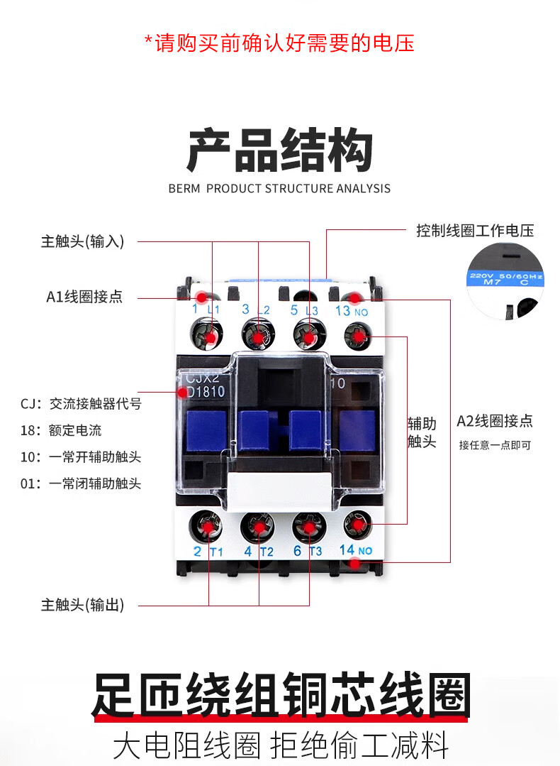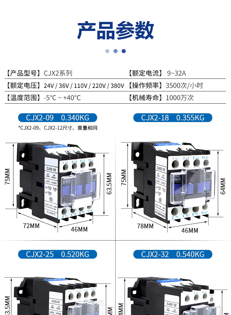 Bellmei AC contactor 220V relay CJX2-2501 contactor 380V three-phase 40A single-phase CJX2-2501 coil 24VAC