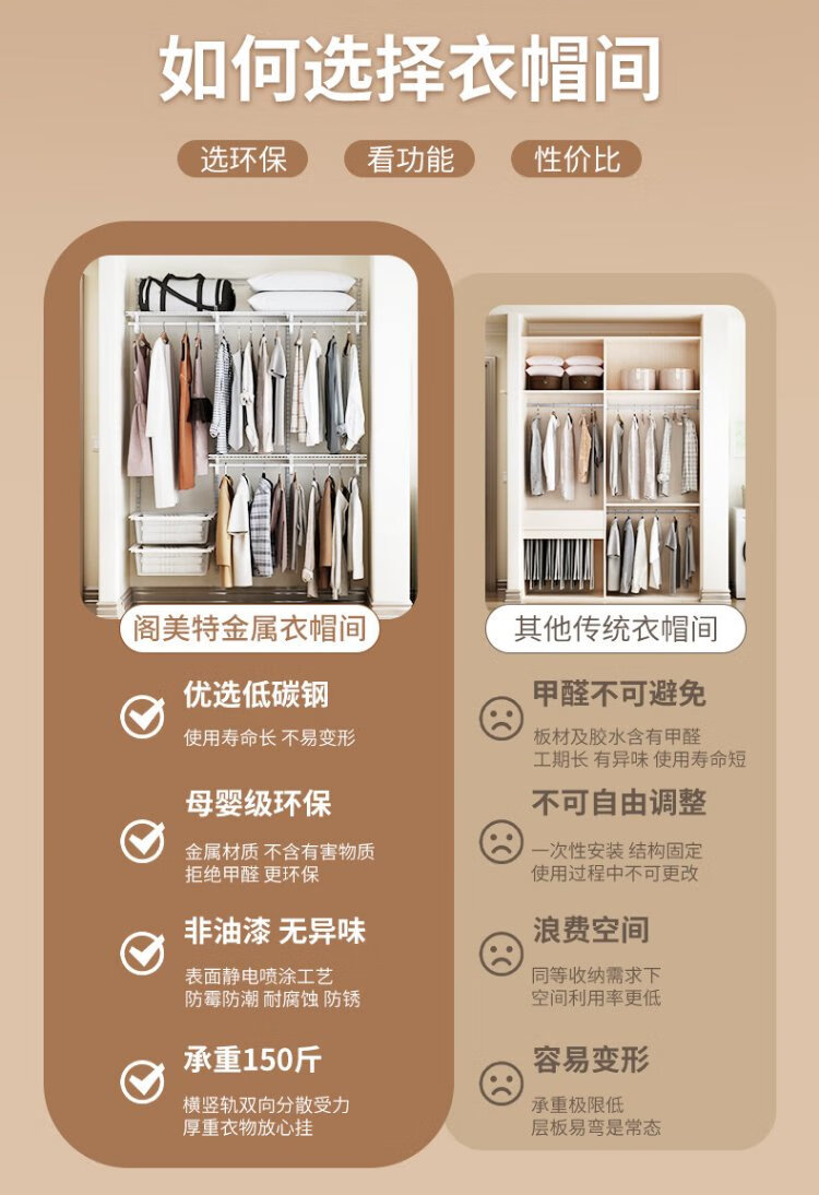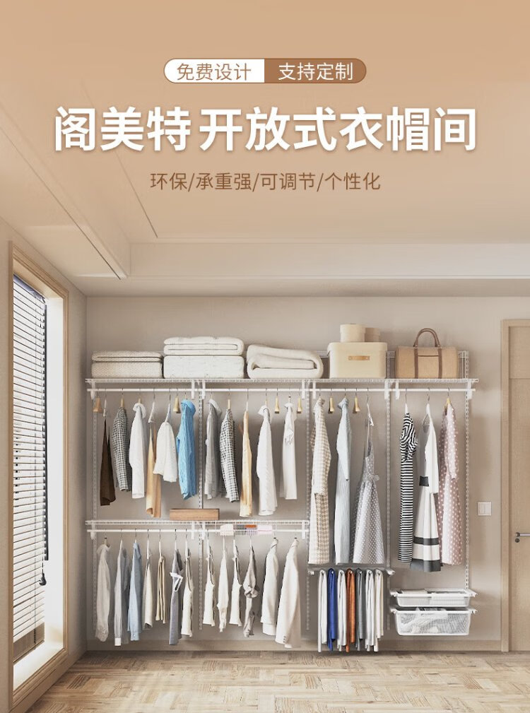 Gemet metal wardrobe wall-mounted steel frame structure open cloakroom small apartment large capacity adjustable whole house customization pull basket style 1.4 meters metal wardrobe over 999 yuan including installation