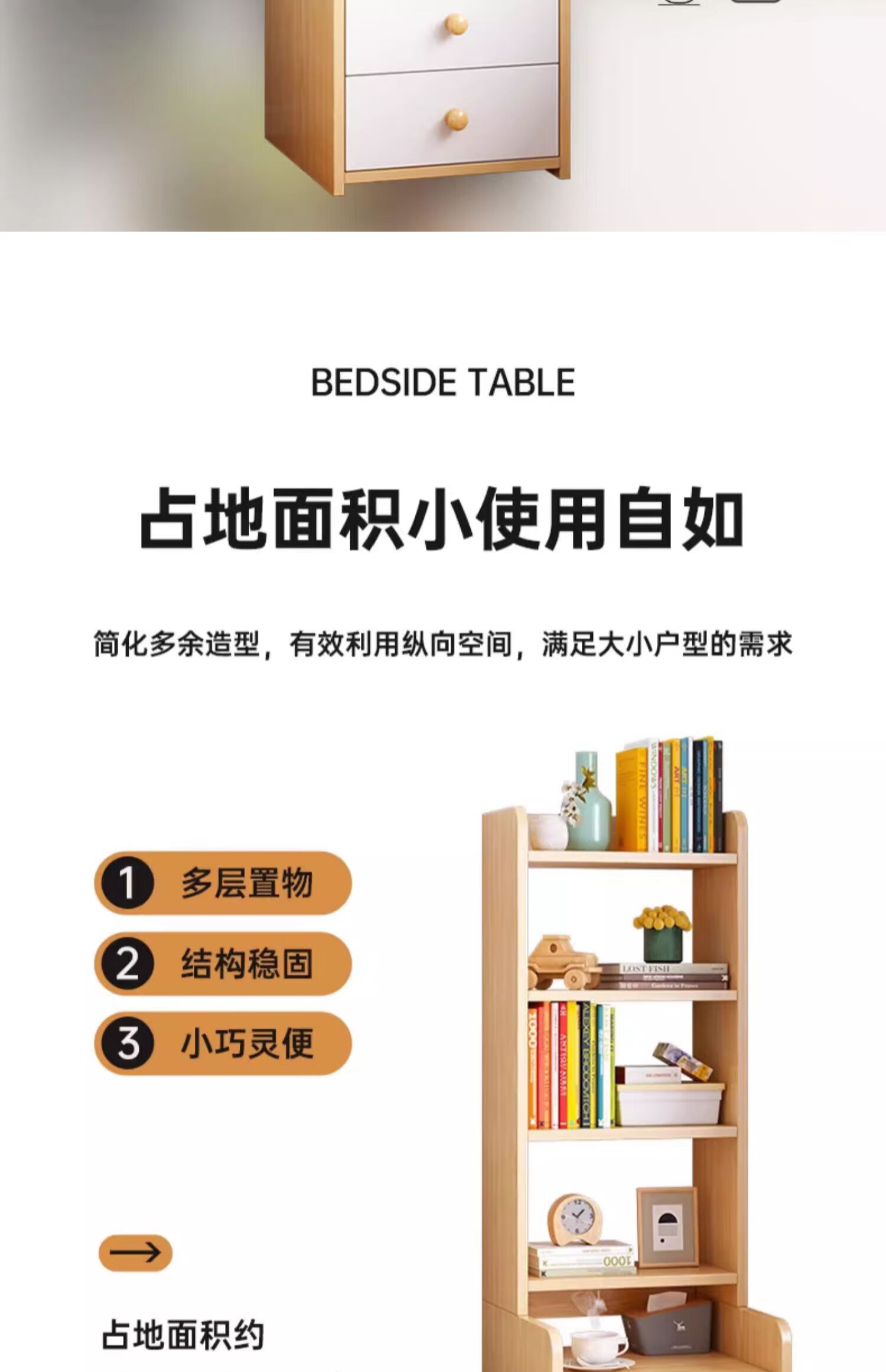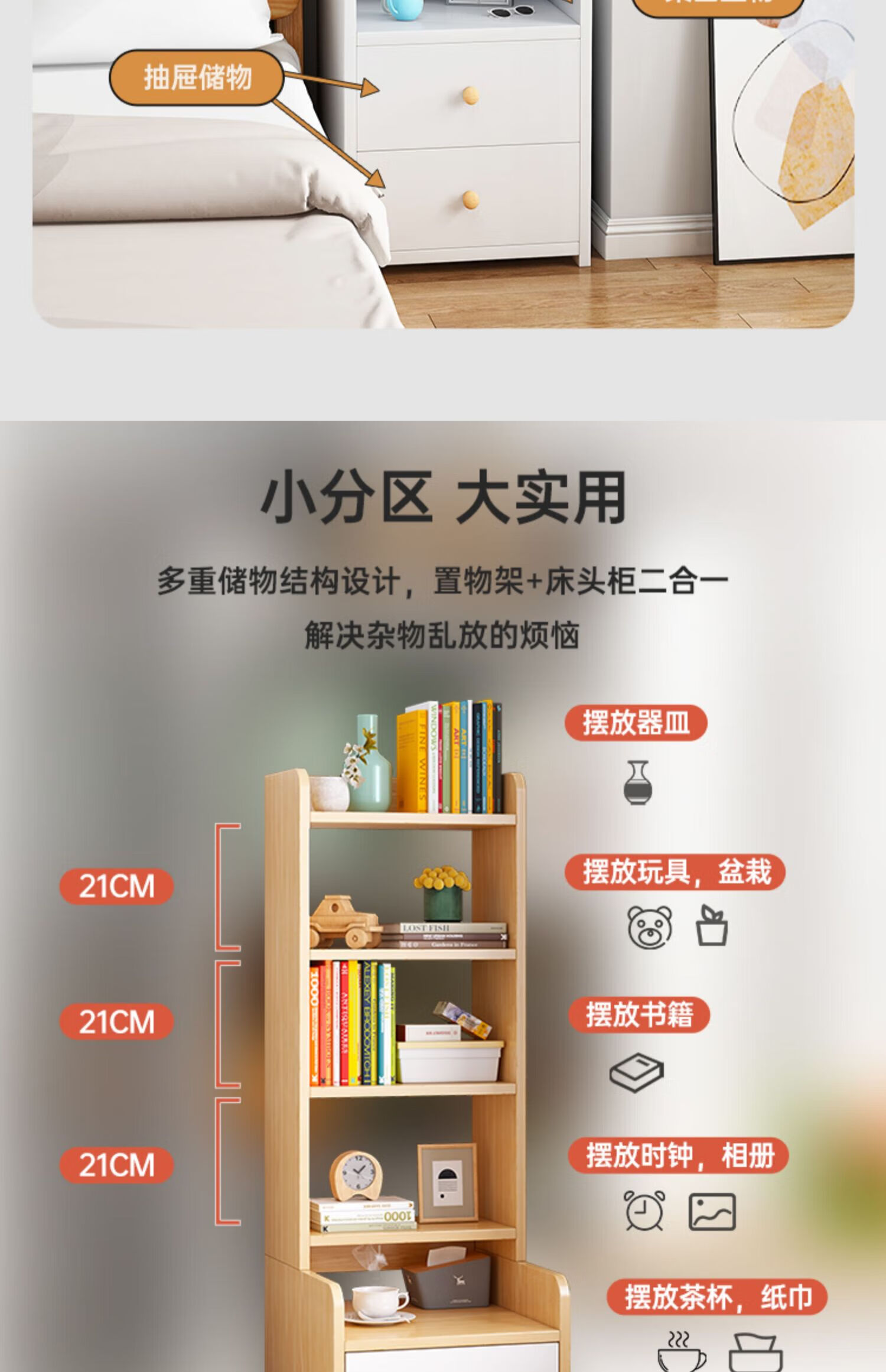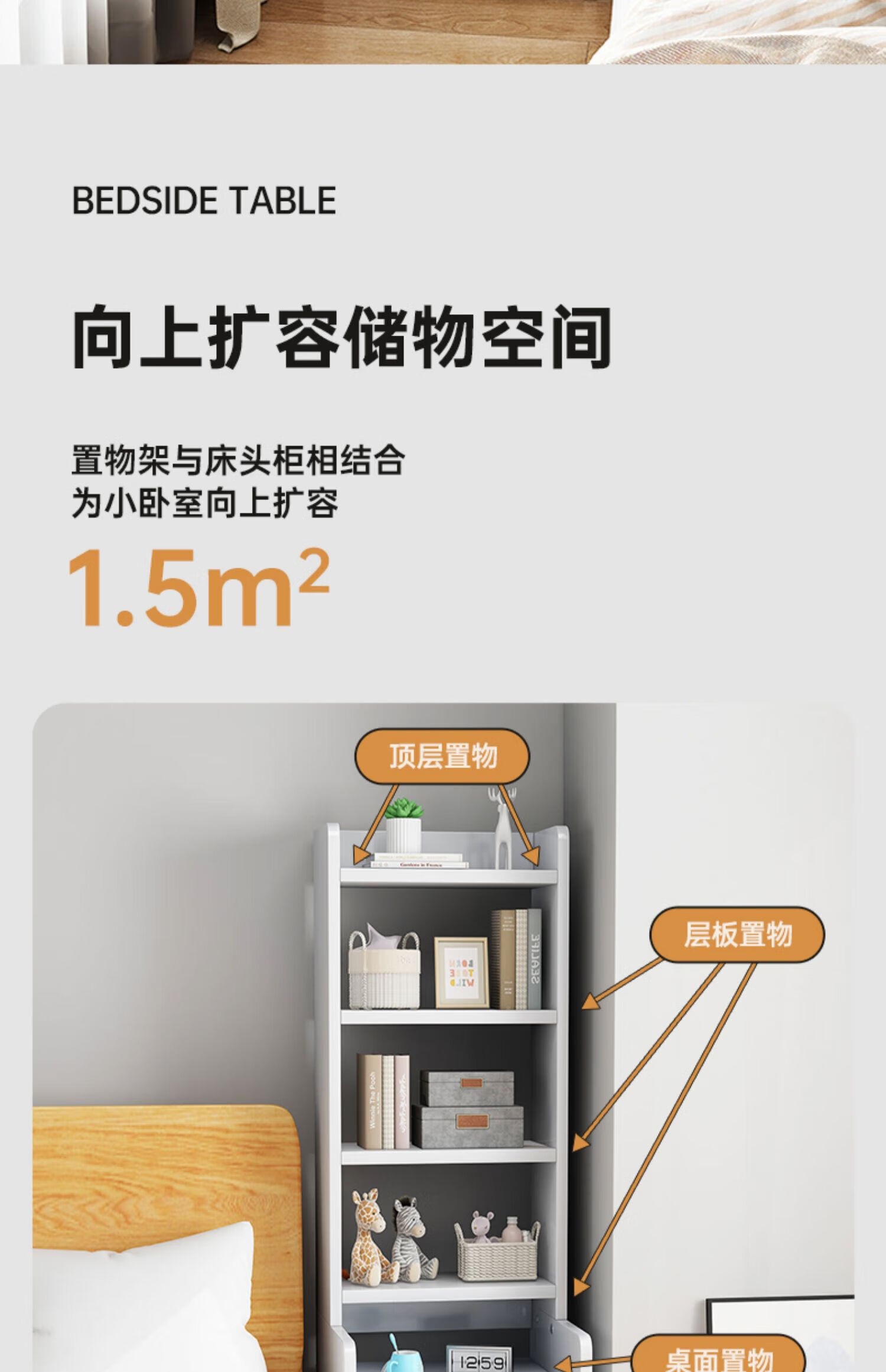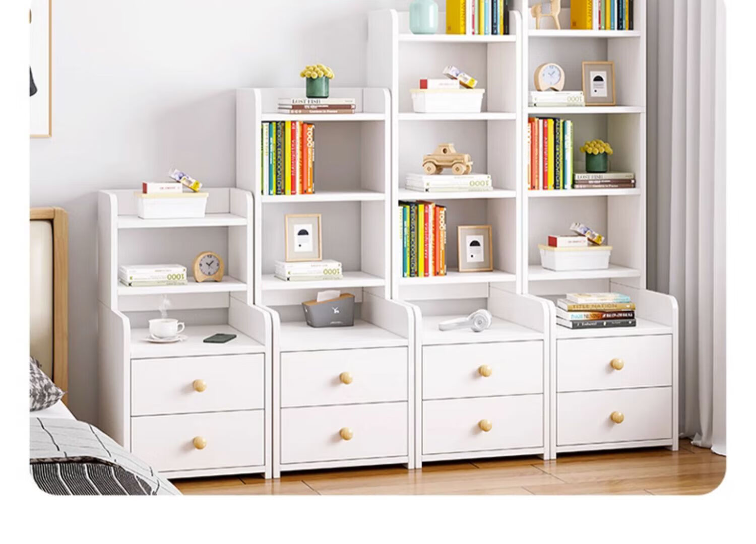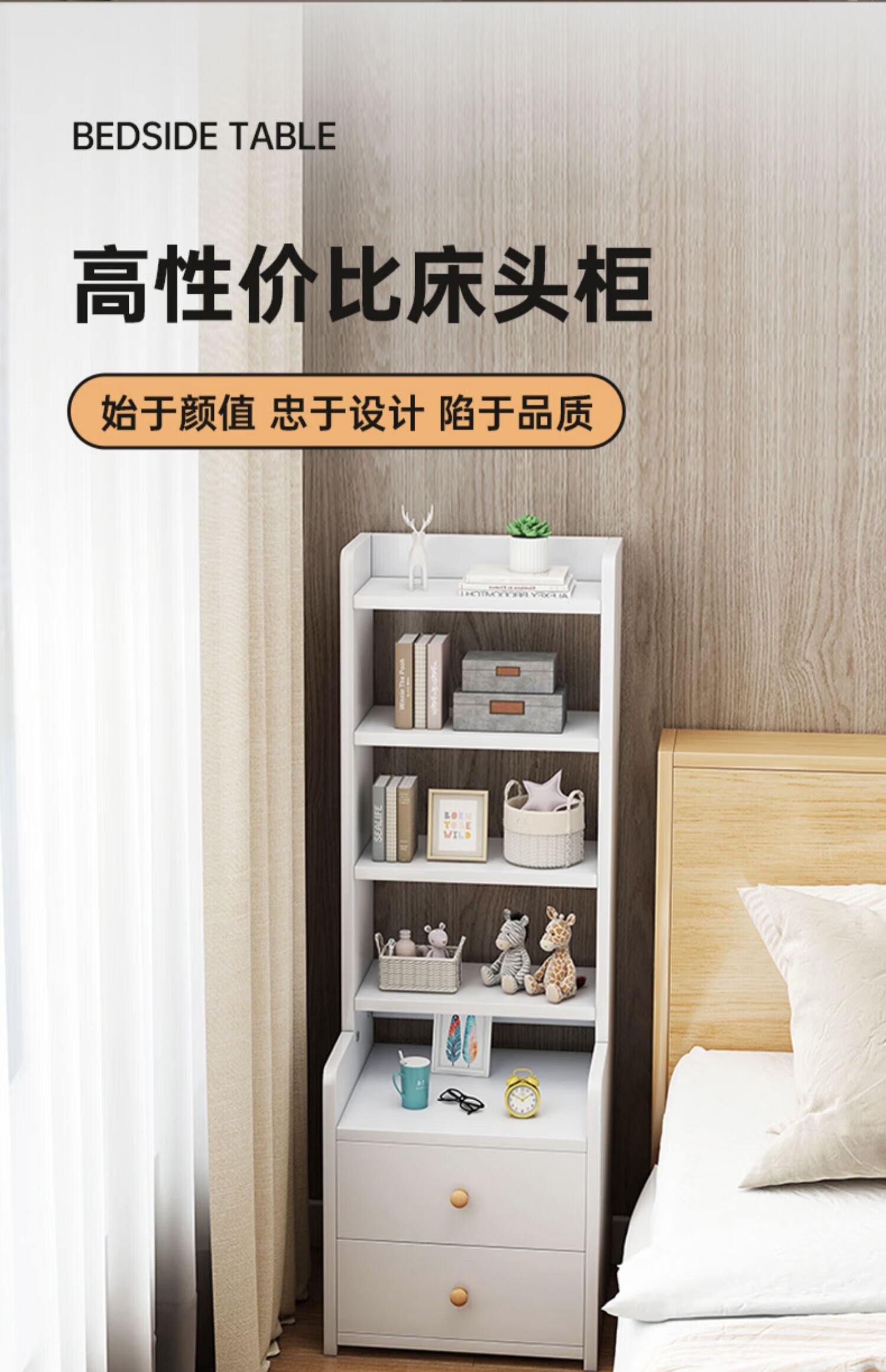 Integrated bedside table and storage cabinet 2025 new heightened bookshelf storage cabinet replaces creative home bedroom storage rack second floor storage rack new light walnut color