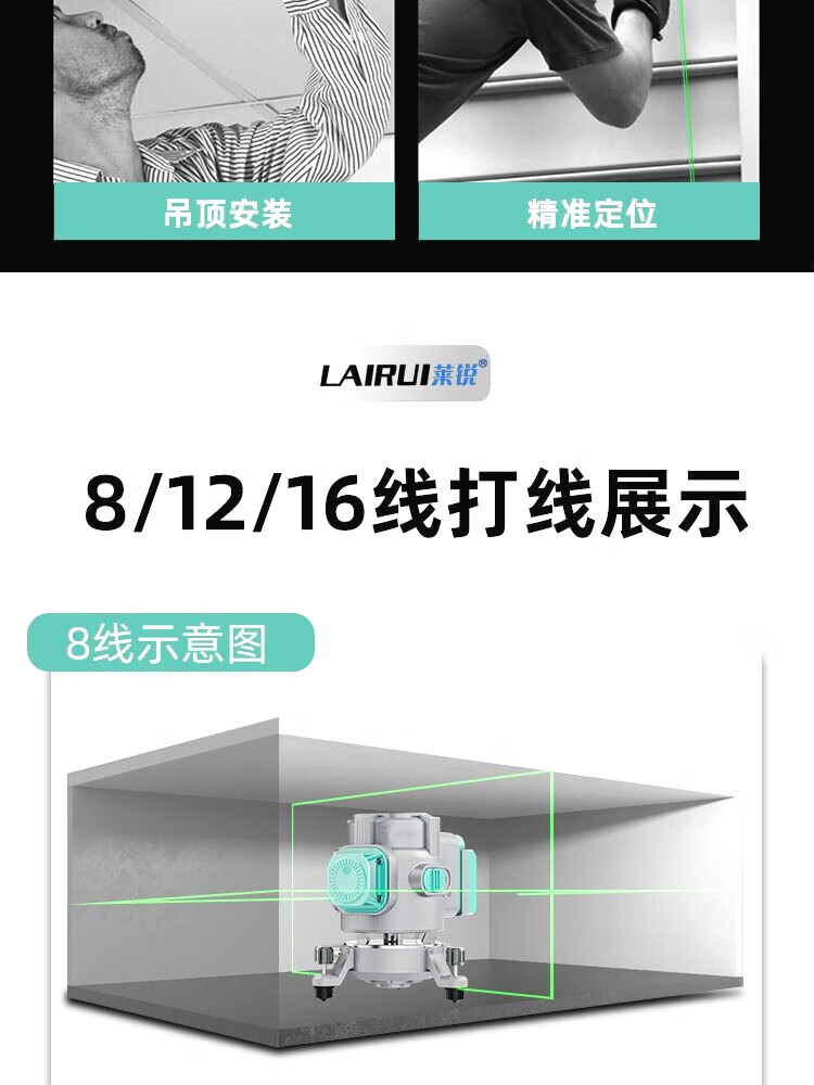 Milanlai Ruiguang level meter outdoor green light 12-line laser high Lairui 12-line fourth generation lifting and rotating Q