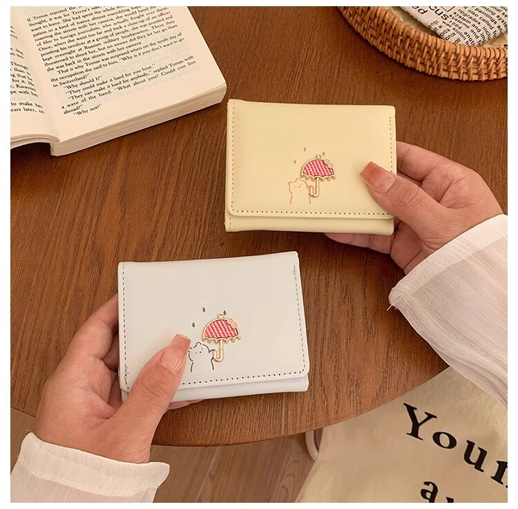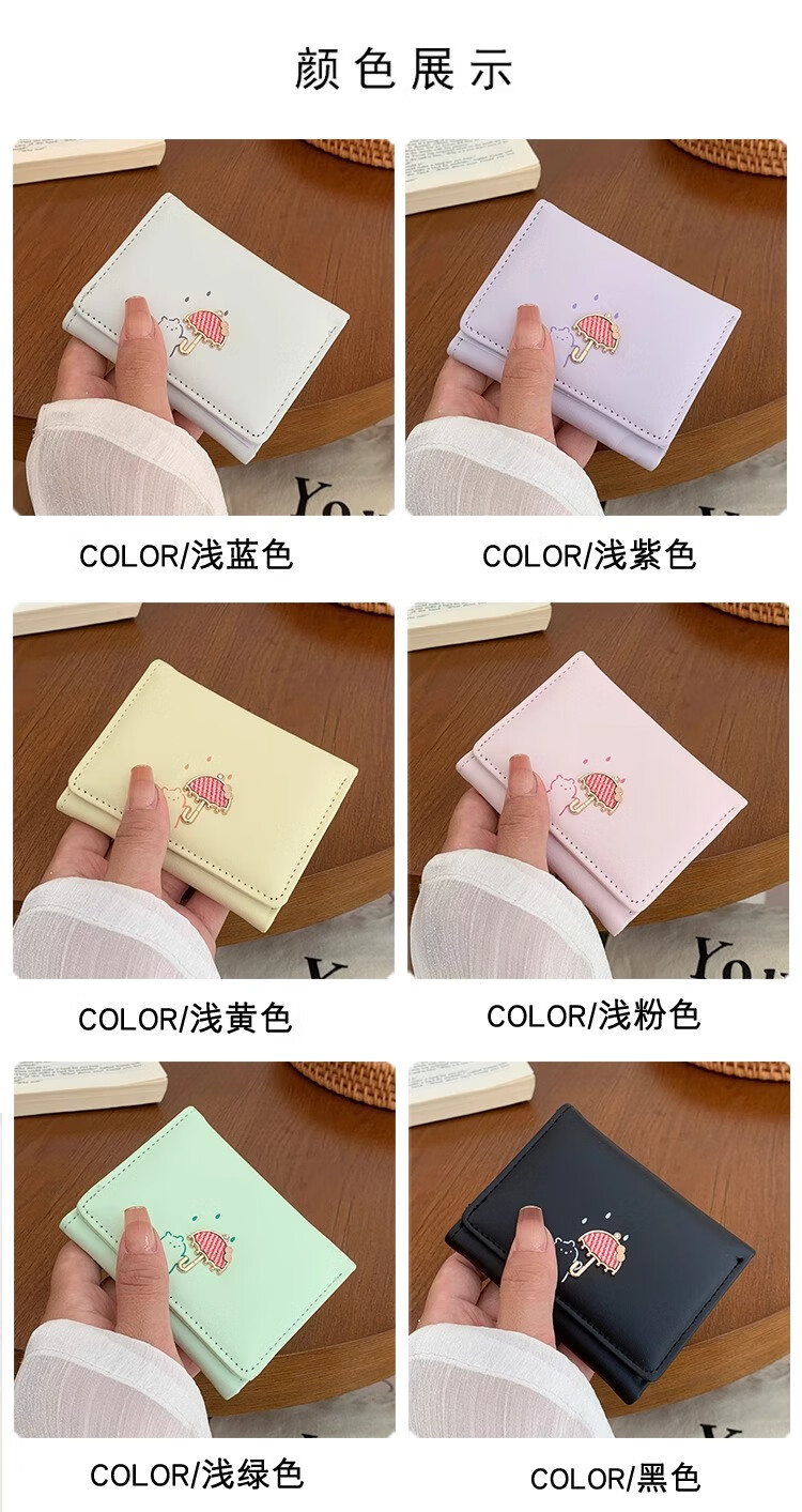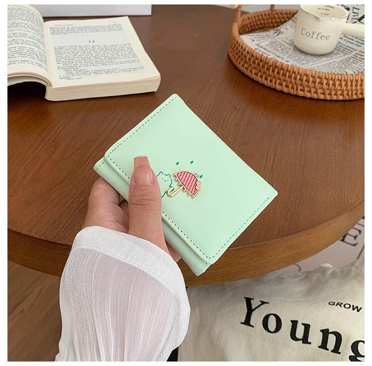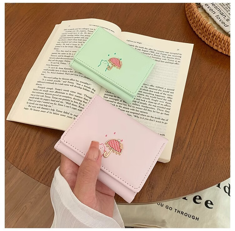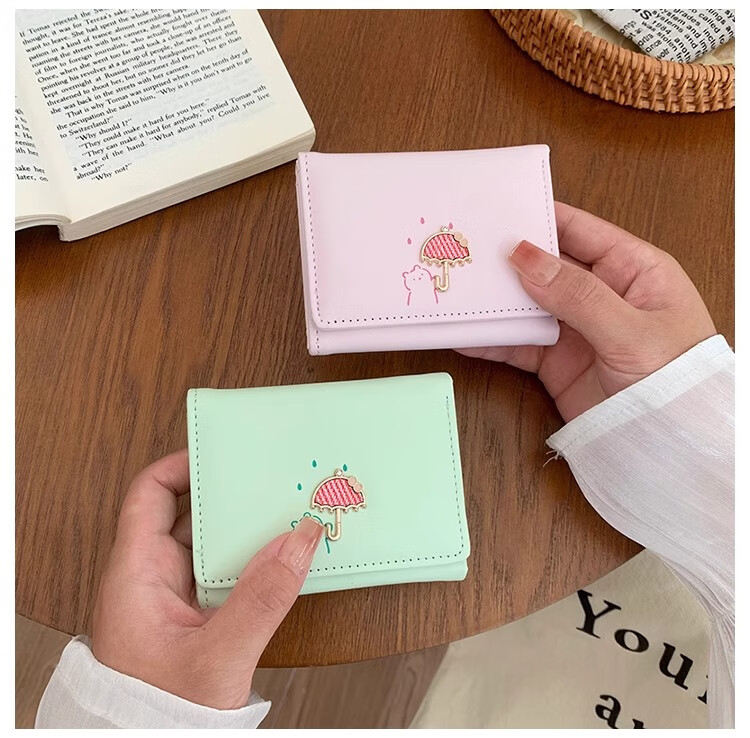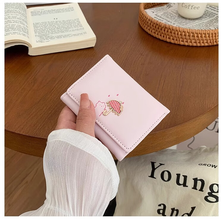 Chajin 2025 New Tri-fold Wallet Women's Short Korean Style Fresh Student Wallet Cute Cartoon Card Holder Coin Purse Tri-fold Wallet - Pink
