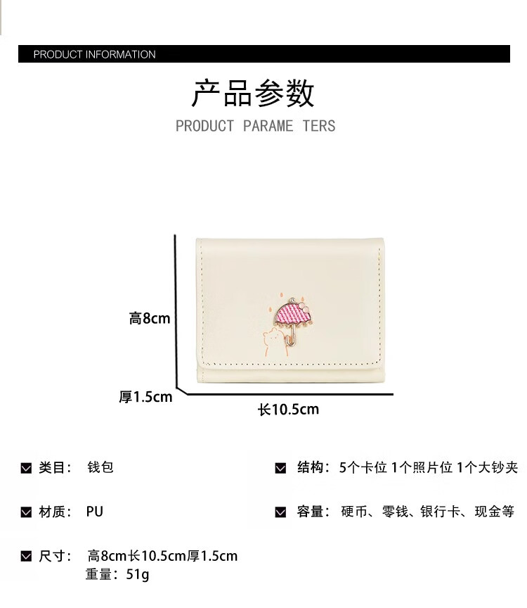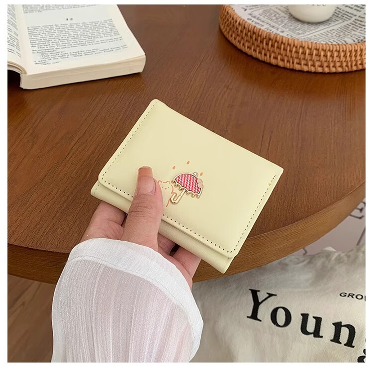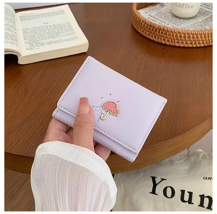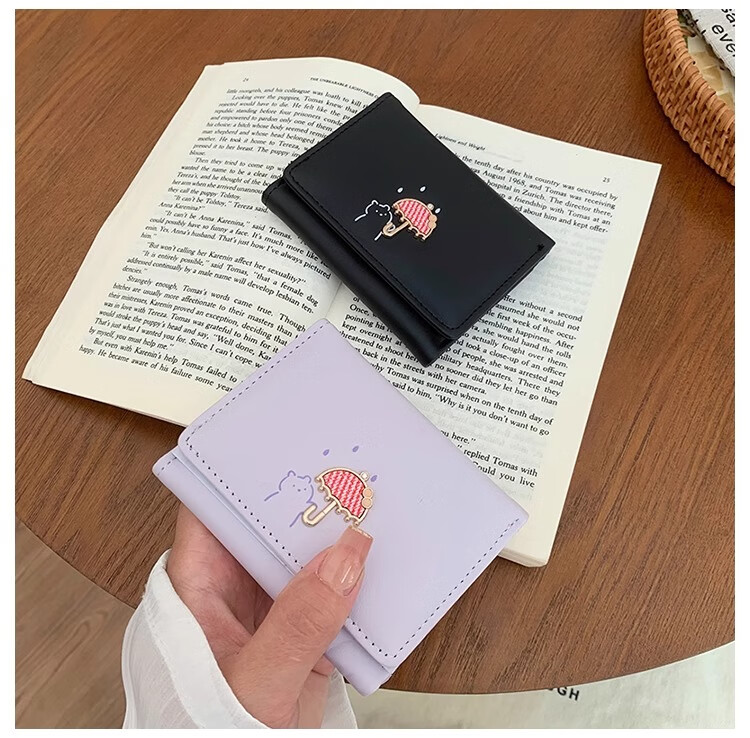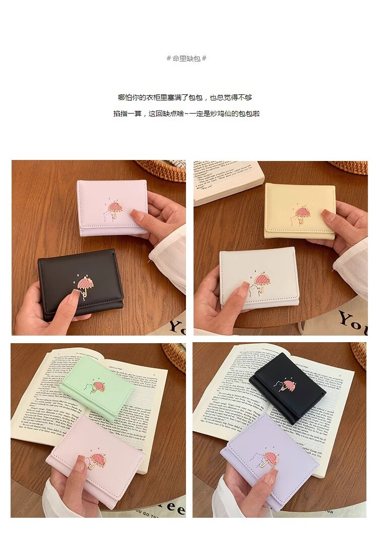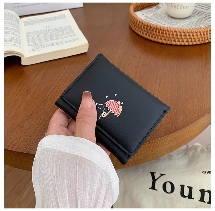 Chajin 2025 New Tri-fold Wallet Women's Short Korean Style Fresh Student Wallet Cute Cartoon Card Holder Coin Purse Tri-fold Wallet - Pink