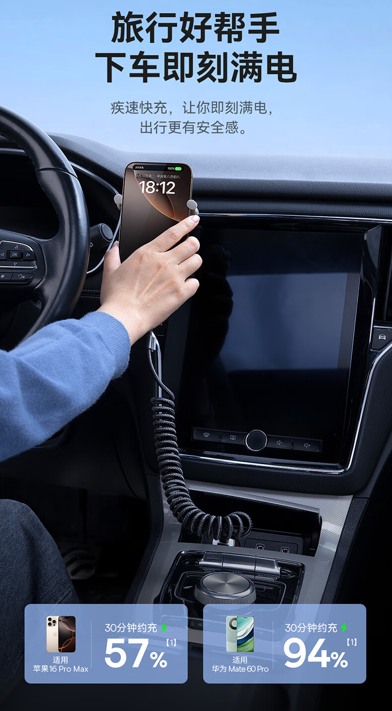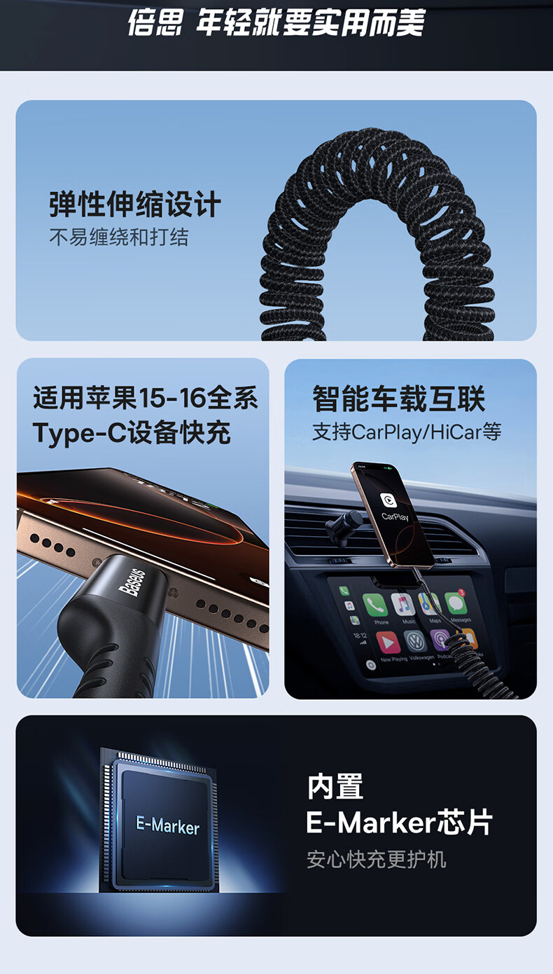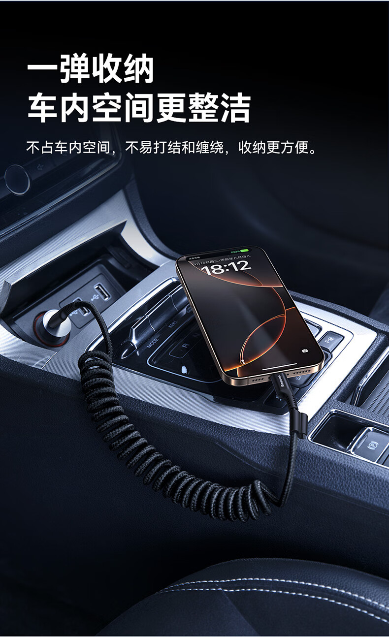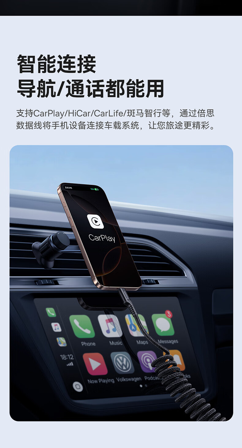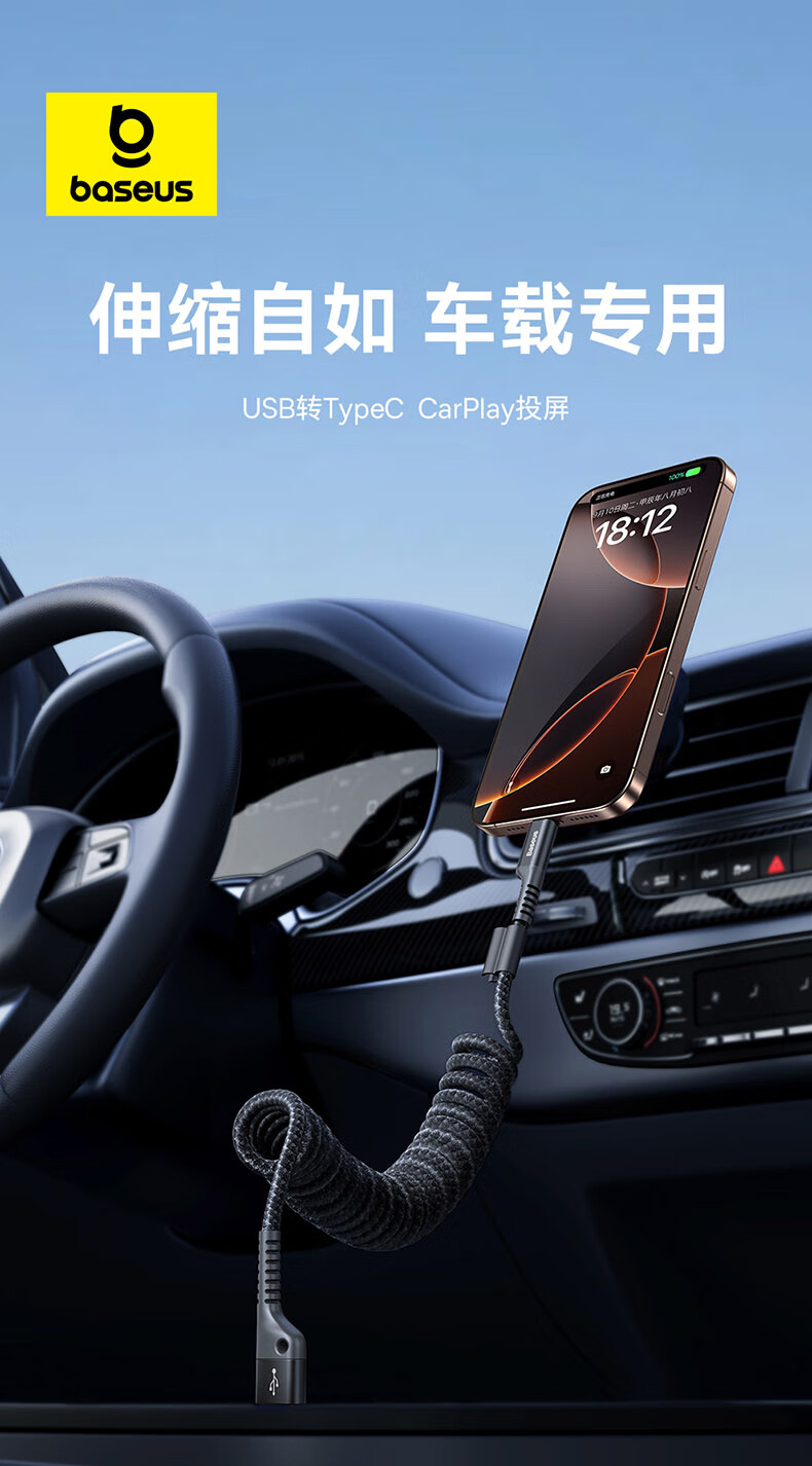 BASEUS new car Carplay retractable data cable suitable for Apple 16 Huawei Xiaomi iPhone 15 promax mobile phone car motorcycle USB to TypeC fast charge Hicar USB-lightning car charger set 30w dual port car
